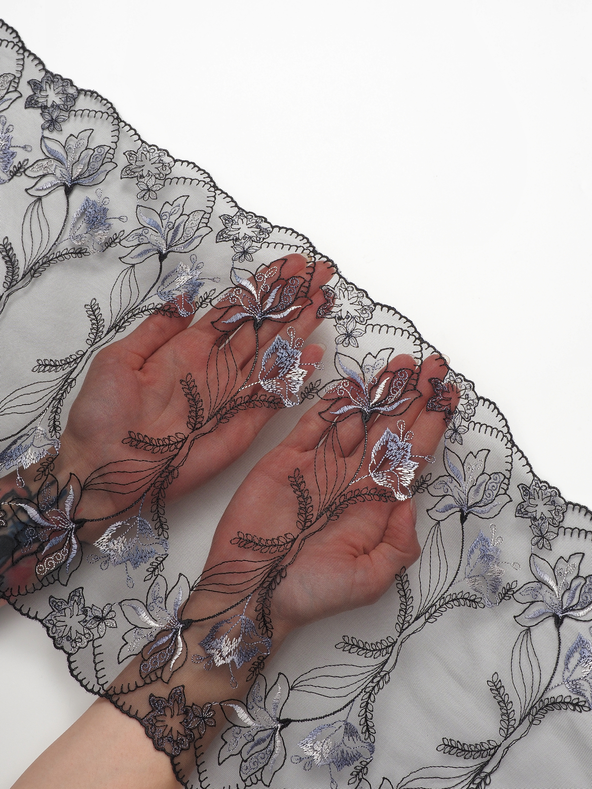 Ваше идеальное решение для создания эксклюзивного белья Двухстороннее кружево с вышивкой на сетке сочетает эстетику и функциональность. Сочетание цвета с вышитым рисунком придаёт материалу особый шарм и универсальность.