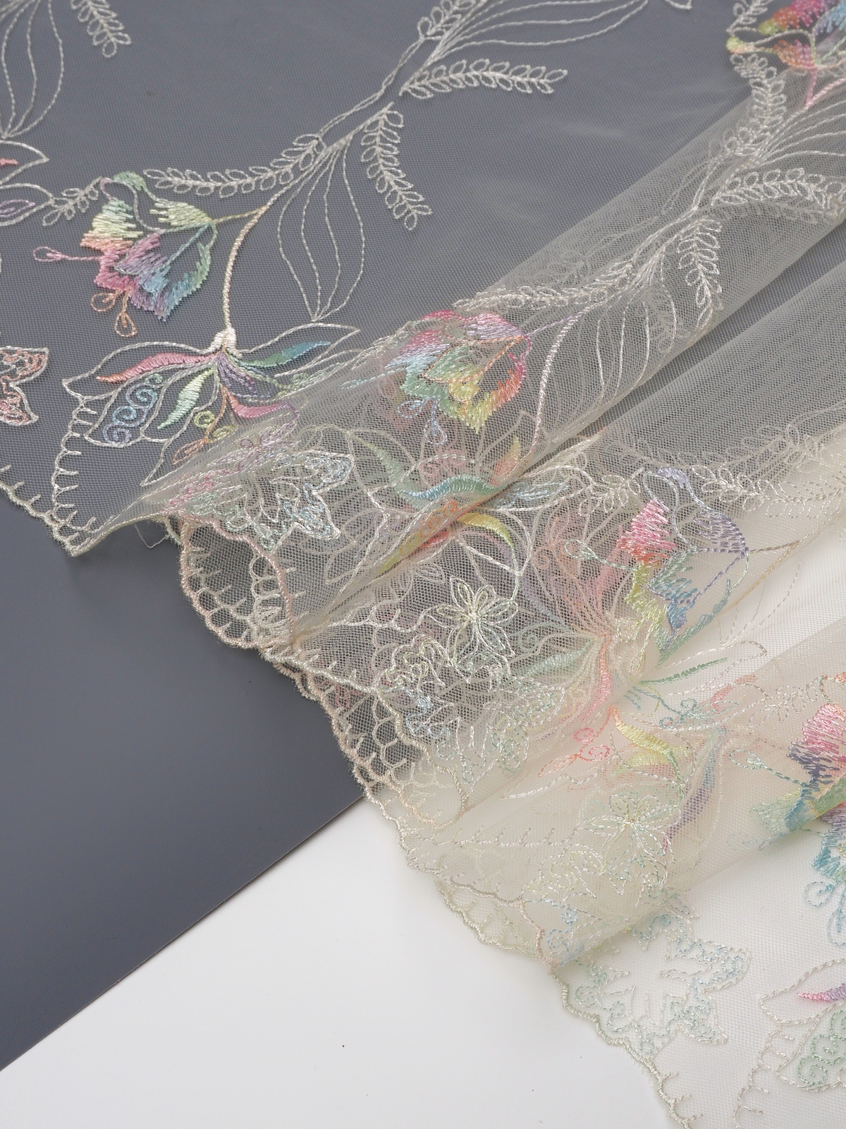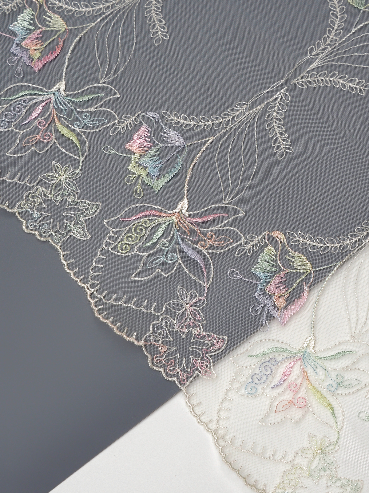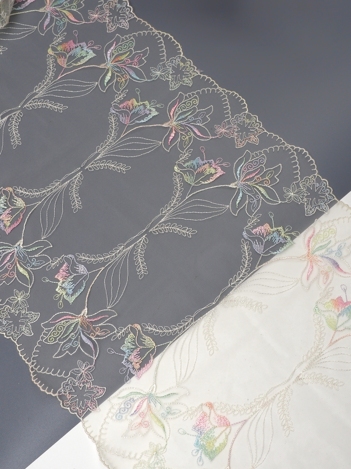 Ваше идеальное решение для создания эксклюзивного белья. Двухстороннее кружево с вышивкой на сетке сочетает эстетику и функциональность. Сочетание цвета с вышитым рисунком придаёт материалу особый шарм и универсальность.