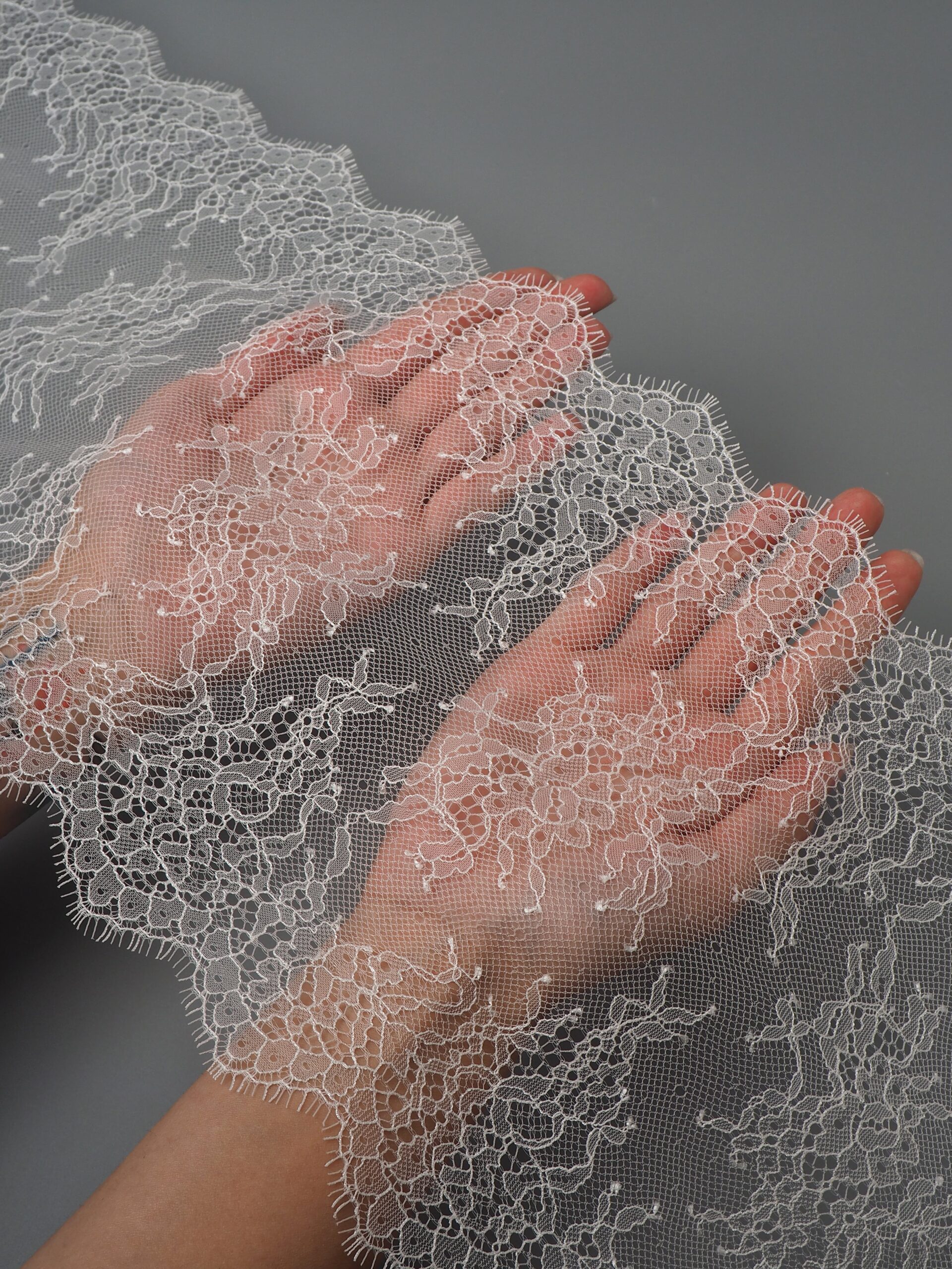Французское кружево шантильи айвори мягкий и тонкий материал. Он хорошо держит форму, почти не тянется, отличается высокой прочностью, весит очень мало и очень приятное на ощупь. Его используют для пошива и отделки вечерних и коктейльных платьев, свадебных нарядов, нижнего белья. Даже небольшие ажурные вставки придают изделию утонченность. Украсьте французским кружевом блузку, лиф платья, любое изделие из денима, и вы убедитесь, насколько элегантно смотрится такой материал. Шантильи уместно не только на одежде, но и домашнем текстиле. Ажурную ткань применяют для украшения скатертей и салфеток, занавесок.
