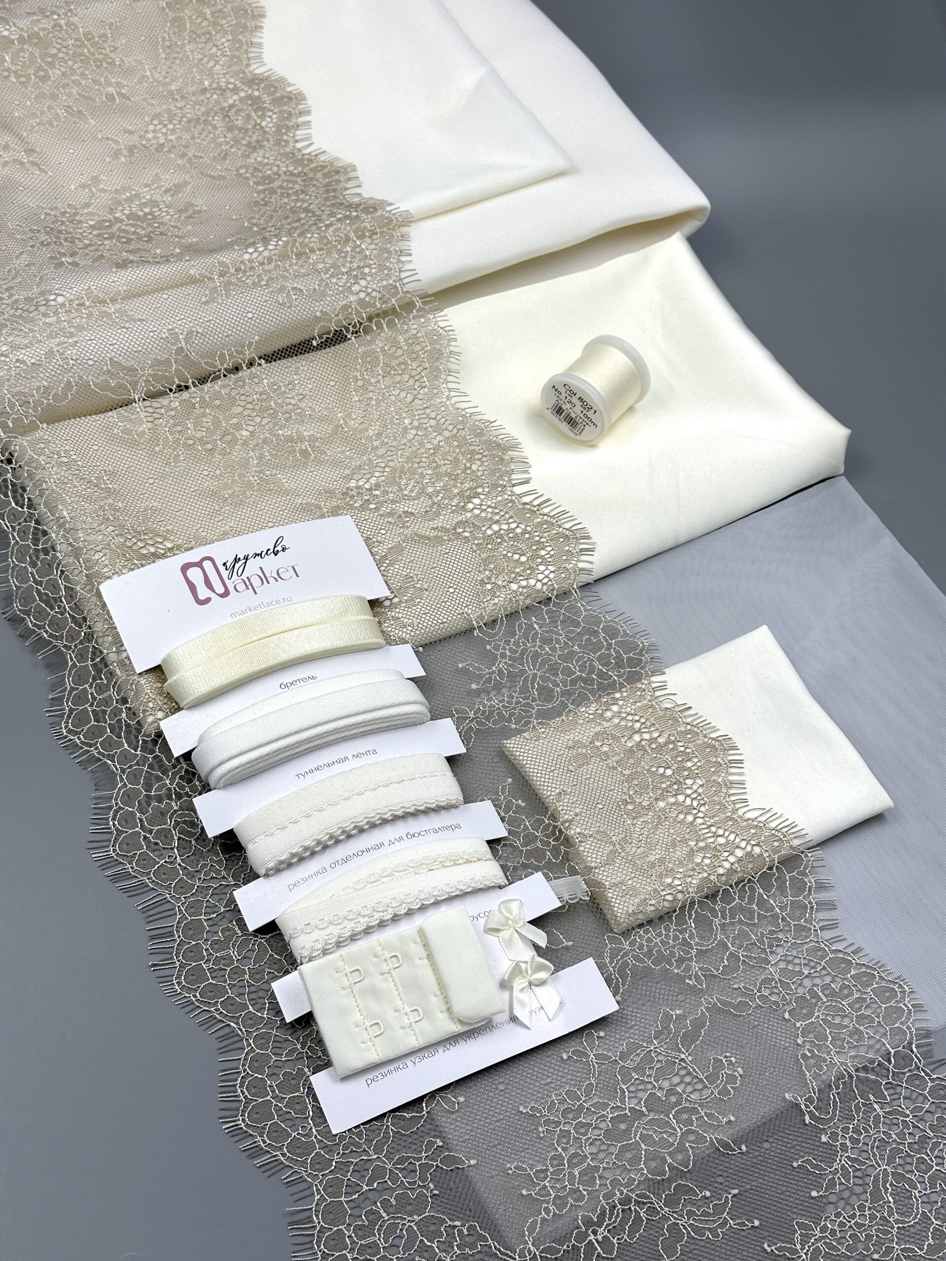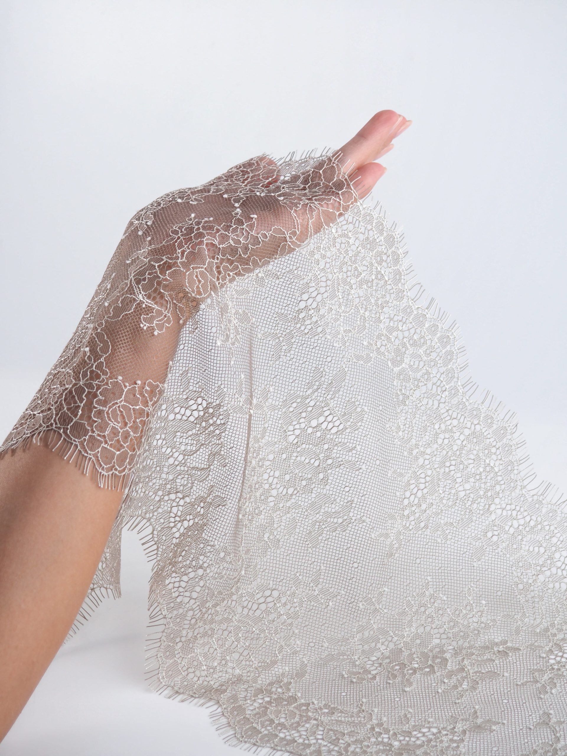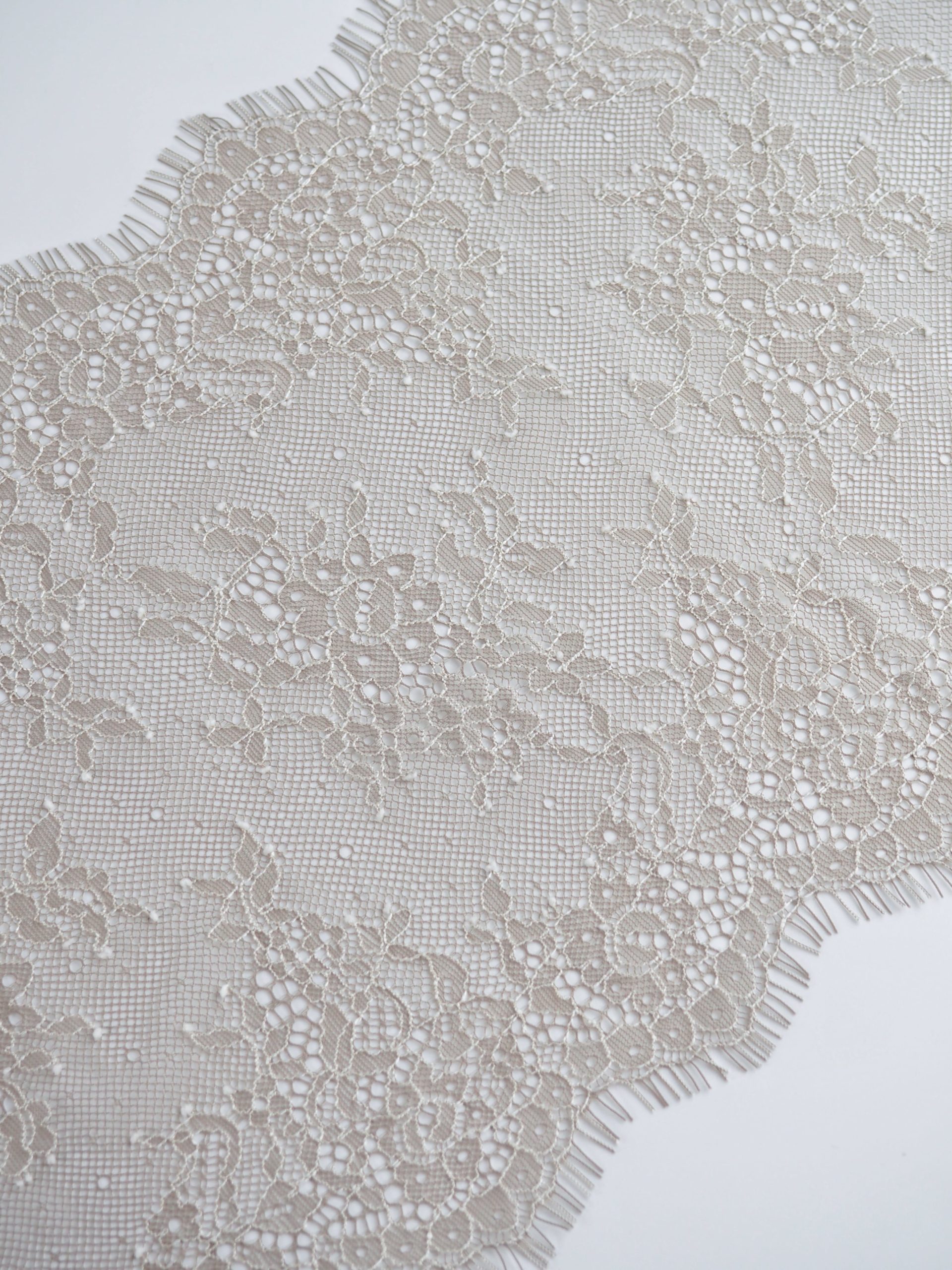 Шантильи кружево с ресничками без эластана серого и кремового цвета.