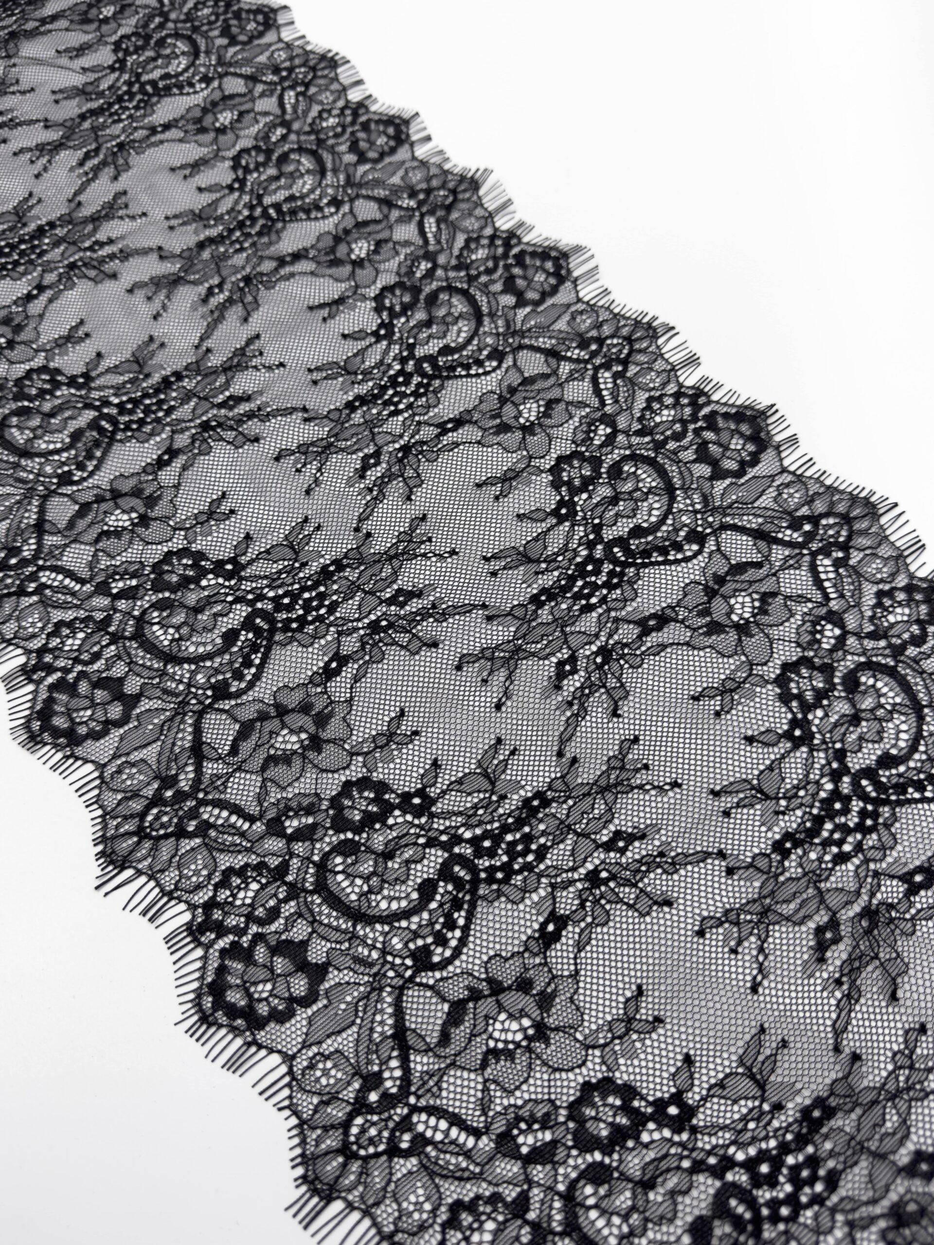 Кружево шантильи черное неэластичное ширина 22 см купон 2.9 м