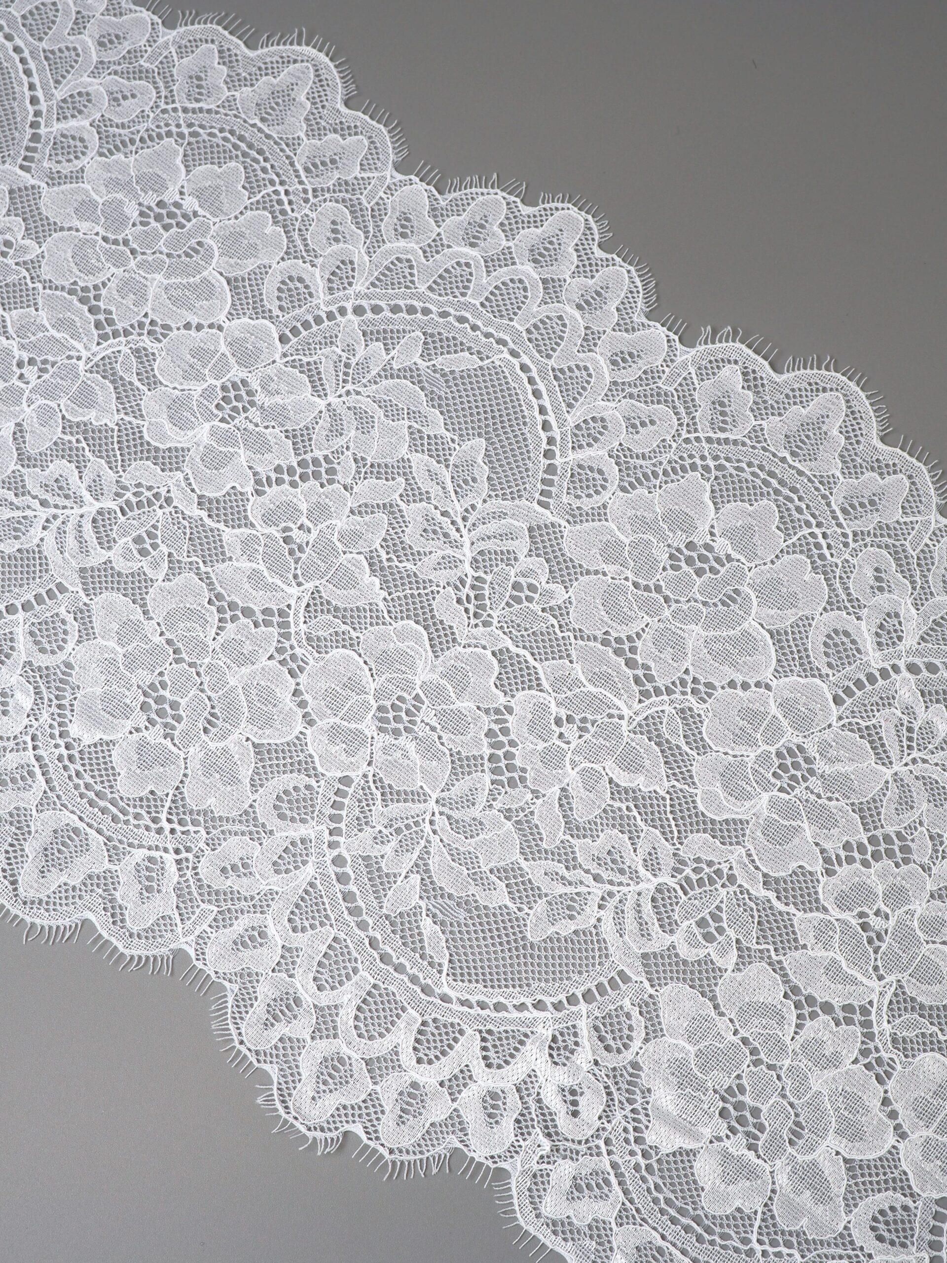 Кружево стрейч белого оттенка с цветочным рисунком. Шантильи эластичное белого цвета.
