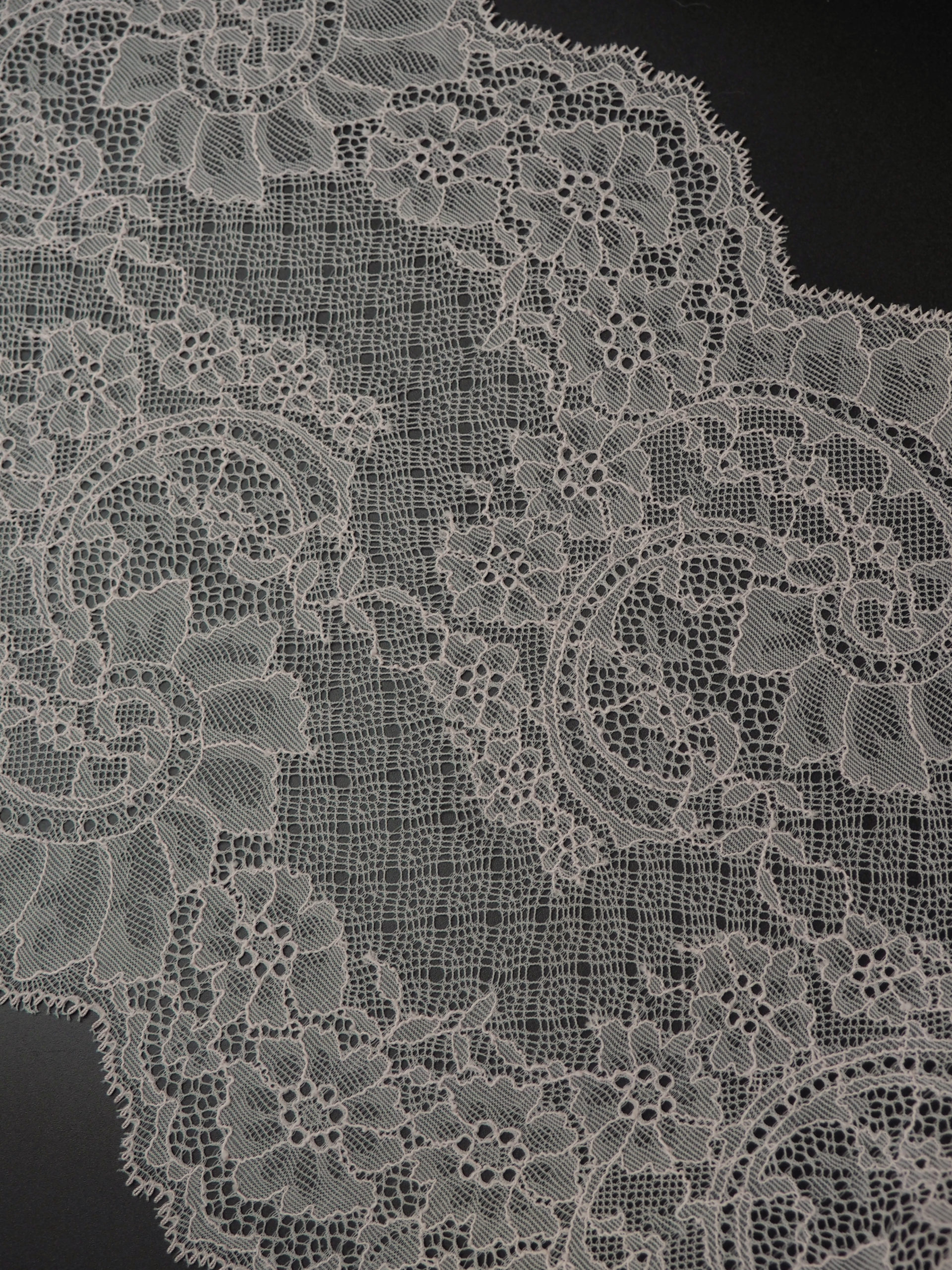 Французское кружево шантильи мягкий и тонкий материал. Он хорошо держит форму держит форму, почти не тянется, отличается высокой прочностью, весит очень мало и очень приятное на ощупь. Его используют для пошива и отделки вечерних и коктейльных платьев, свадебных нарядов, нижнего белья. Даже небольшие ажурные вставки придают изделию утонченность. Украсьте французским кружевом блузку, лиф платья, любое изделие из денима, и вы убедитесь, насколько элегантно смотрится такой материал. Шантильи уместно не только на одежде, но и домашнем текстиле. Ажурную ткань применяют для украшения скатертей и салфеток, занавесок.