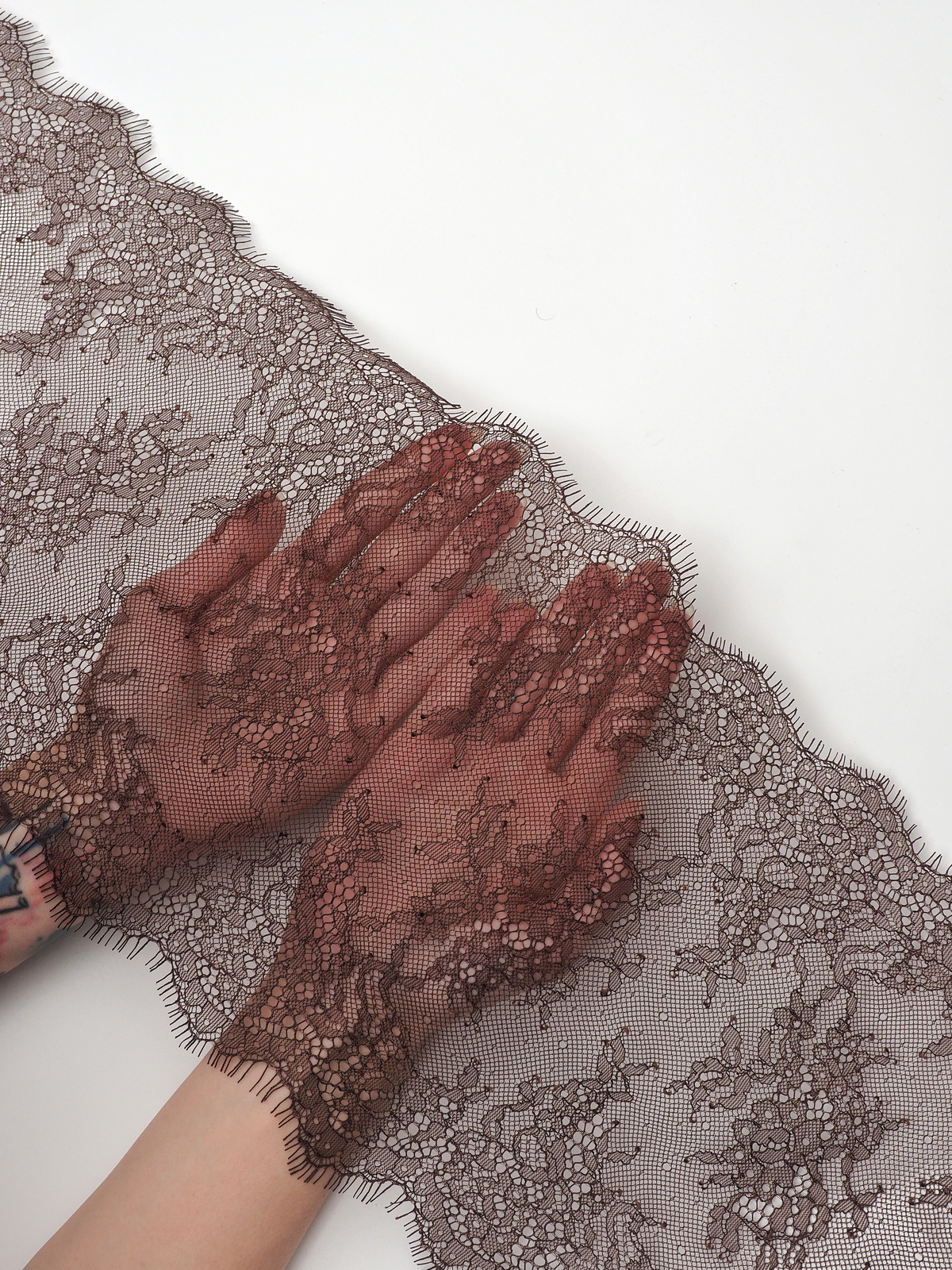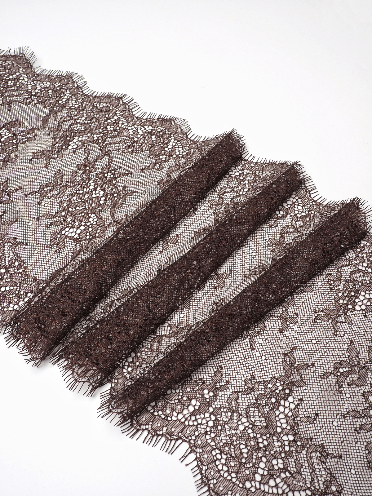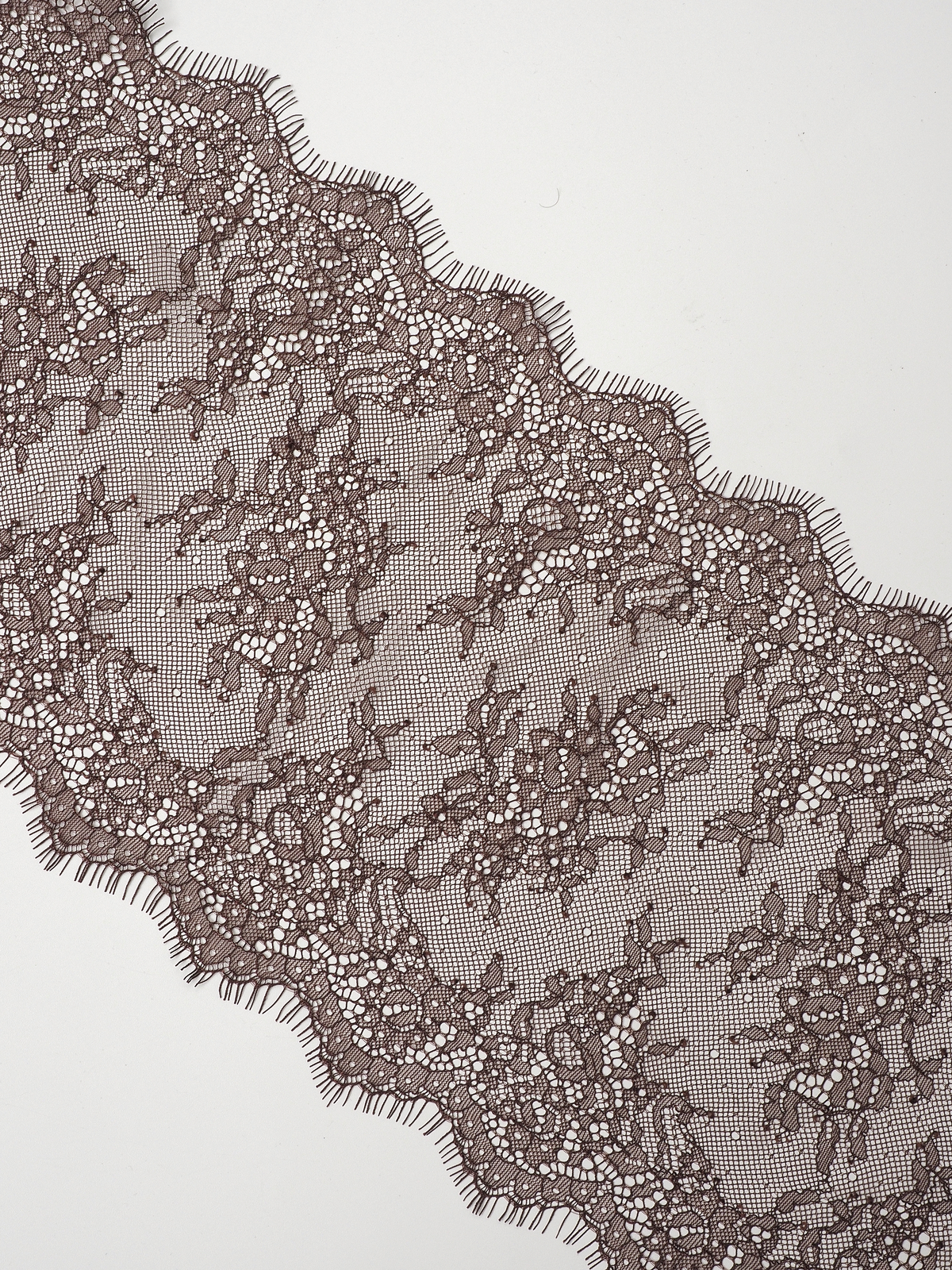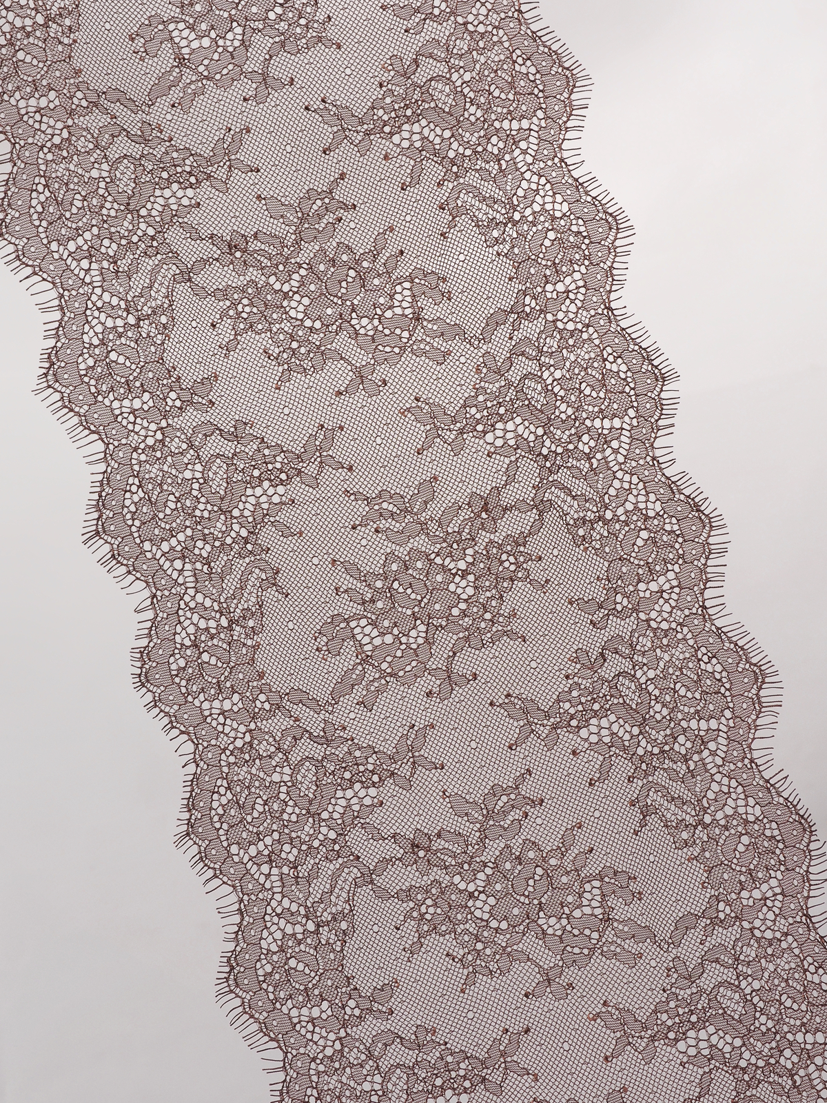 Шантильи кружево с ресничками без эластана коричневое.
