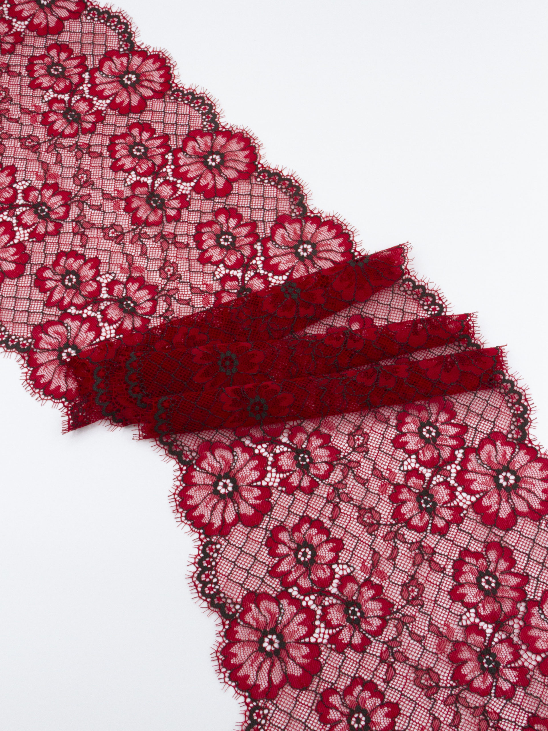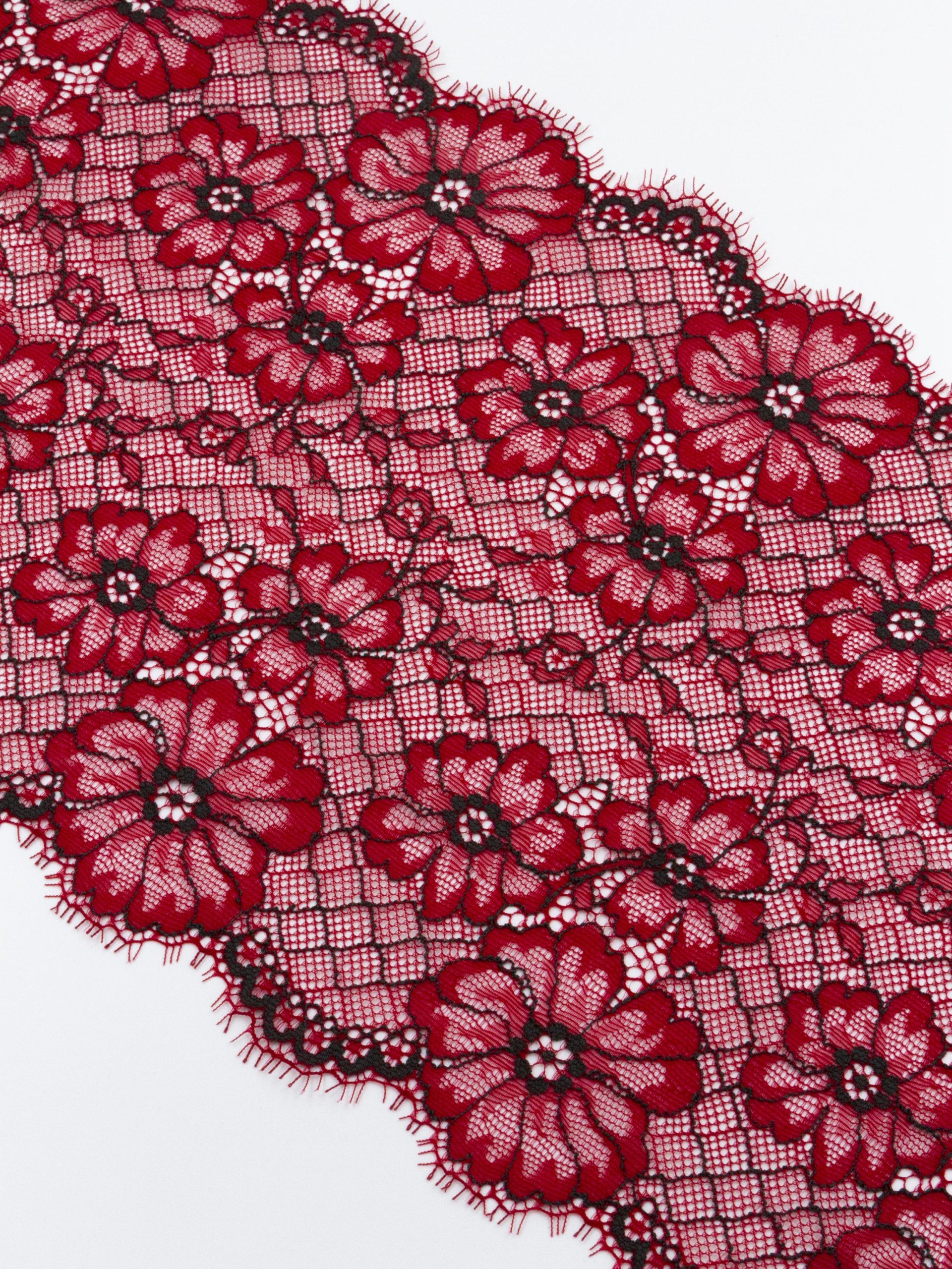 Кружево шантильи красное с черным эластичное ширина 19 см