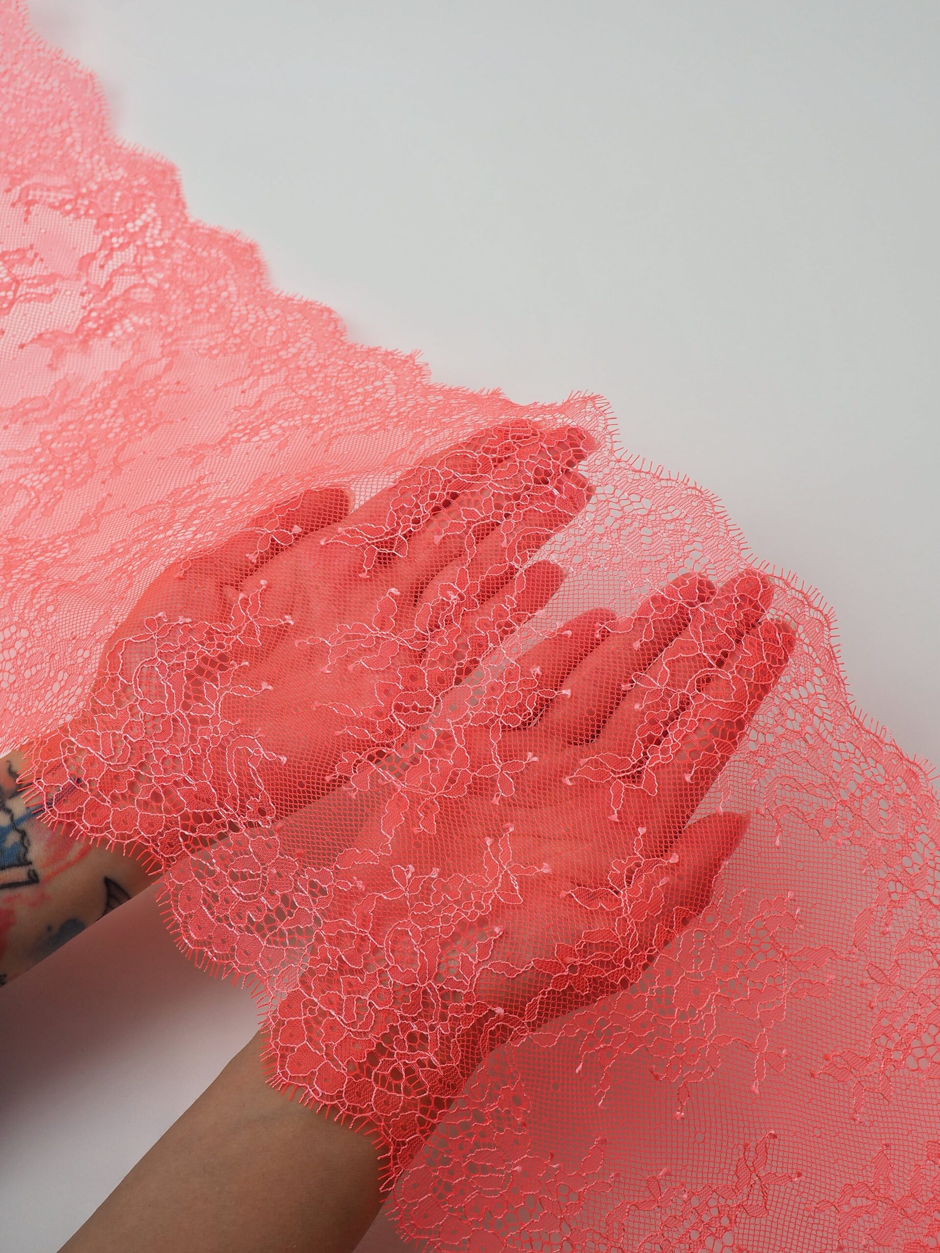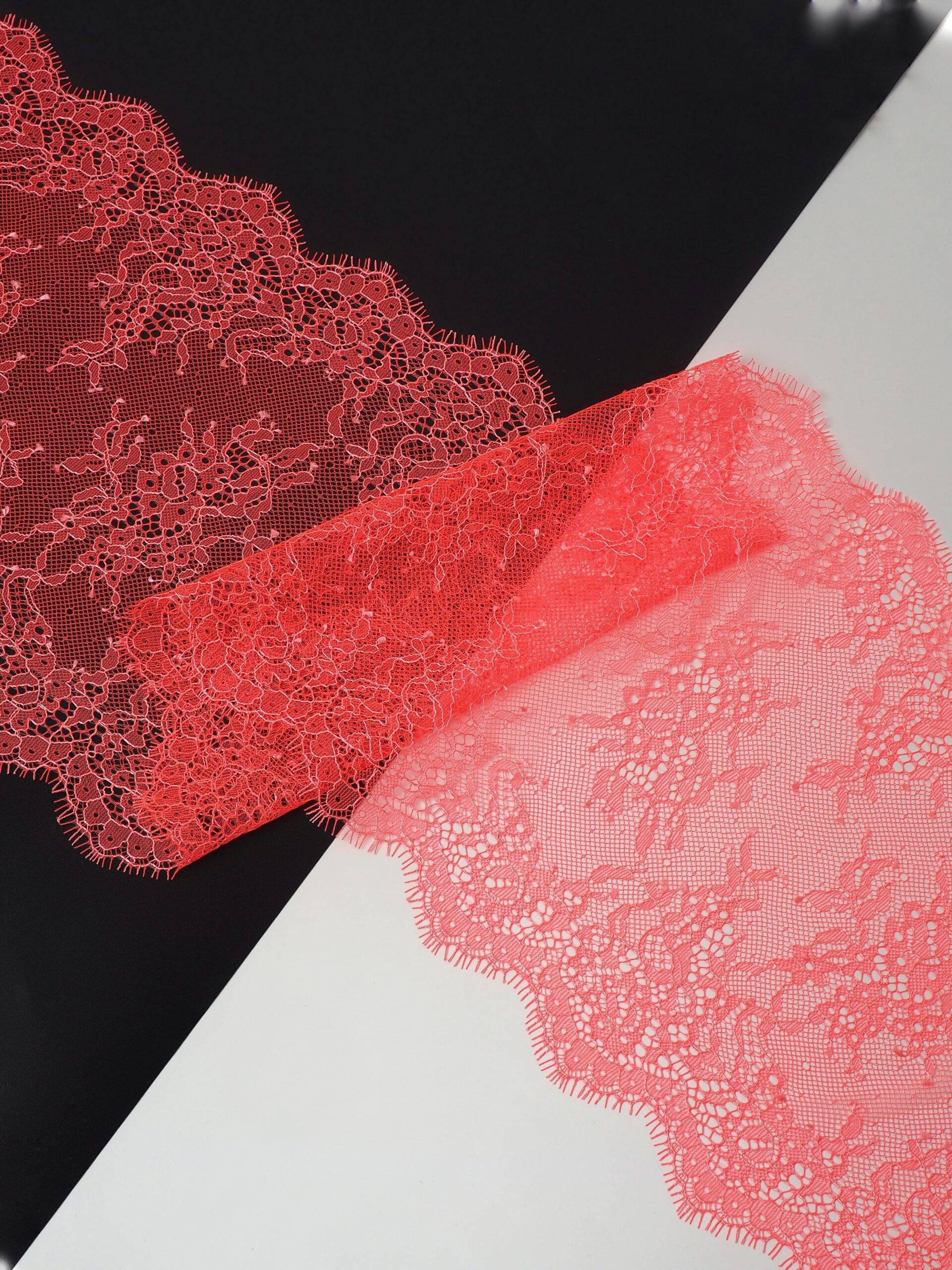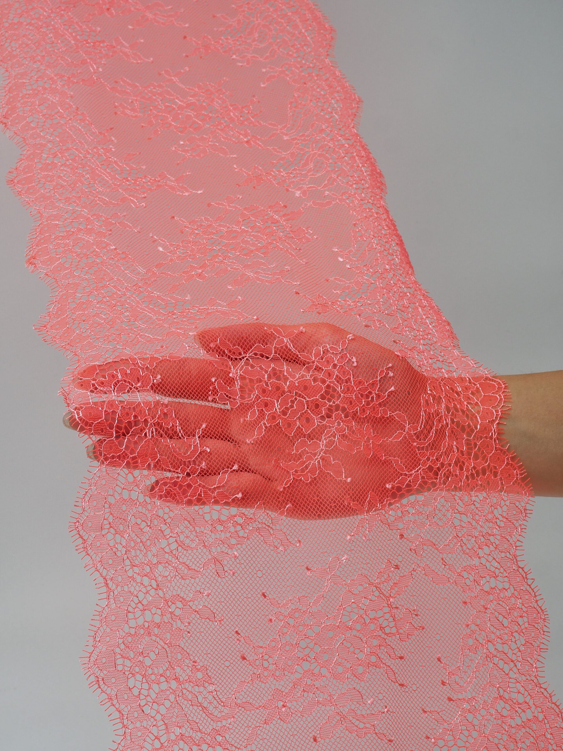 Французское кружево шантильи оранжевое неоновое с экрю ниткой мягкий и тонкий материал. Он хорошо держит форму держит форму, почти не тянется, отличается высокой прочностью, весит очень мало и очень приятное на ощупь. Его используют для пошива и отделки вечерних и коктейльных платьев, свадебных нарядов, нижнего белья. Даже небольшие ажурные вставки придают изделию утонченность. Украсьте французским кружевом блузку, лиф платья, любое изделие из денима, и вы убедитесь, насколько элегантно смотрится такой материал. Шантильи уместно не только на одежде, но и домашнем текстиле. Ажурную ткань применяют для украшения скатертей и салфеток, занавесок.
