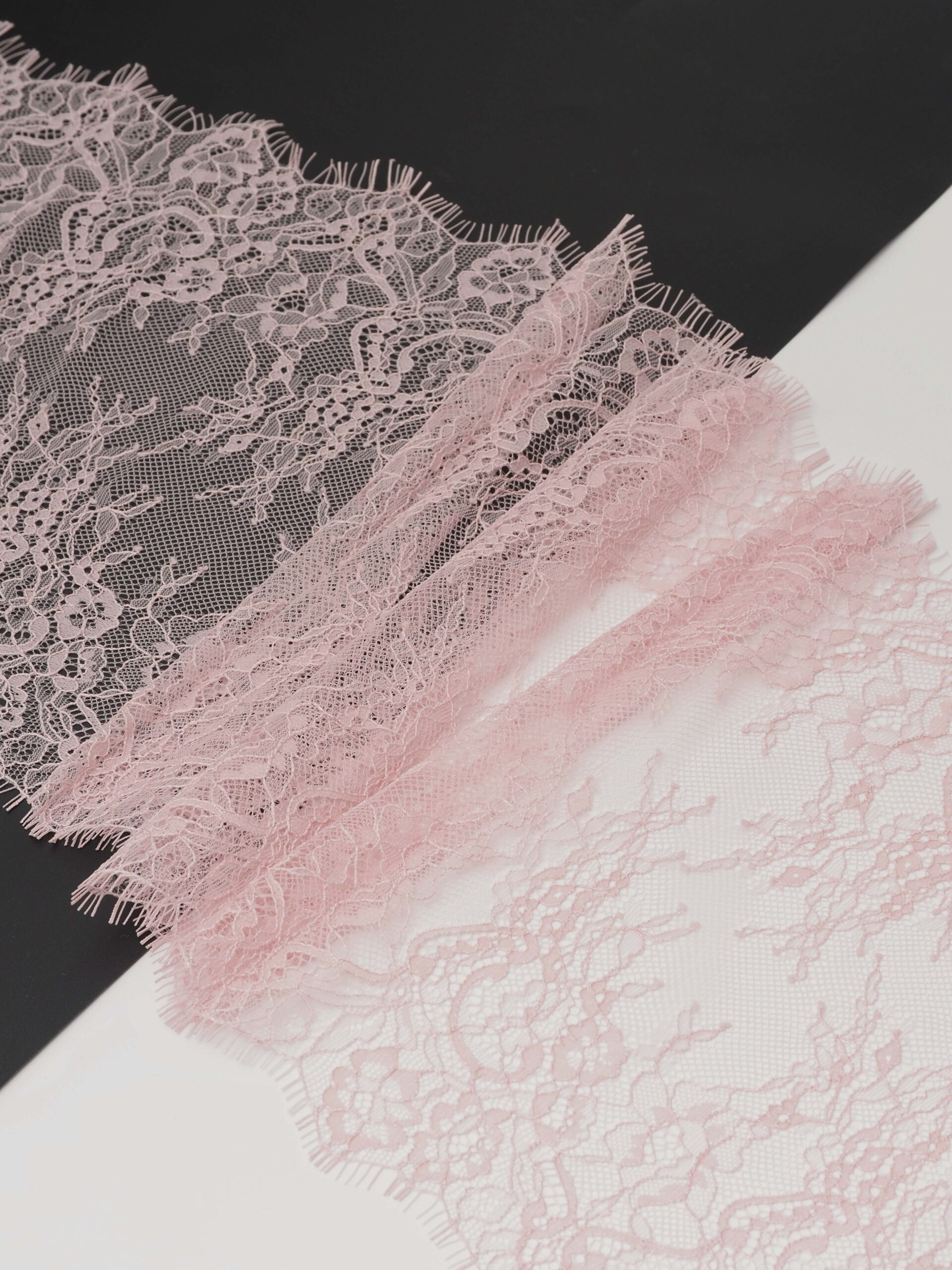 Шантильи кружево с ресничками без эластана пудровое.