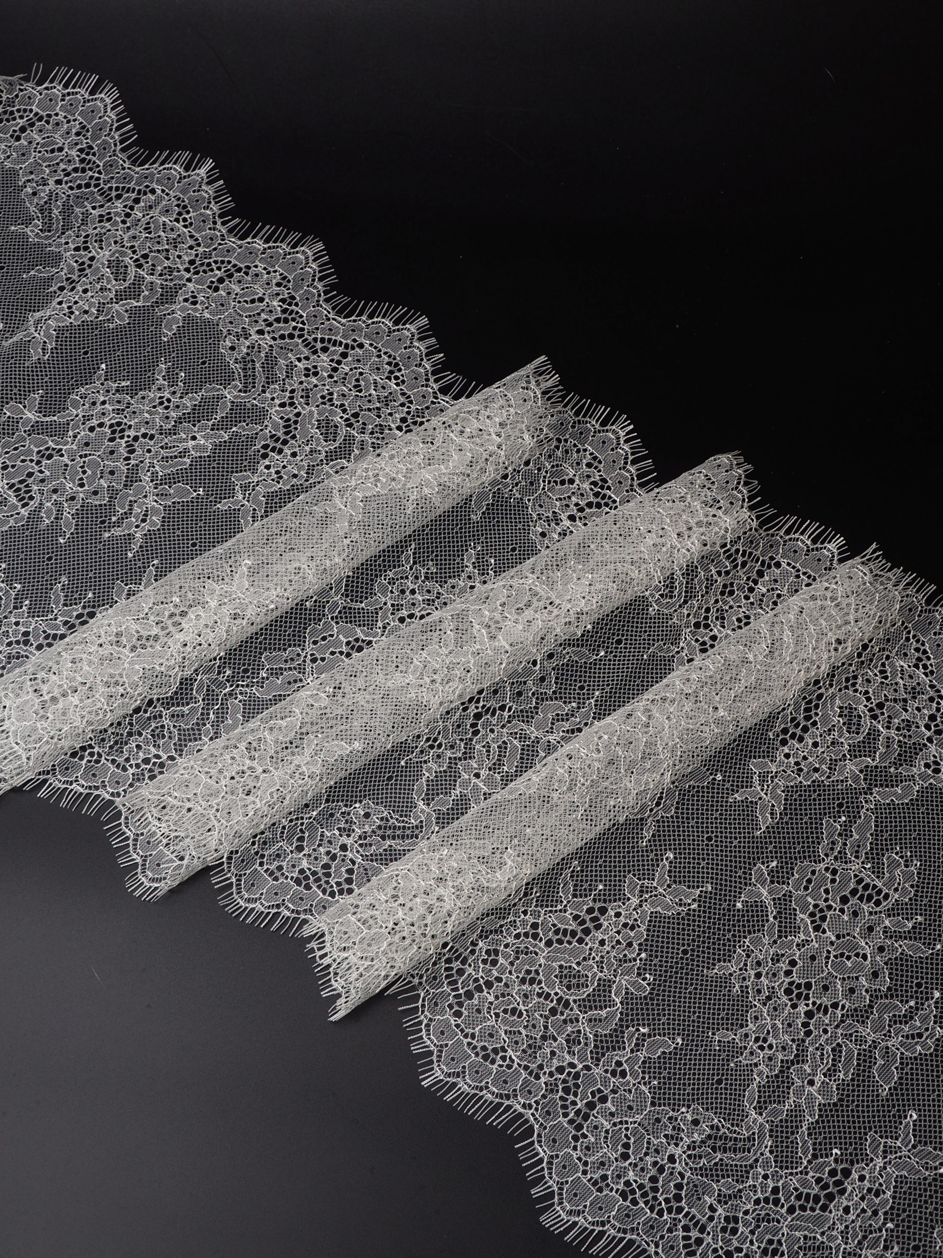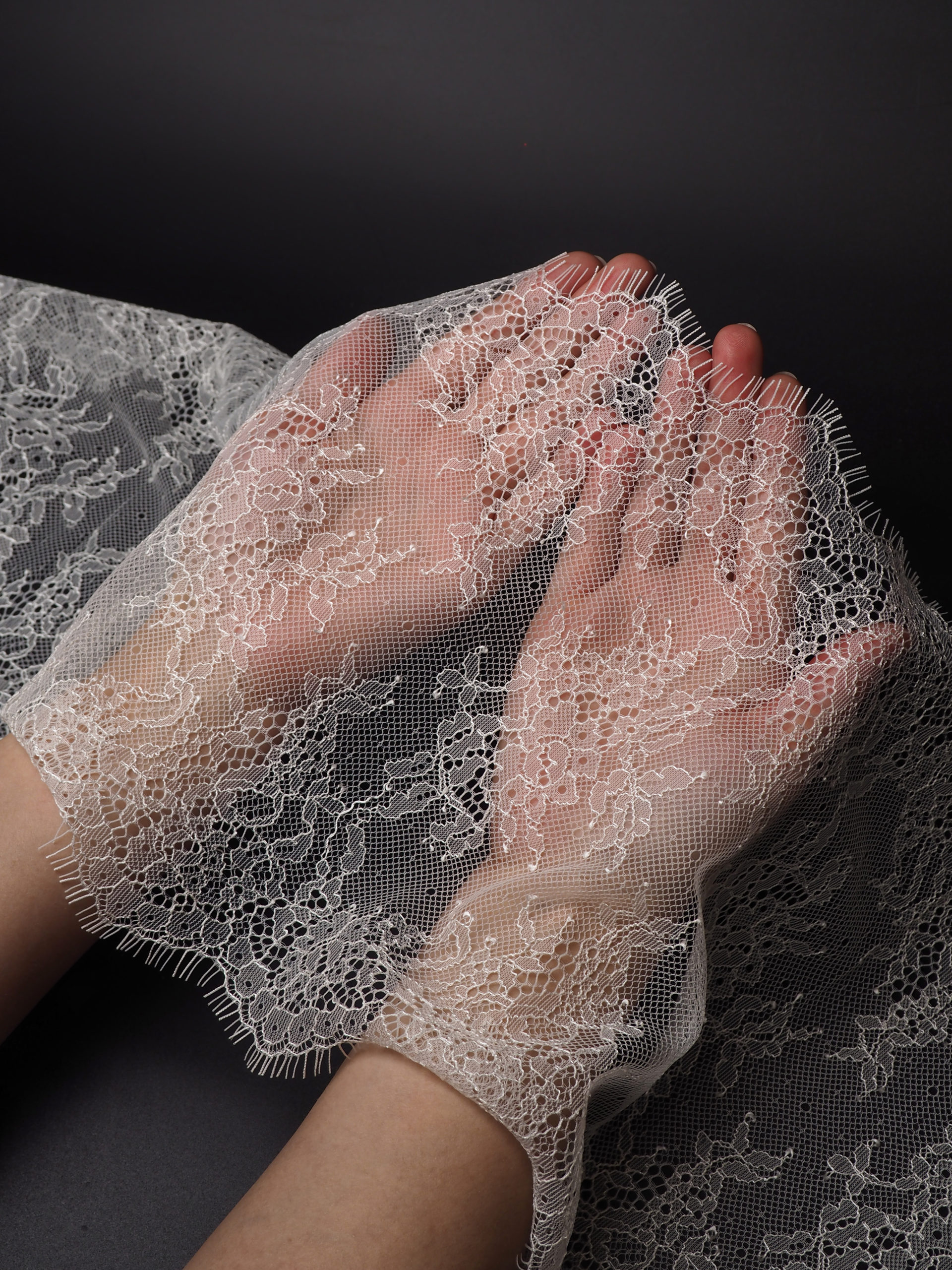 Французское кружево шантильи мягкий и тонкий материал. Он хорошо держит форму держит форму, почти не тянется, отличается высокой прочностью, весит очень мало и очень приятное на ощупь. Его используют для пошива и отделки вечерних и коктейльных платьев, свадебных нарядов, нижнего белья. Даже небольшие ажурные вставки придают изделию утонченность. Украсьте французским кружевом блузку, лиф платья, любое изделие из денима, и вы убедитесь, насколько элегантно смотрится такой материал. Шантильи уместно не только на одежде, но и домашнем текстиле. Ажурную ткань применяют для украшения скатертей и салфеток, занавесок.