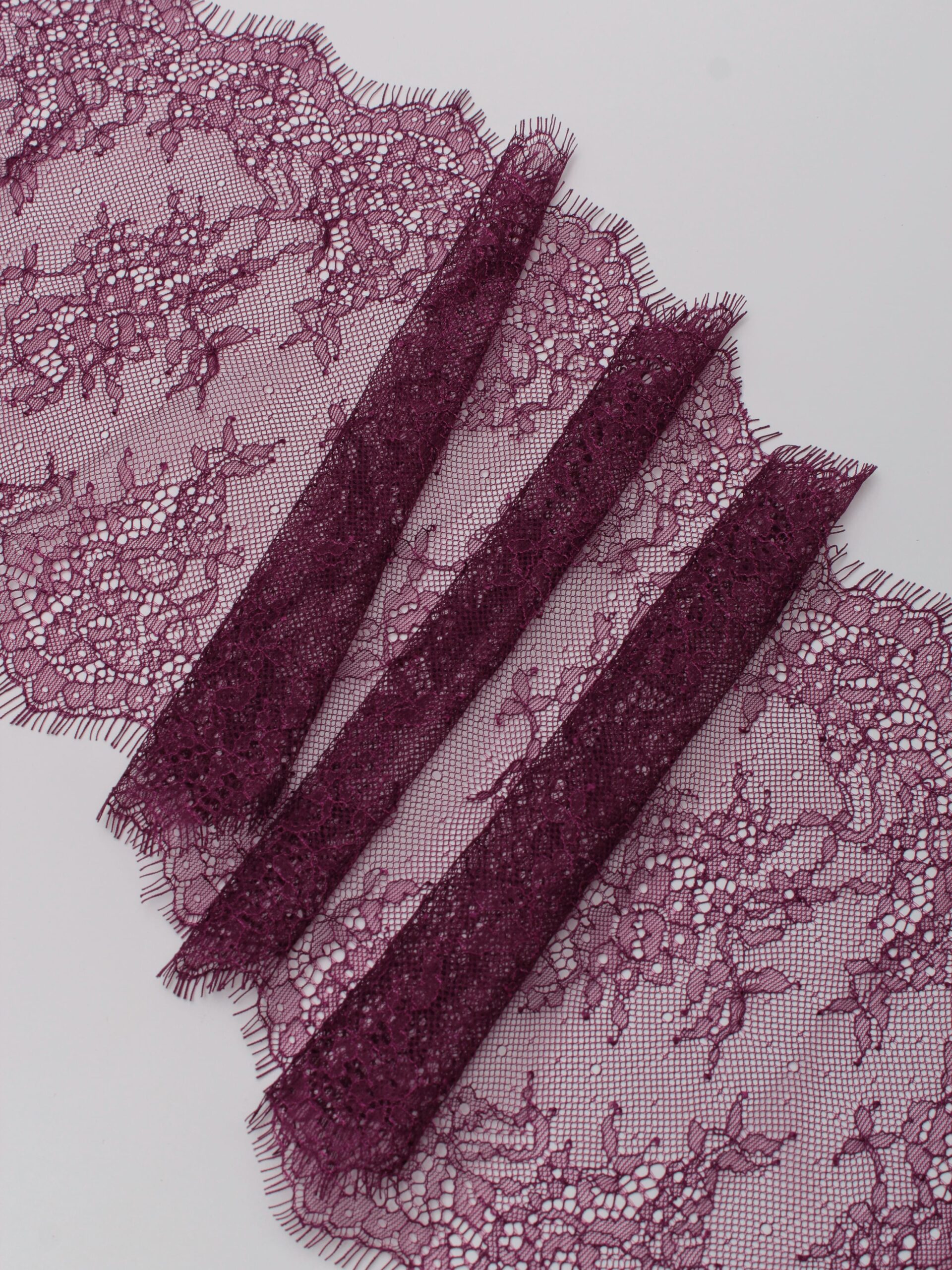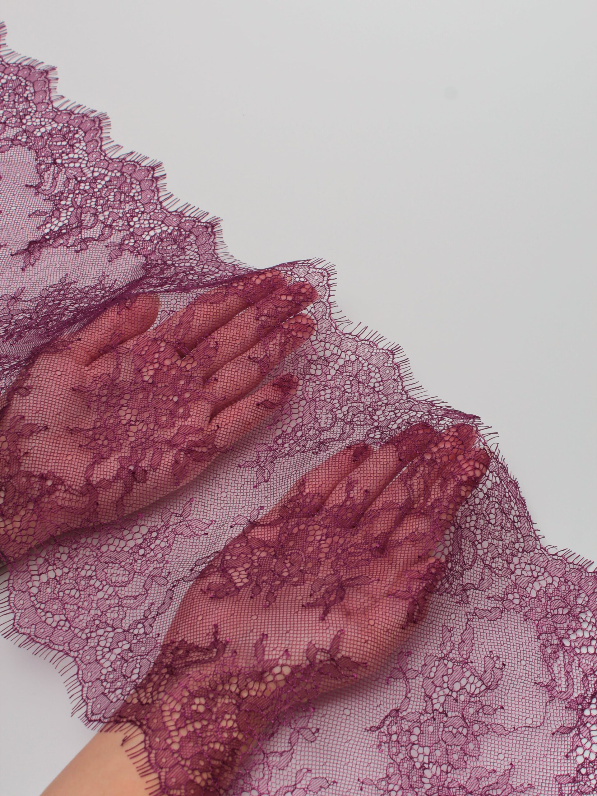 Шантильи кружево с ресничками без эластана сливовое.