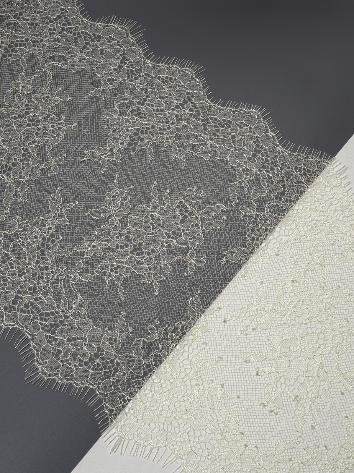 Французское кружево шантильи мягкий и тонкий материал. Он хорошо держит форму, почти не тянется, отличается высокой прочностью, весит очень мало и очень приятное на ощупь. Его используют для пошива и отделки вечерних и коктейльных платьев, свадебных нарядов, нижнего белья. Даже небольшие ажурные вставки придают изделию утонченность. Украсьте французским кружевом блузку, лиф платья, любое изделие из денима, и вы убедитесь, насколько элегантно смотрится такой материал. Шантильи уместно не только на одежде, но и домашнем текстиле. Ажурную ткань применяют для украшения скатертей и салфеток, занавесок.