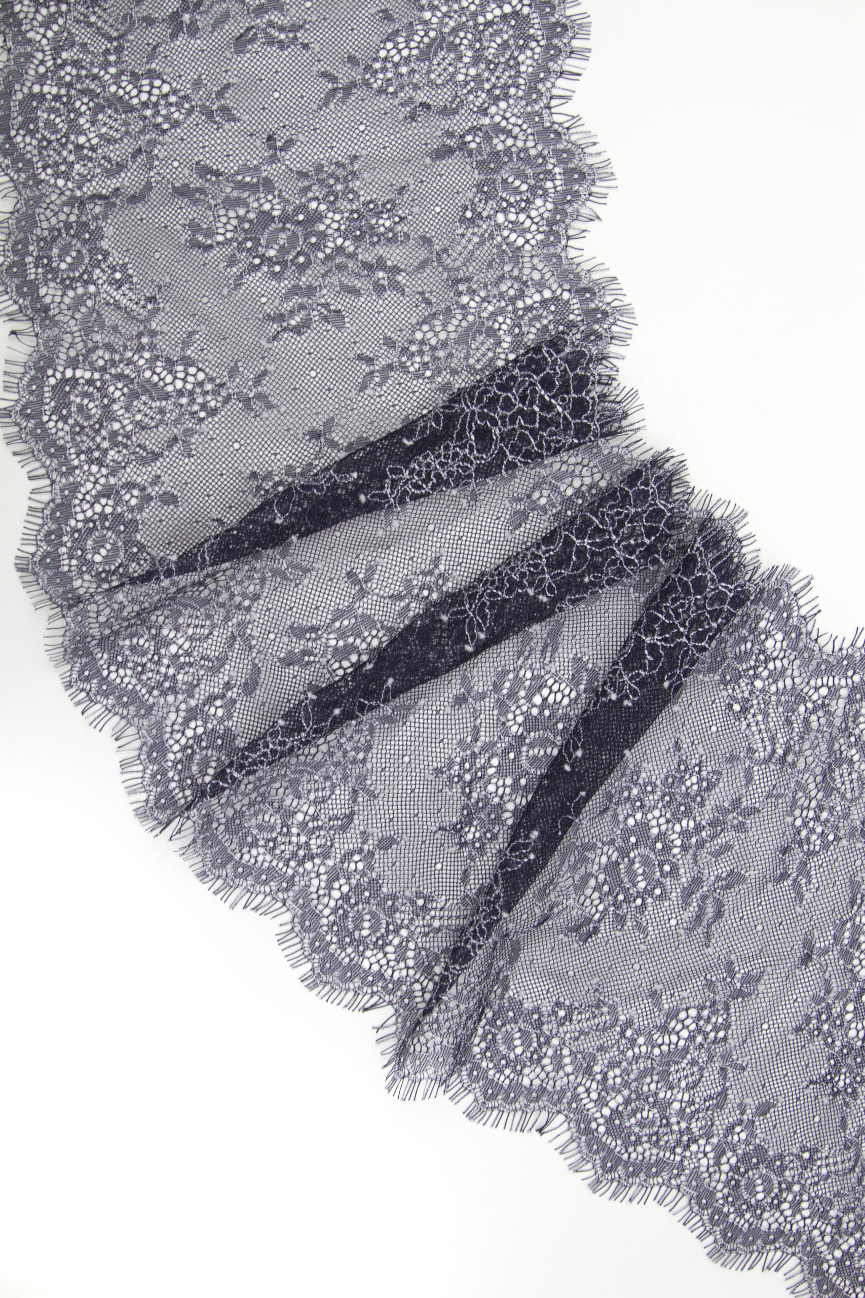 Французское кружево шантильи темно-синее с нитью экрю мягкий и тонкий материал. Он хорошо держит форму держит форму, почти не тянется, отличается высокой прочностью, весит очень мало и очень приятное на ощупь. Его используют для пошива и отделки вечерних и коктейльных платьев, свадебных нарядов, нижнего белья. Даже небольшие ажурные вставки придают изделию утонченность. Украсьте французским кружевом блузку, лиф платья, любое изделие из денима, и вы убедитесь, насколько элегантно смотрится такой материал. Шантильи уместно не только на одежде, но и домашнем текстиле. Ажурную ткань применяют для украшения скатертей и салфеток, занавесок.