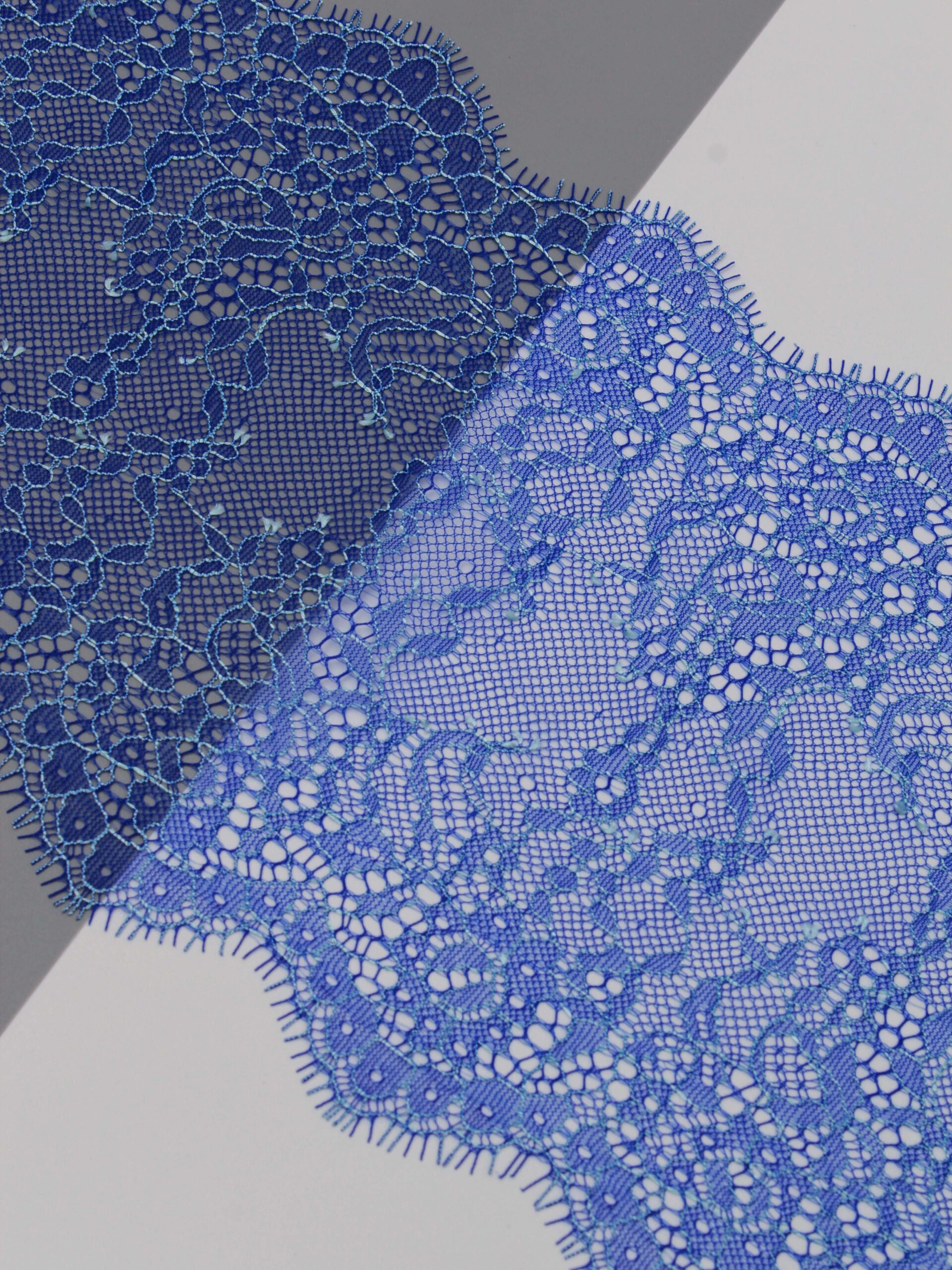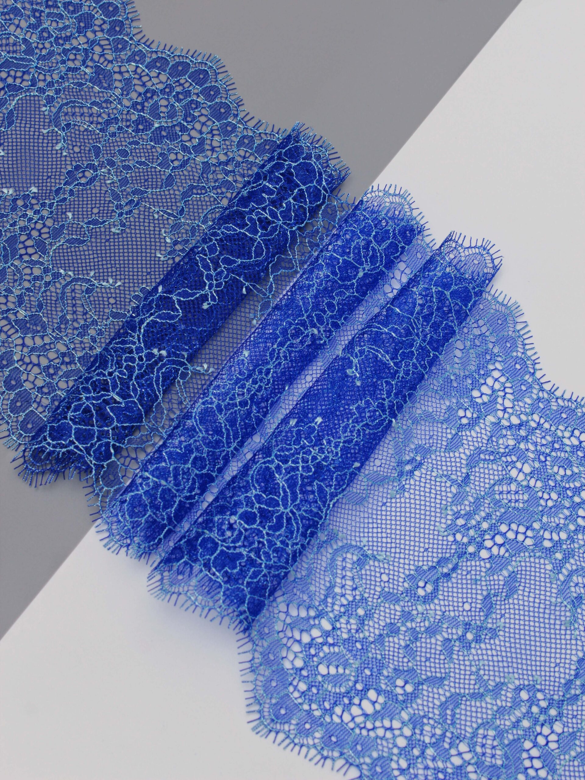 Французское кружево шантильи ультрамарин с голубой нитью мягкий и тонкий материал. Он хорошо держит форму, почти не тянется, отличается высокой прочностью, весит очень мало и очень приятное на ощупь. Его используют для пошива и отделки вечерних и коктейльных платьев, свадебных нарядов, нижнего белья. Даже небольшие ажурные вставки придают изделию утонченность. Украсьте французским кружевом блузку, лиф платья, любое изделие из денима, и вы убедитесь, насколько элегантно смотрится такой материал. Шантильи уместно не только на одежде, но и домашнем текстиле. Ажурную ткань применяют для украшения скатертей и салфеток, занавесок.