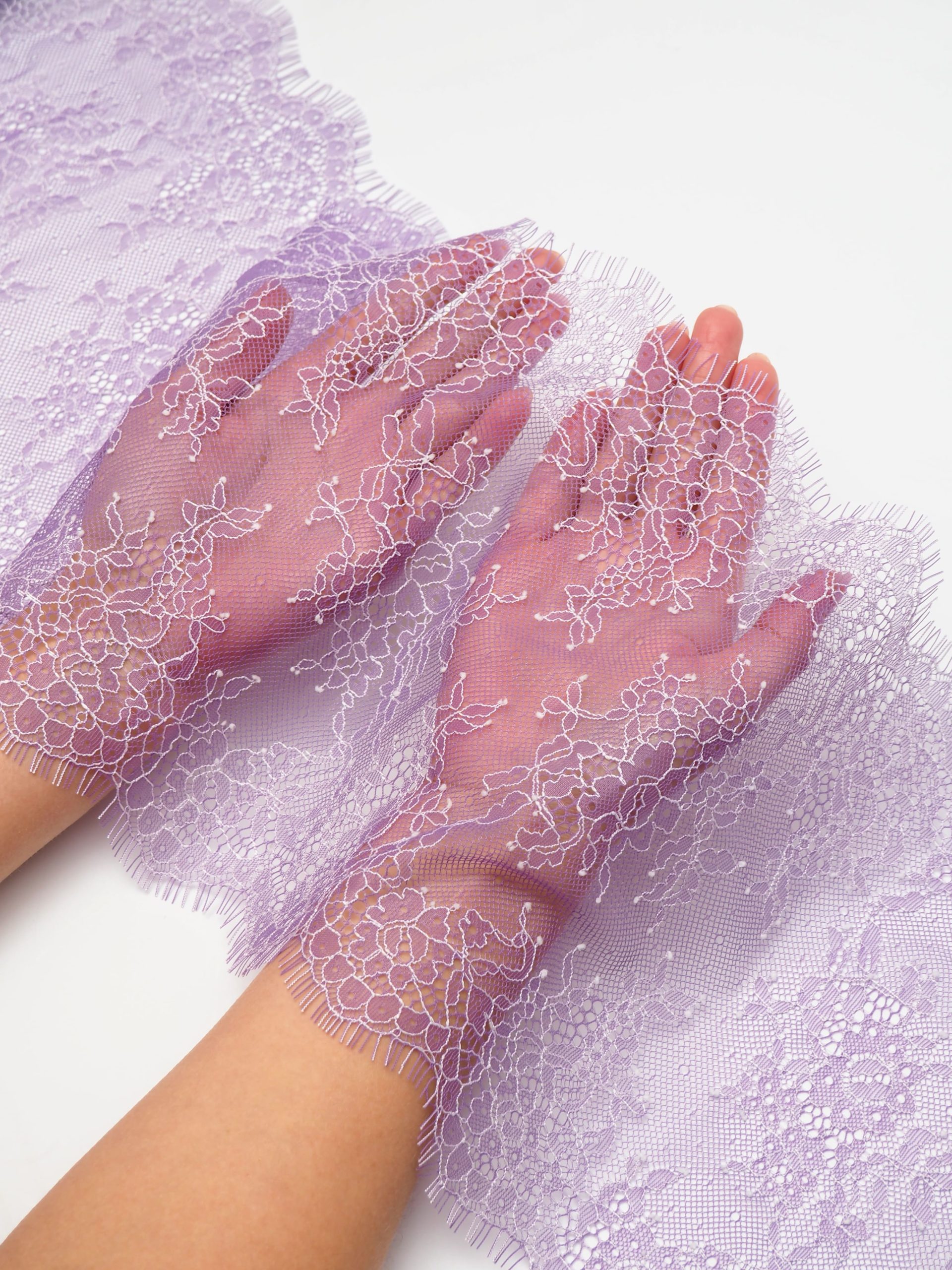 Шантильи кружево с ресничками без эластана фиолетовое.