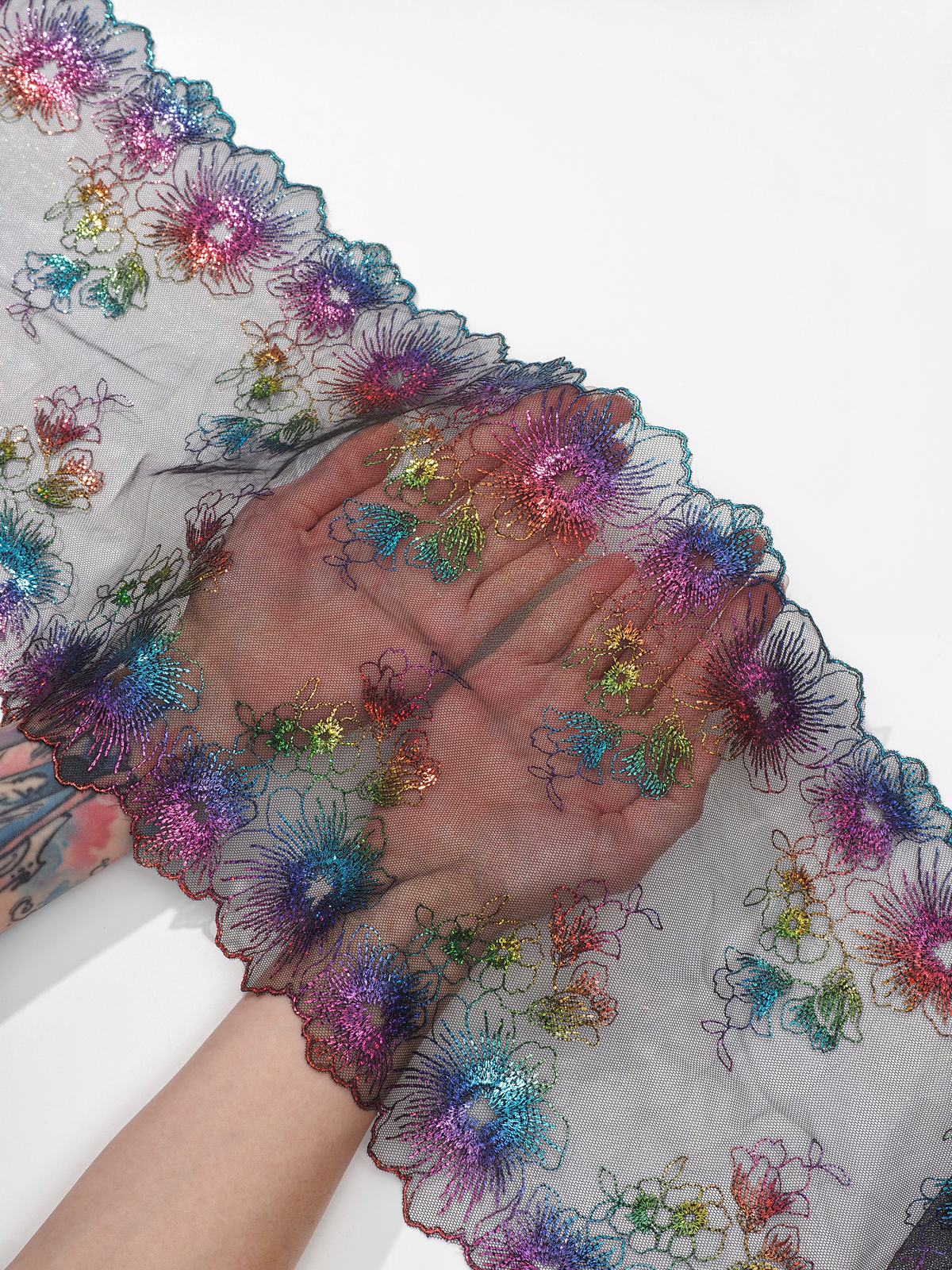 Ваше идеальное решение для создания эксклюзивного белья Двухстороннее кружево с вышивкой на сетке сочетает эстетику и функциональность. Сочетание цвета с вышитым рисунком придаёт материалу особый шарм и универсальность.