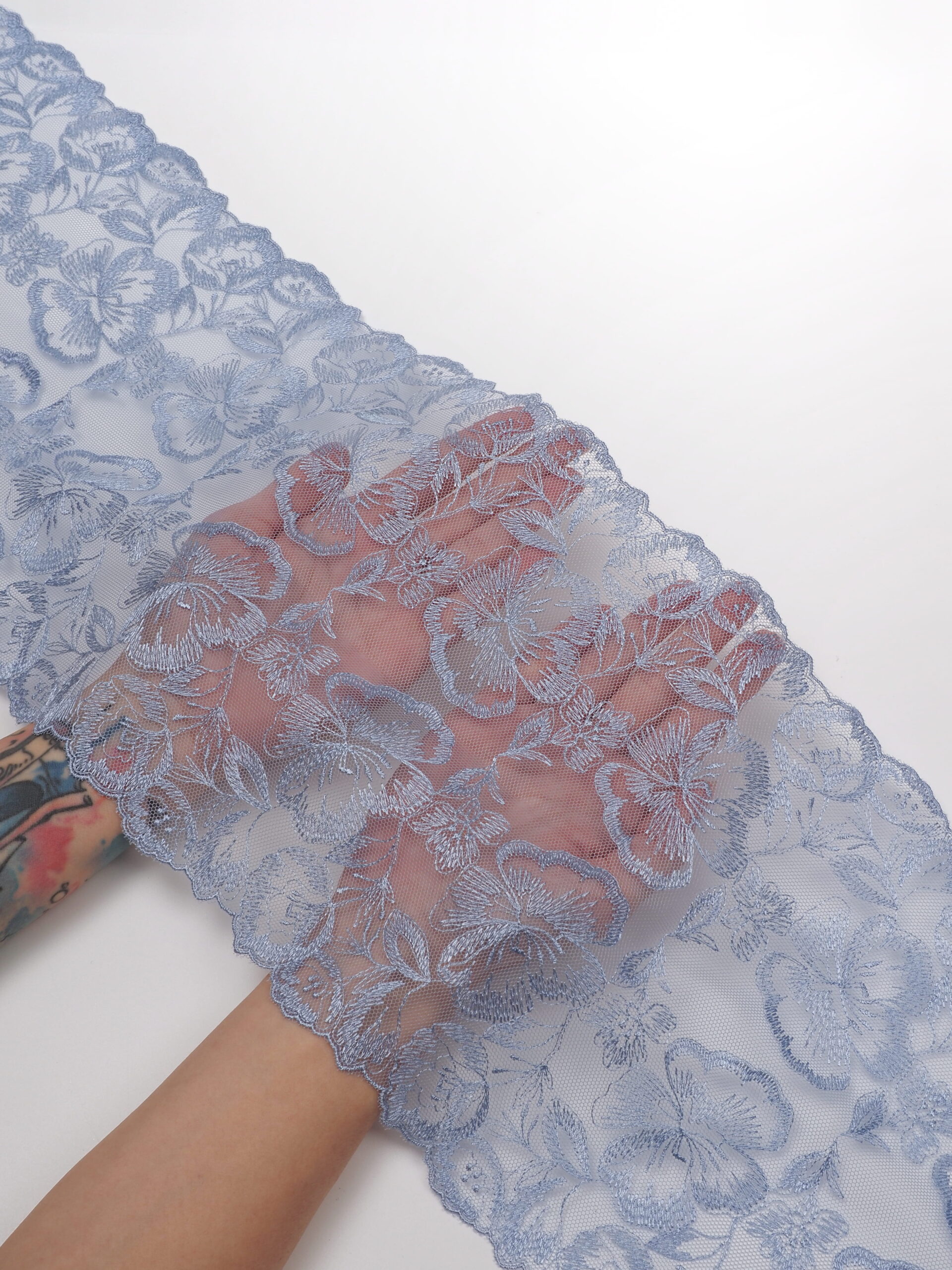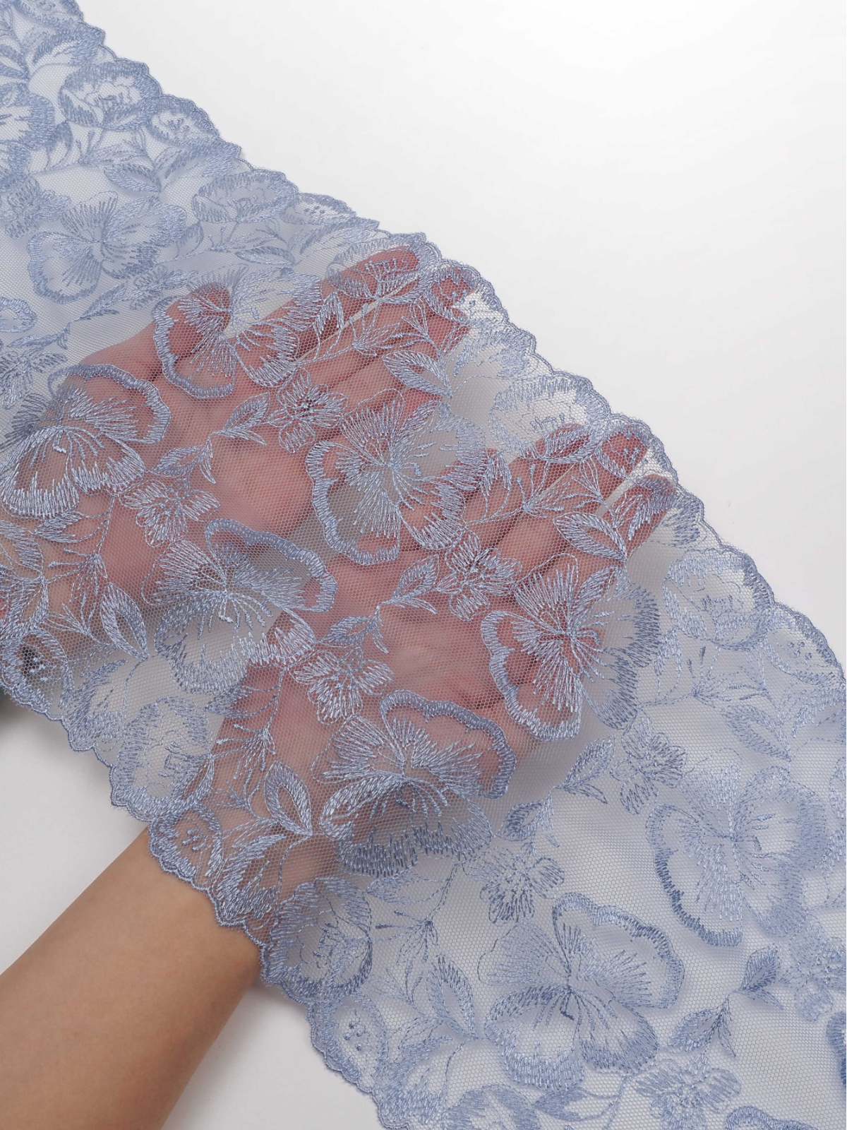 Двухстороннее кружево с вышивкой на сетке сочетает эстетику и функциональность. Сочетание цвета с вышитым рисунком придаёт материалу особый шарм и универсальность.