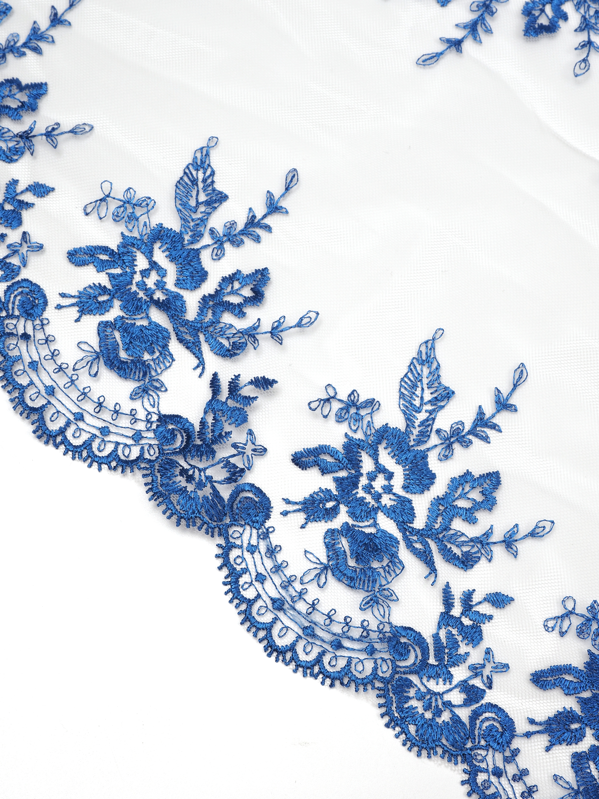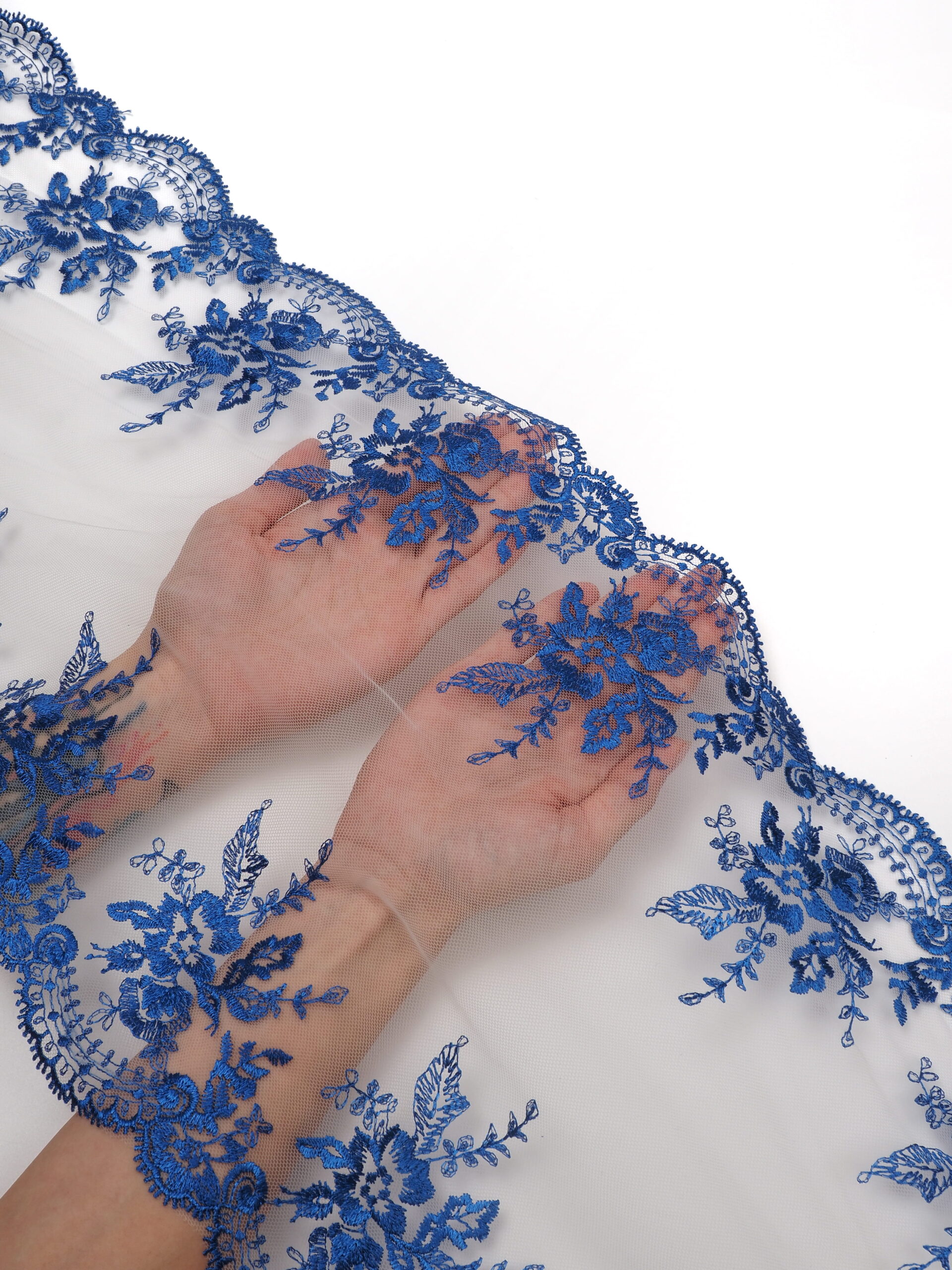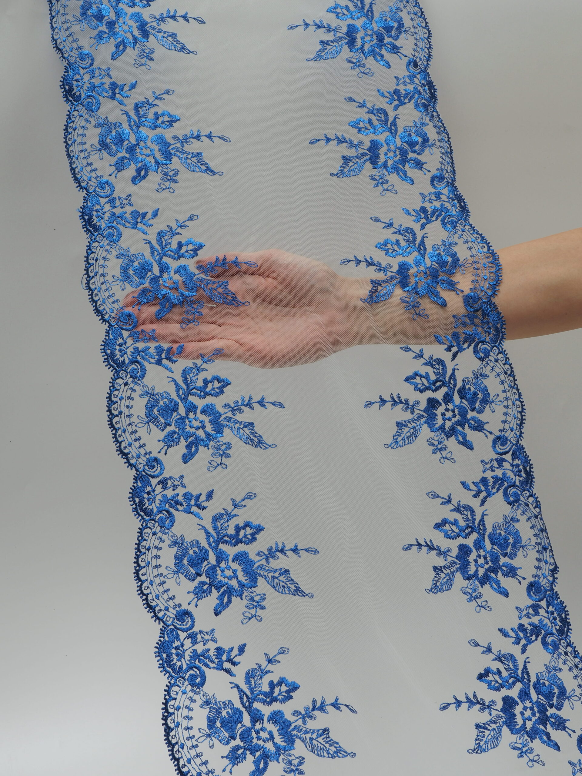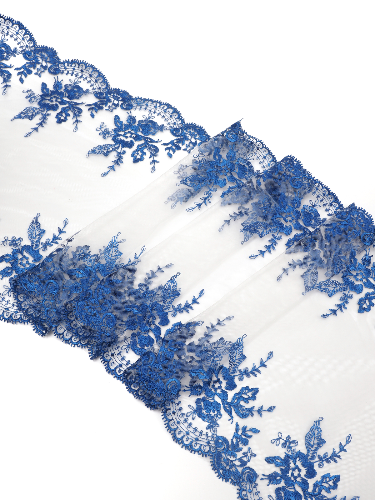 Двухстороннее кружево с вышивкой на сетке сочетает эстетику и функциональность. Сочетание цвета с вышитым рисунком придаёт материалу особый шарм и универсальность.