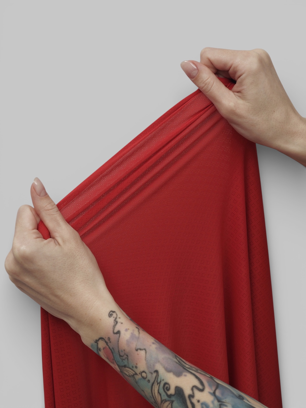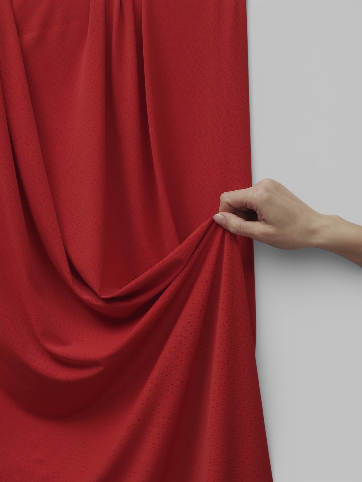 Микрофибра для нижнего белья стрейч ткань красного оттенка, матовая, ажурная, с перфорацией, тянется в обе стороны.