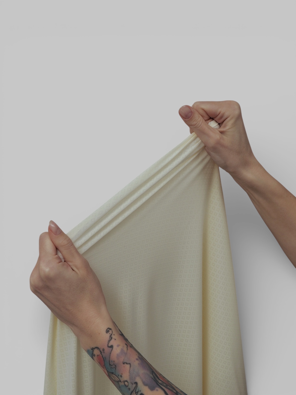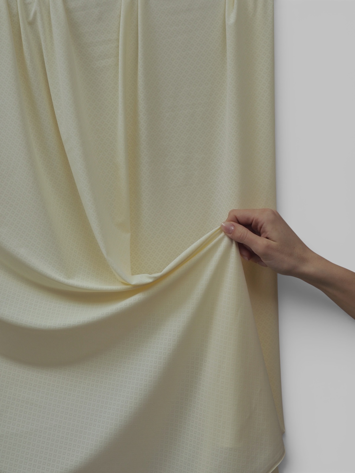 Микрофибра для нижнего белья стрейч ткань желтого оттенка, матовая, ажурная, с перфорацией, тянется в обе стороны.