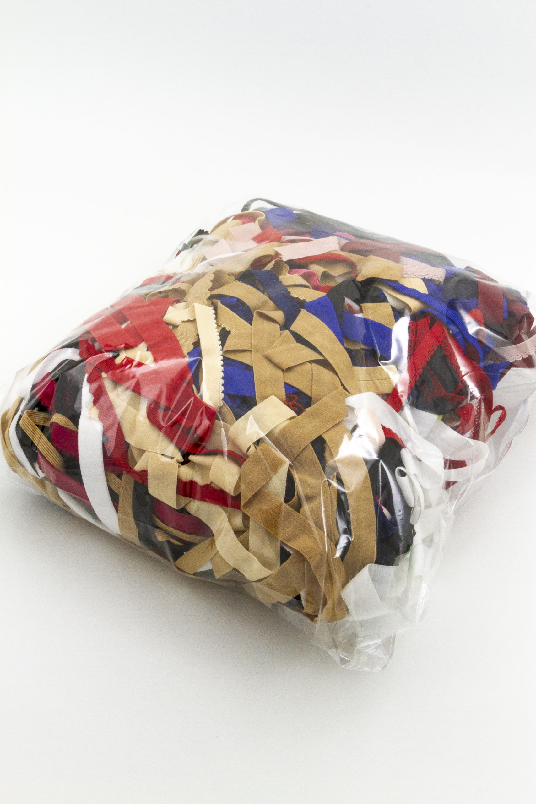 Набор резинок: Состоит из отрезов от 0,5 до 2 метров разных цветов, разных видов резинок. В основном отделочные, немного бретелечных резинок и туннельных лент. В сумме около 25-30 метров. Упаковка 180 гр.