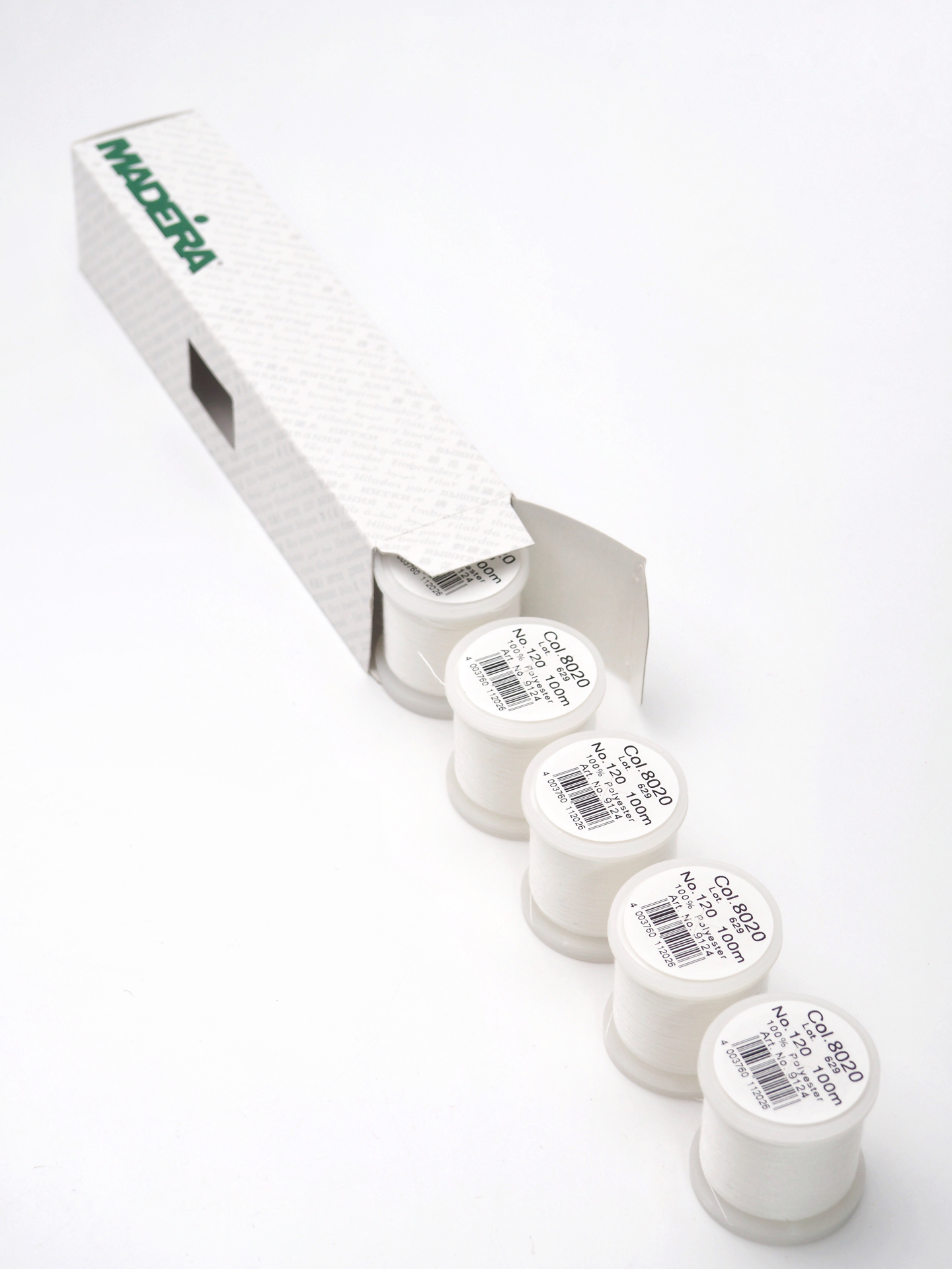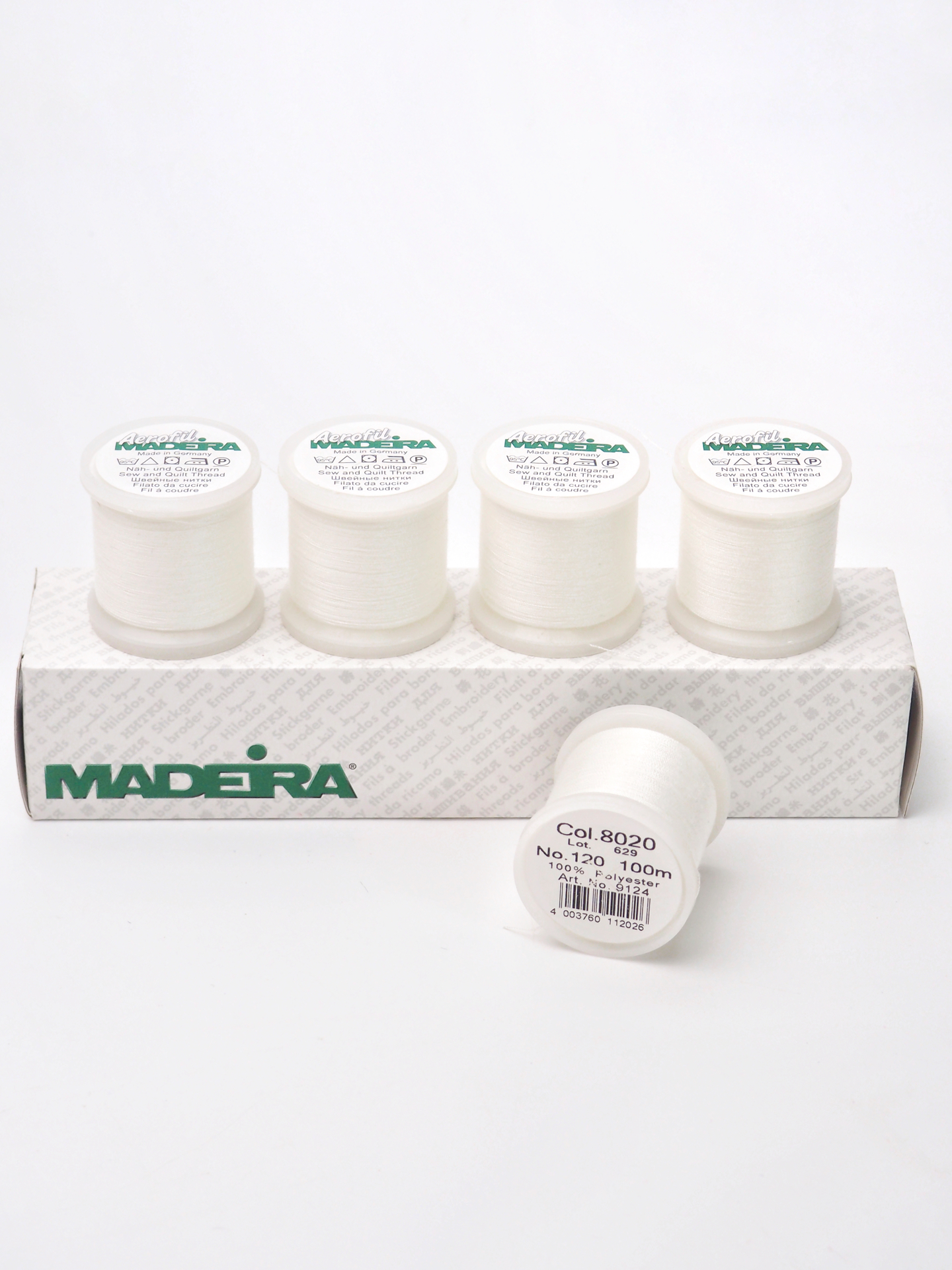 Универсальные нитки Madeira aerofil 120 белого оттенка для любых видов тканей. Можно использовать на швейной машинке и вручную.