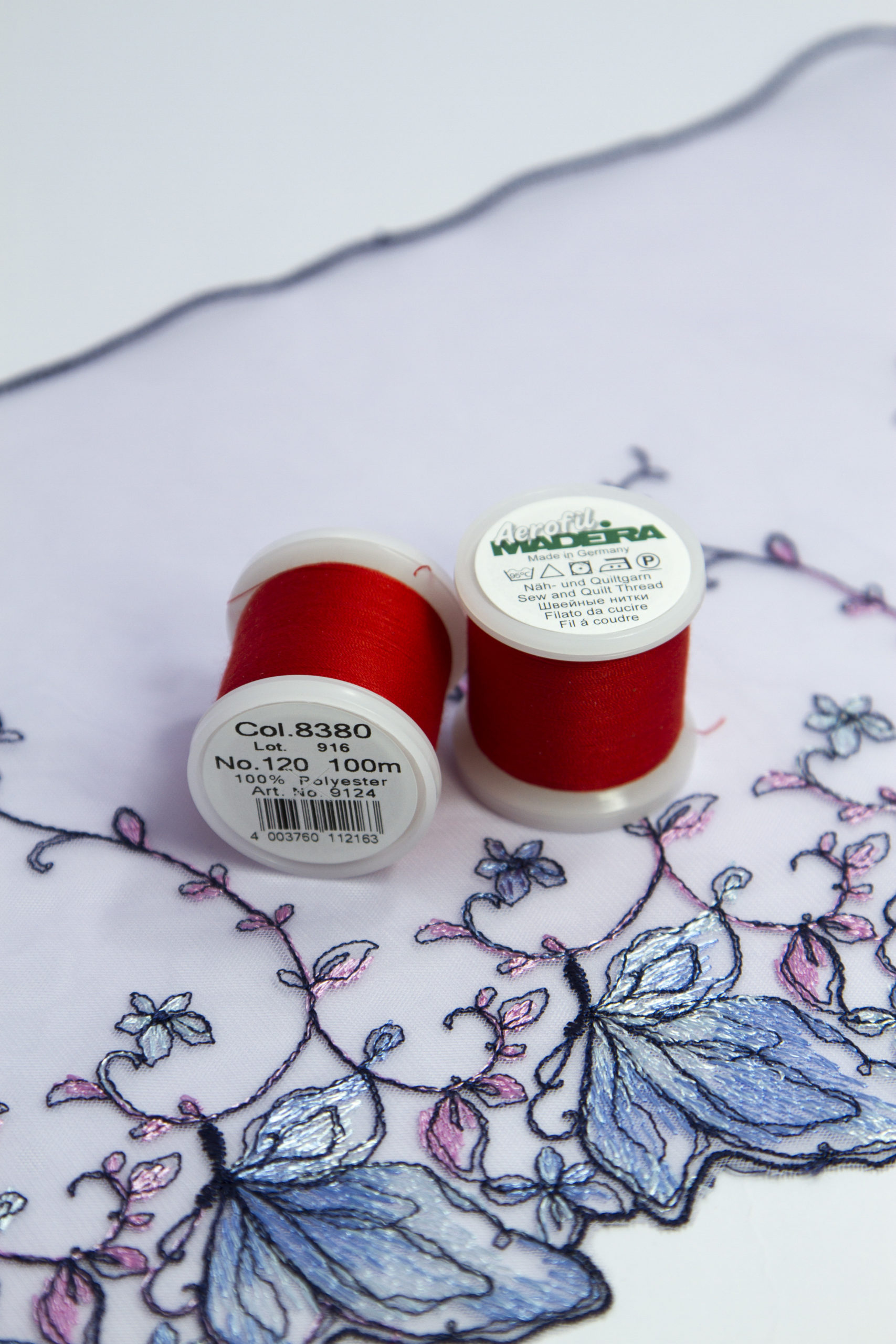 Универсальные нитки Madeira aerofil 120 красного оттенка для любых видов тканей. Можно использовать на швейной машинке и вручную.