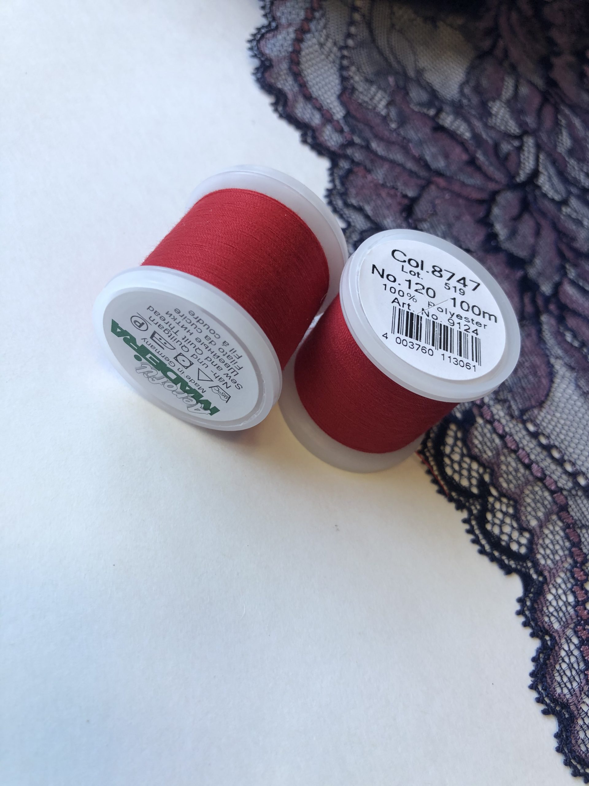 Универсальные нитки Madeira aerofil 120 красного оттенка для любых видов тканей. Можно использовать на швейной машинке и вручную.