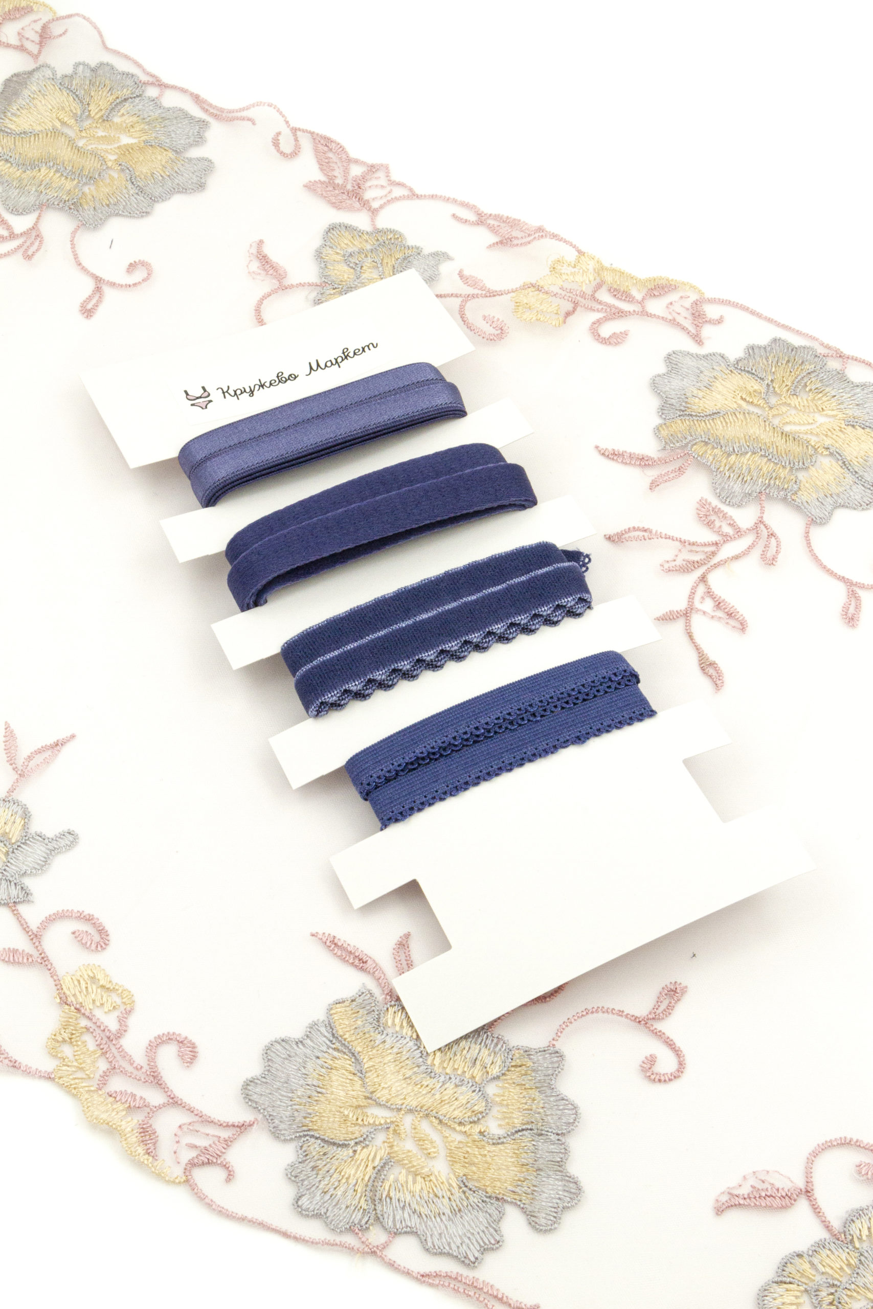 Подборка бельевых резинок индиго для пошива нижнего белья и корсетов. Подборка бельевых резинок синего оттенка.
