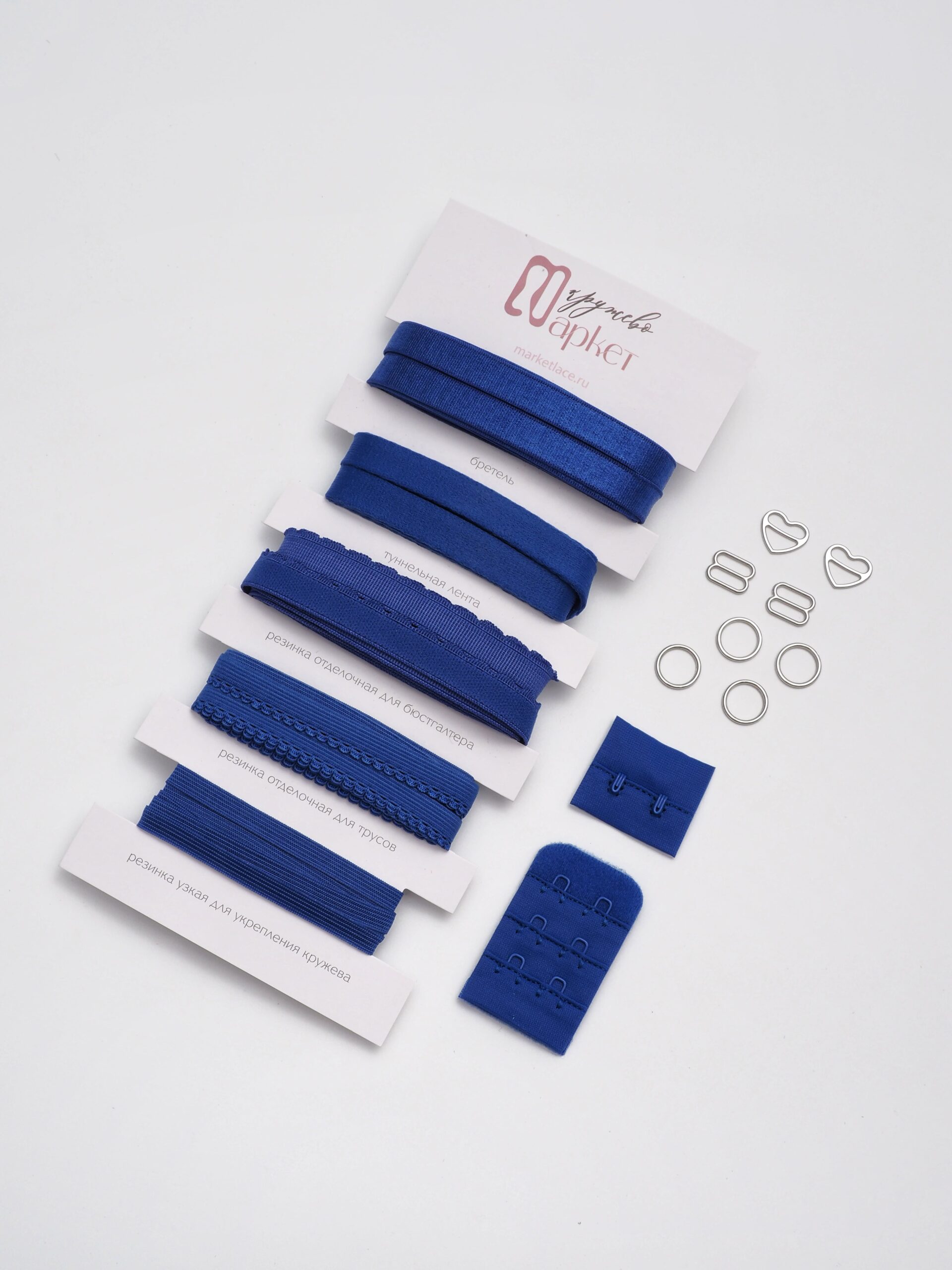 Подборка бельевых ультрамариновых резинок + застежки для бюстгальтера текстильные