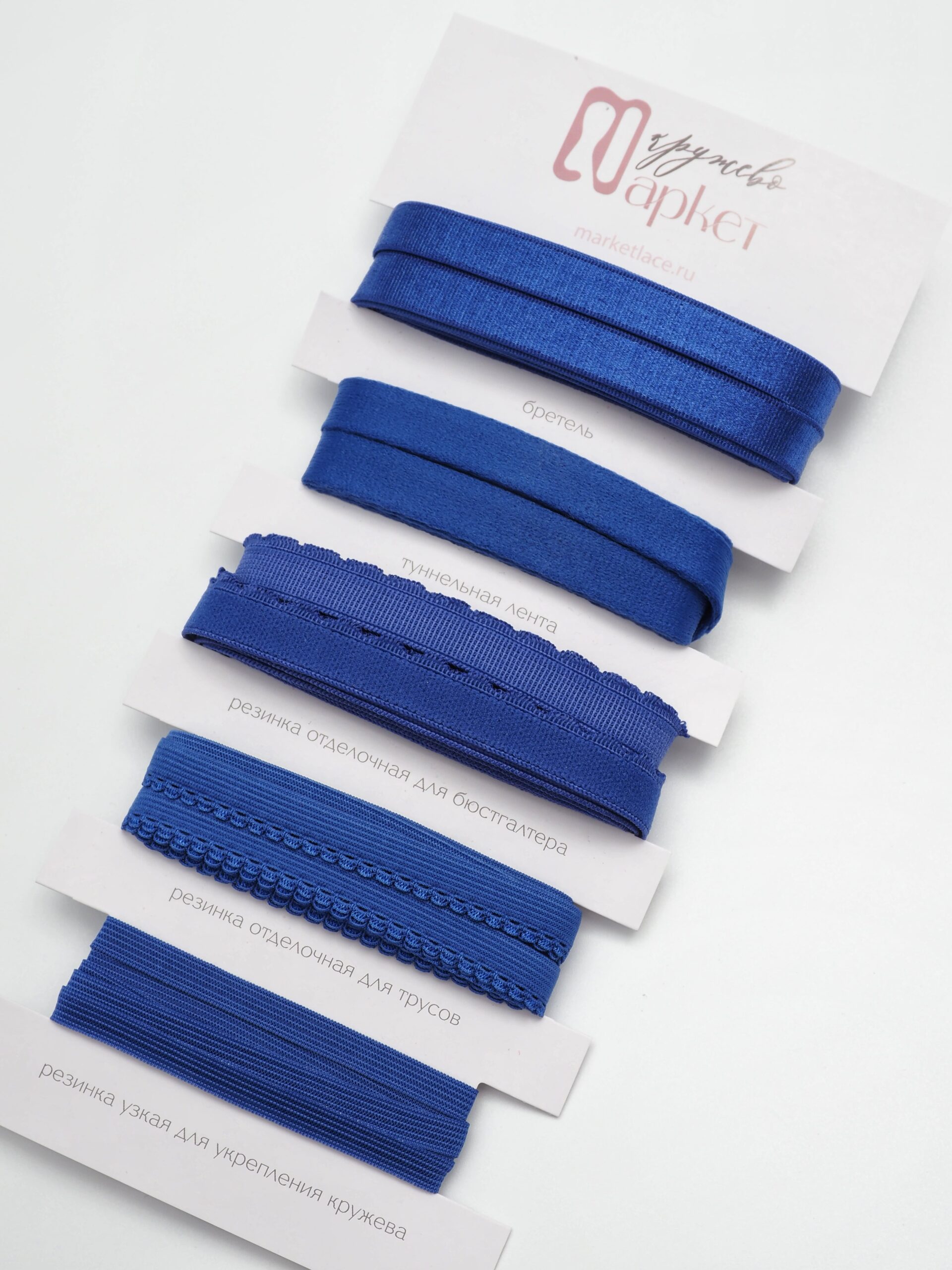 Подборка бельевых резинок синего оттенка.