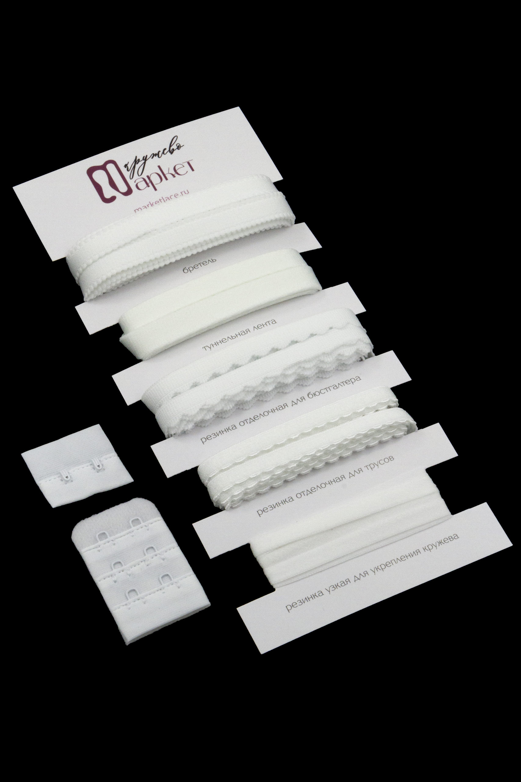 Подборка белых бельевых резинок для пошива нижнего белья и корсетов. Подборка бельевых резинок белого оттенка 001 Lauma (Латвия).