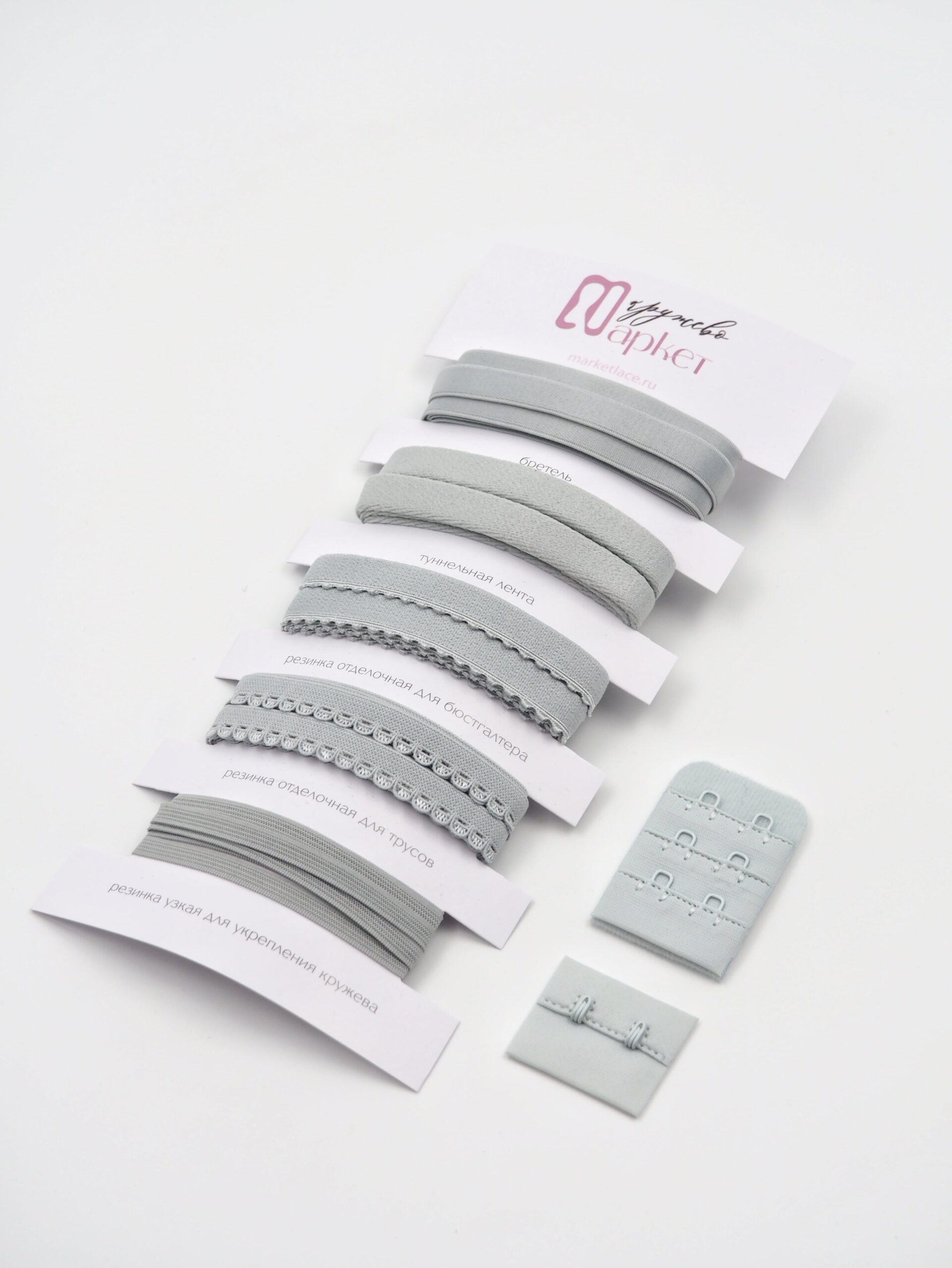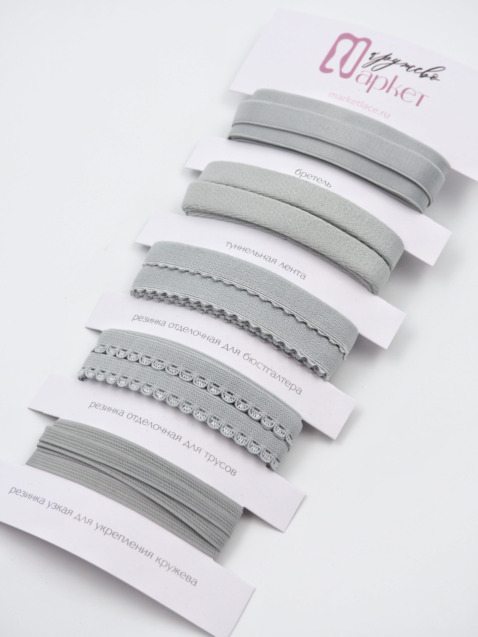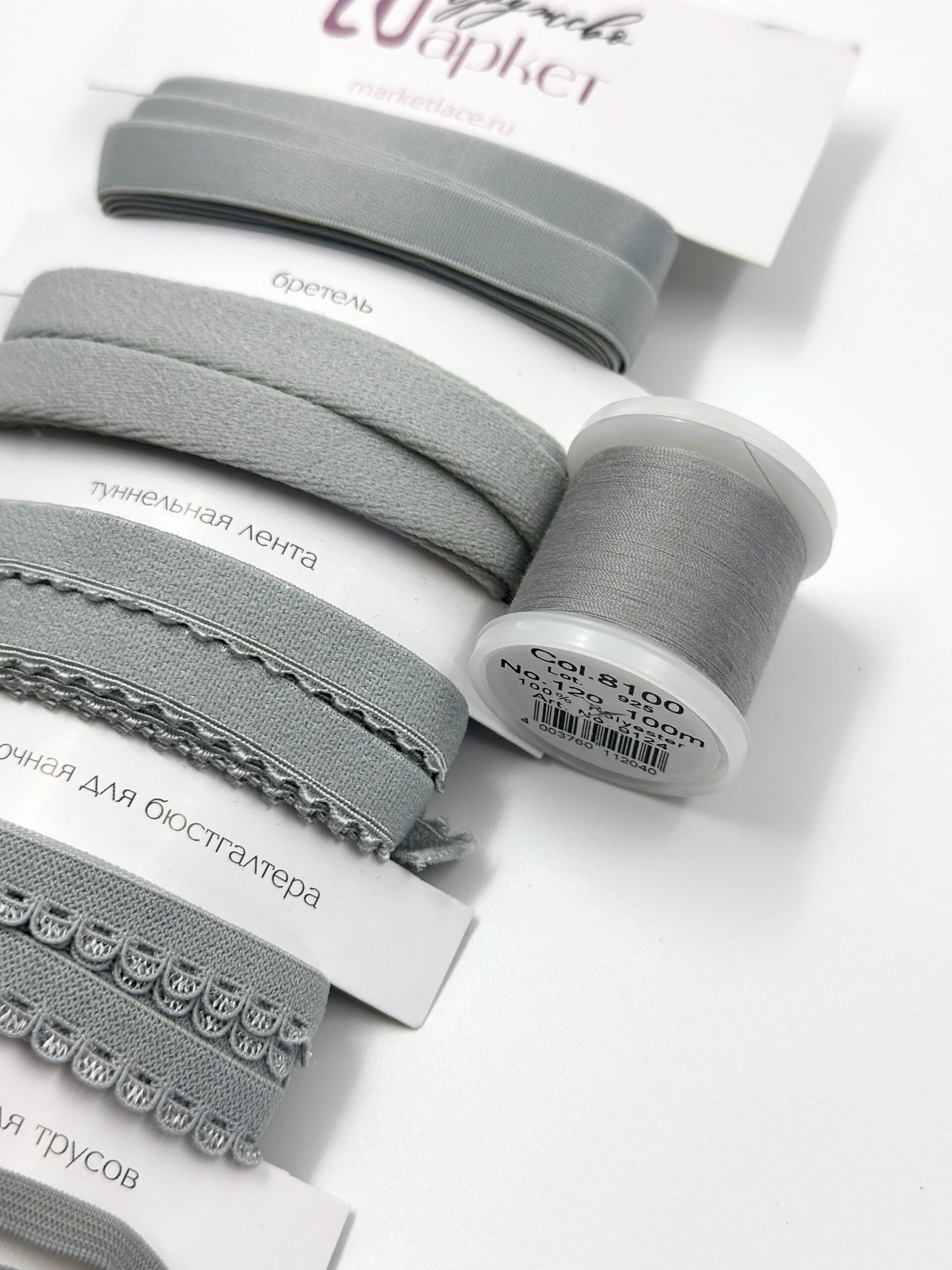 Подборка светло-серых бельевых резинок для пошива нижнего белья и корсетов. Набор бельевых резинок серого оттенка.