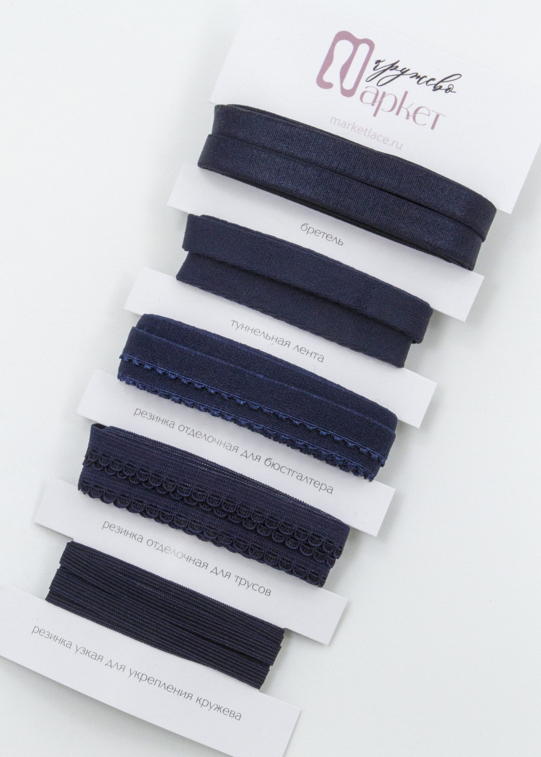 Подборка бельевых резинок синего оттенка.
