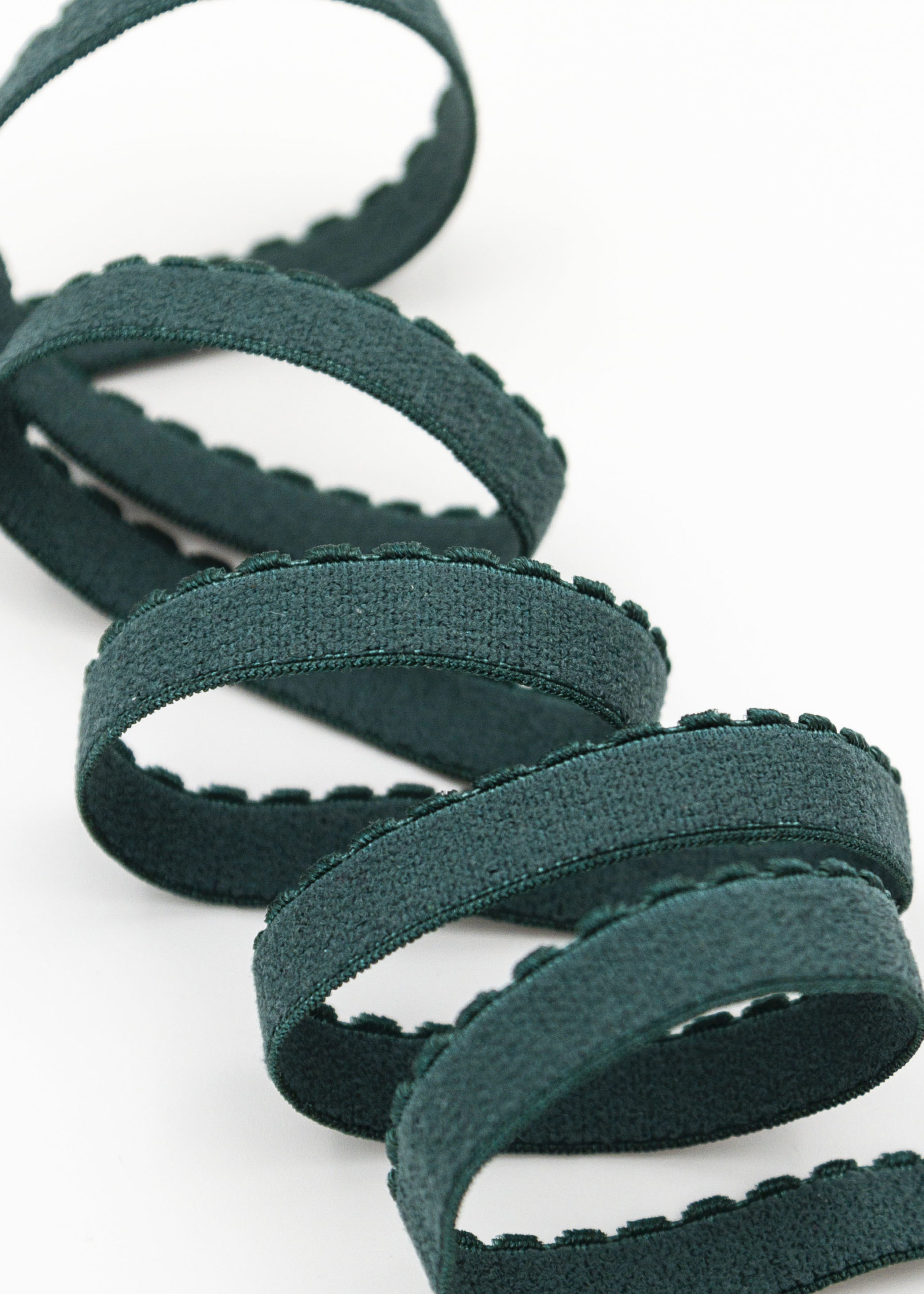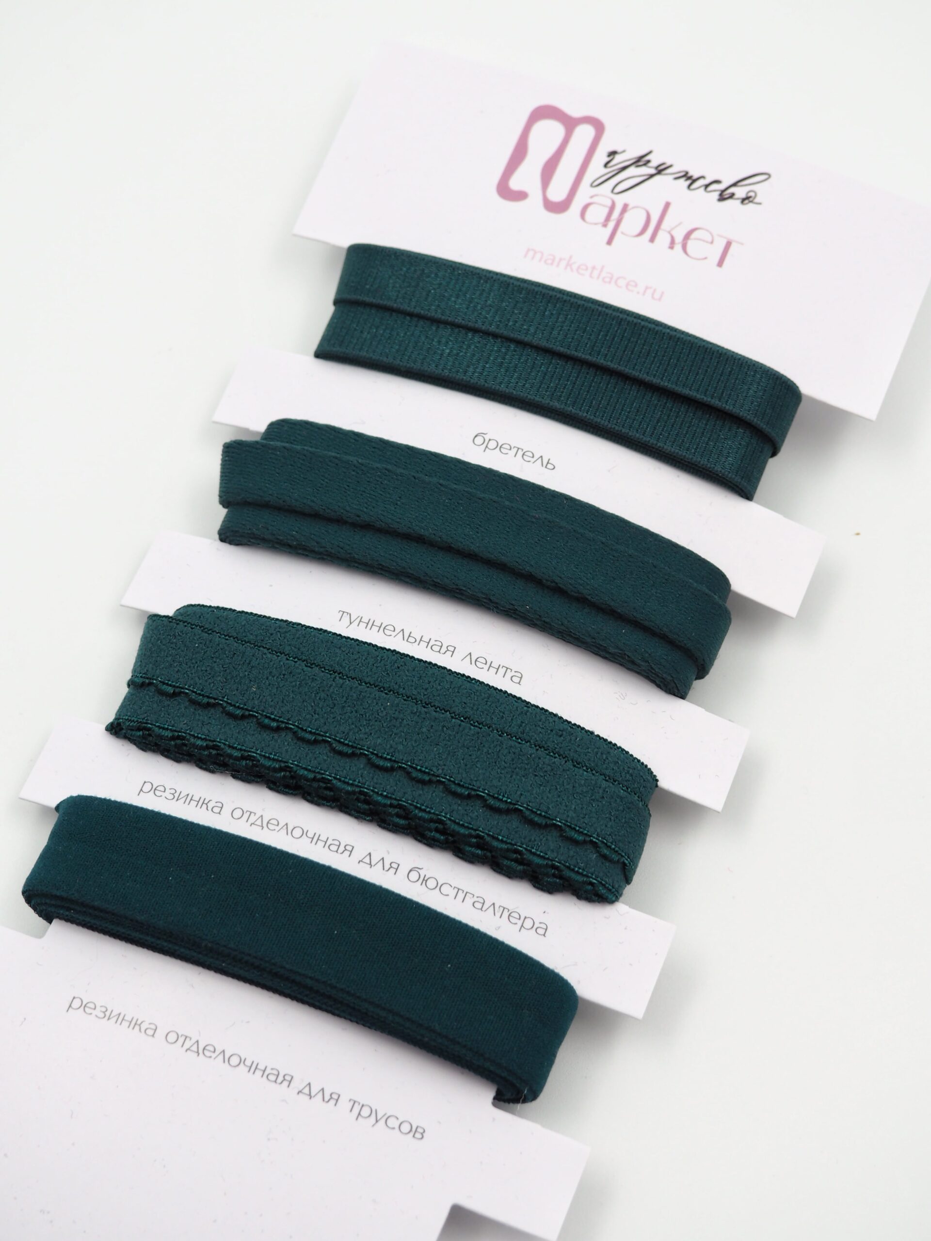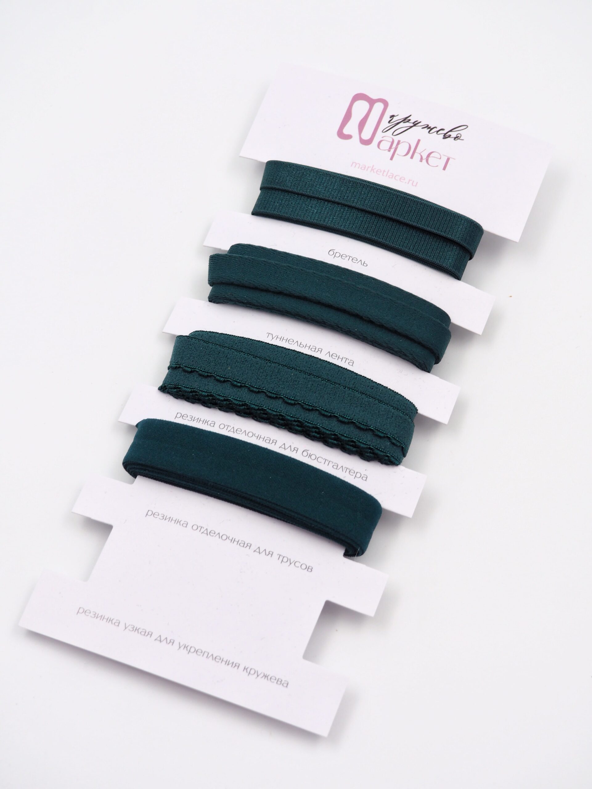 Подборка темно-зеленых бельевых резинок для пошива нижнего белья и корсетов. Подборка резинок зеленого оттенка.