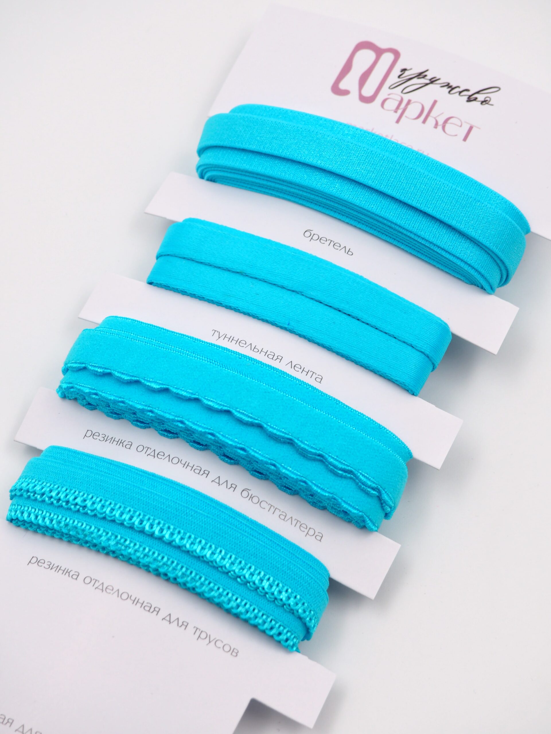 Подборка ярко-голубых бельевых резинок для пошива нижнего белья и корсетов. Подборка резинок голубого оттенка.