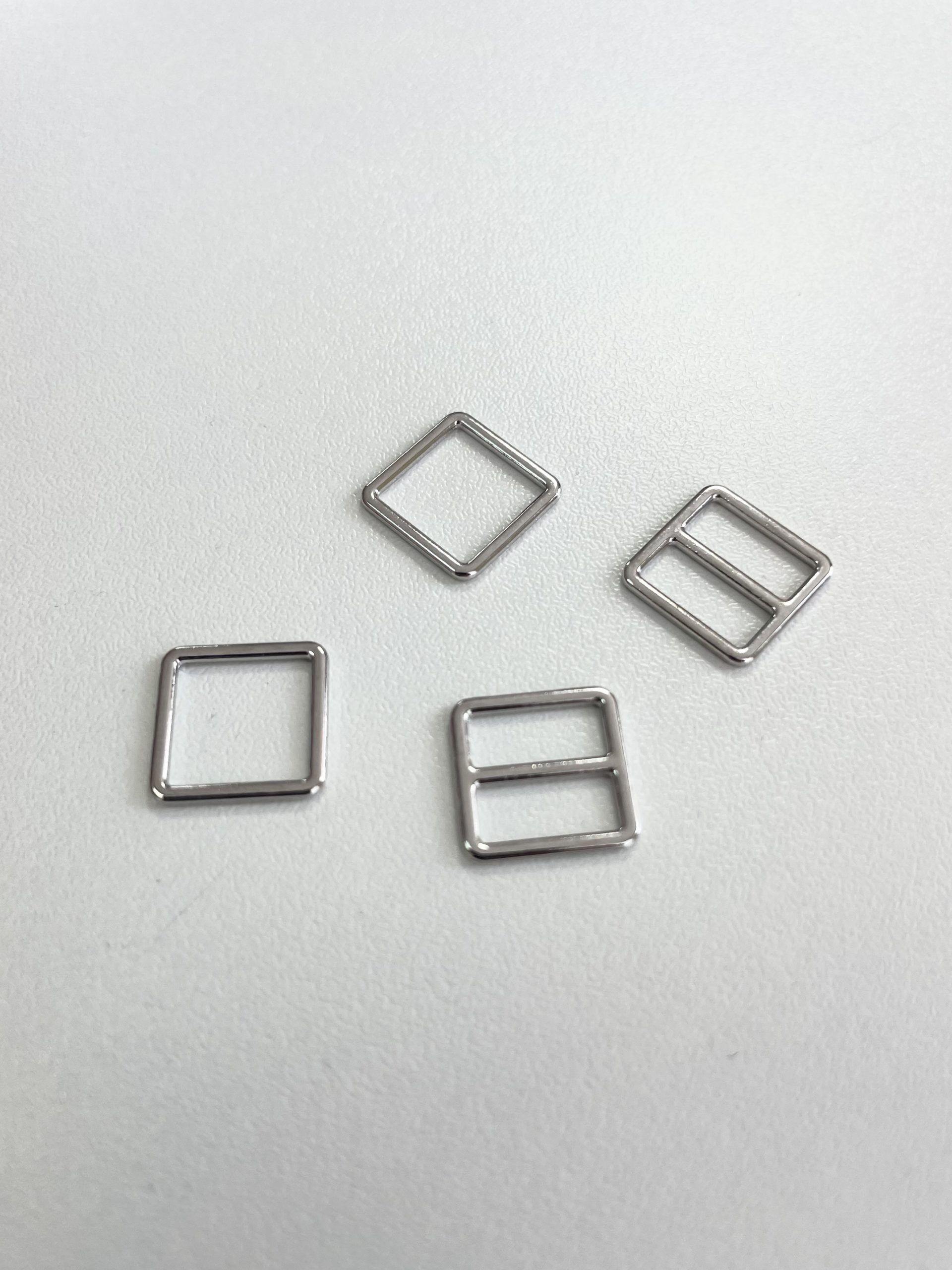 Бельевая фурнитура металлическая, сплав ЦАМ в форме квадрата серебристого оттенка.