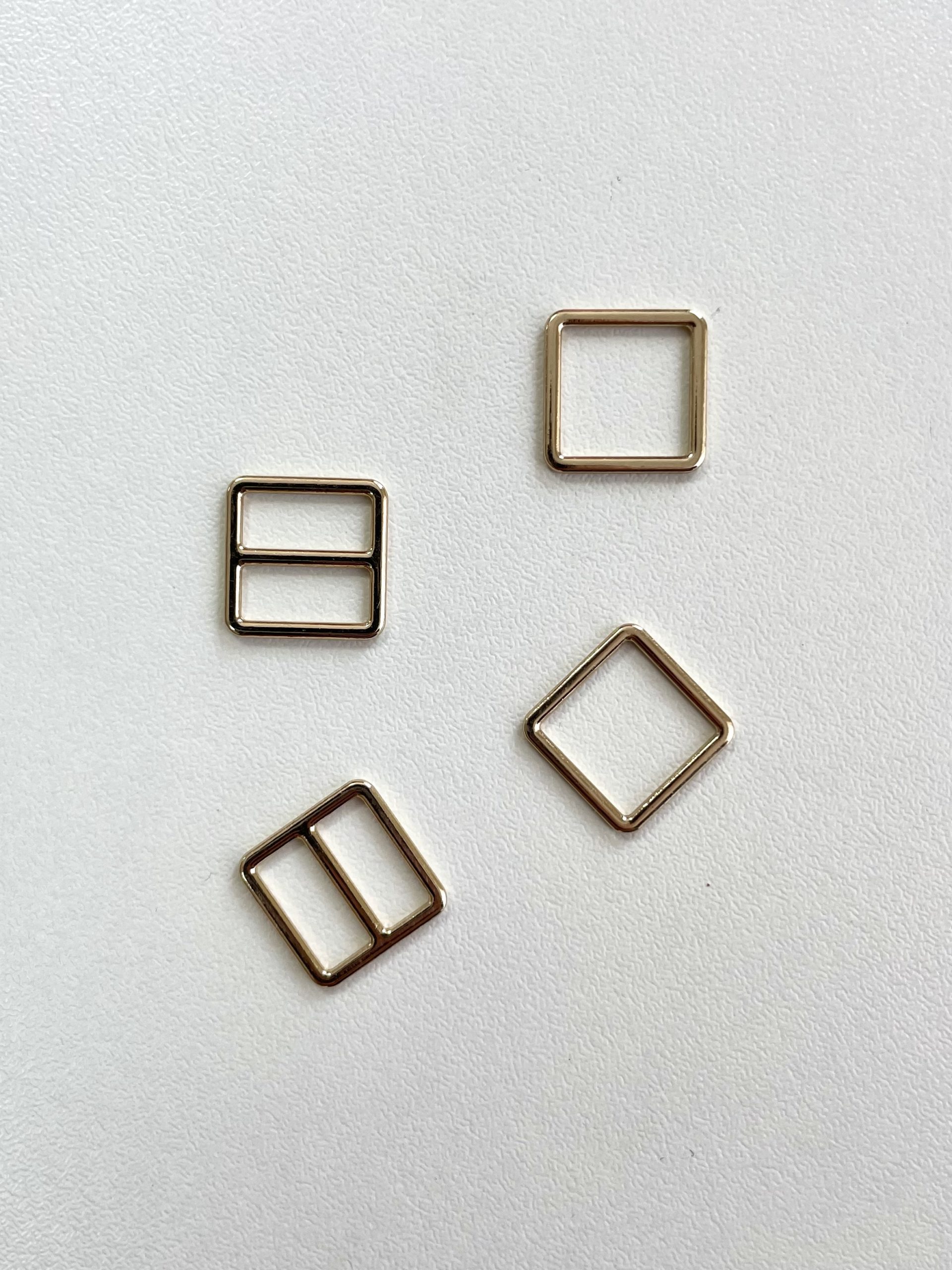 Бельевая фурнитура металлическая, сплав ЦАМ в форме квадрата золотого оттенка.