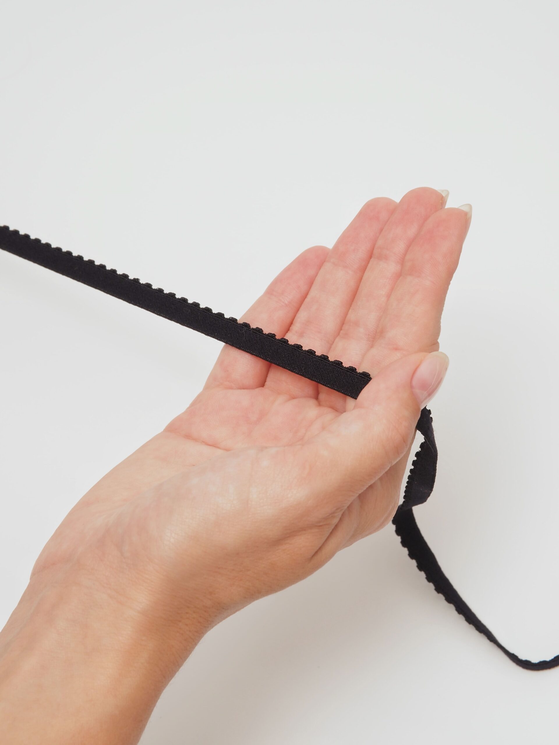 Резинка бельевая отделочная ажурная тонкая черного оттенка. Лента эластичная тонкая.