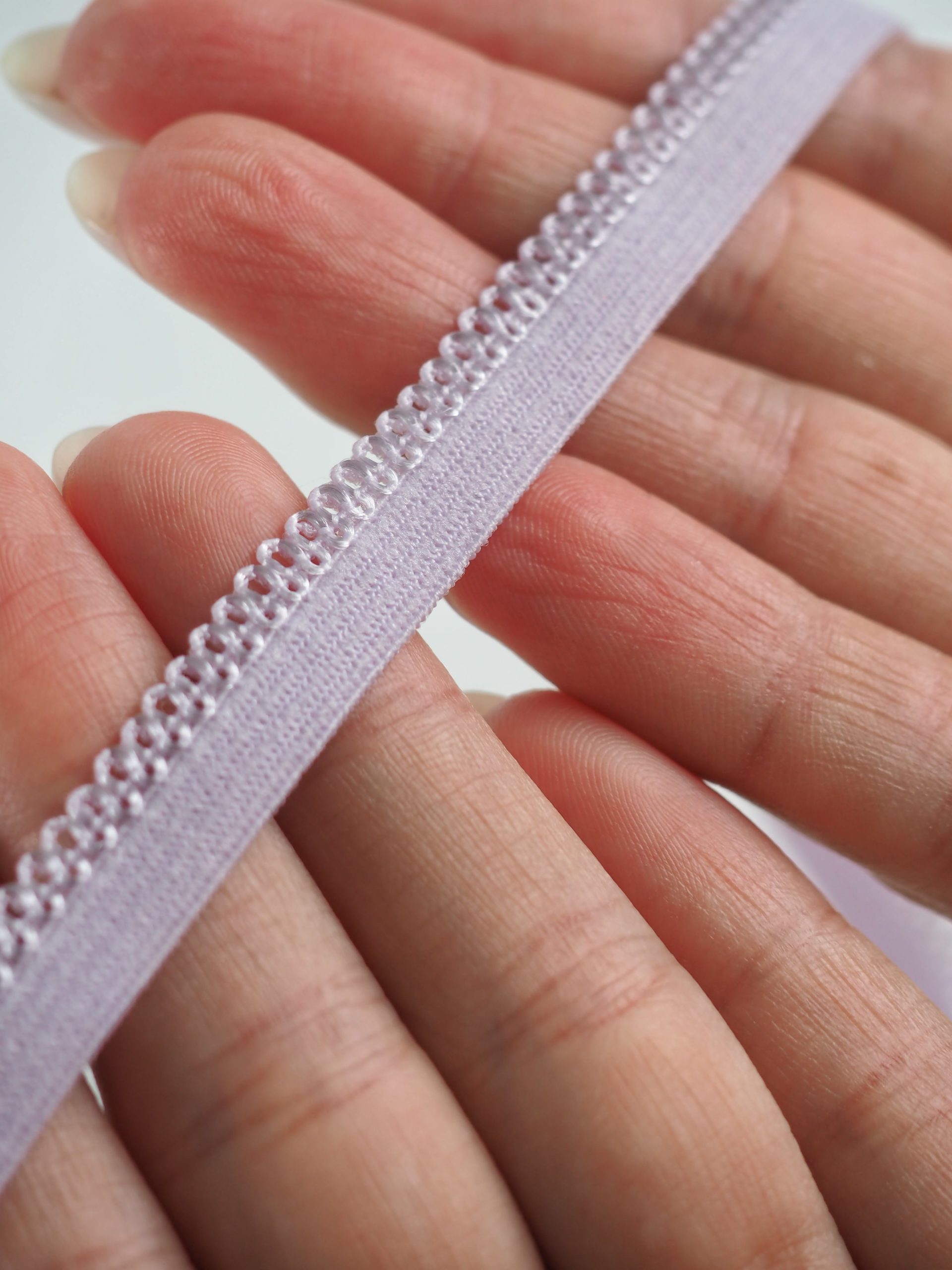 Резинка бельевая отделочная ажурная тонкая фиолетового оттенка. Лента эластичная тонка.