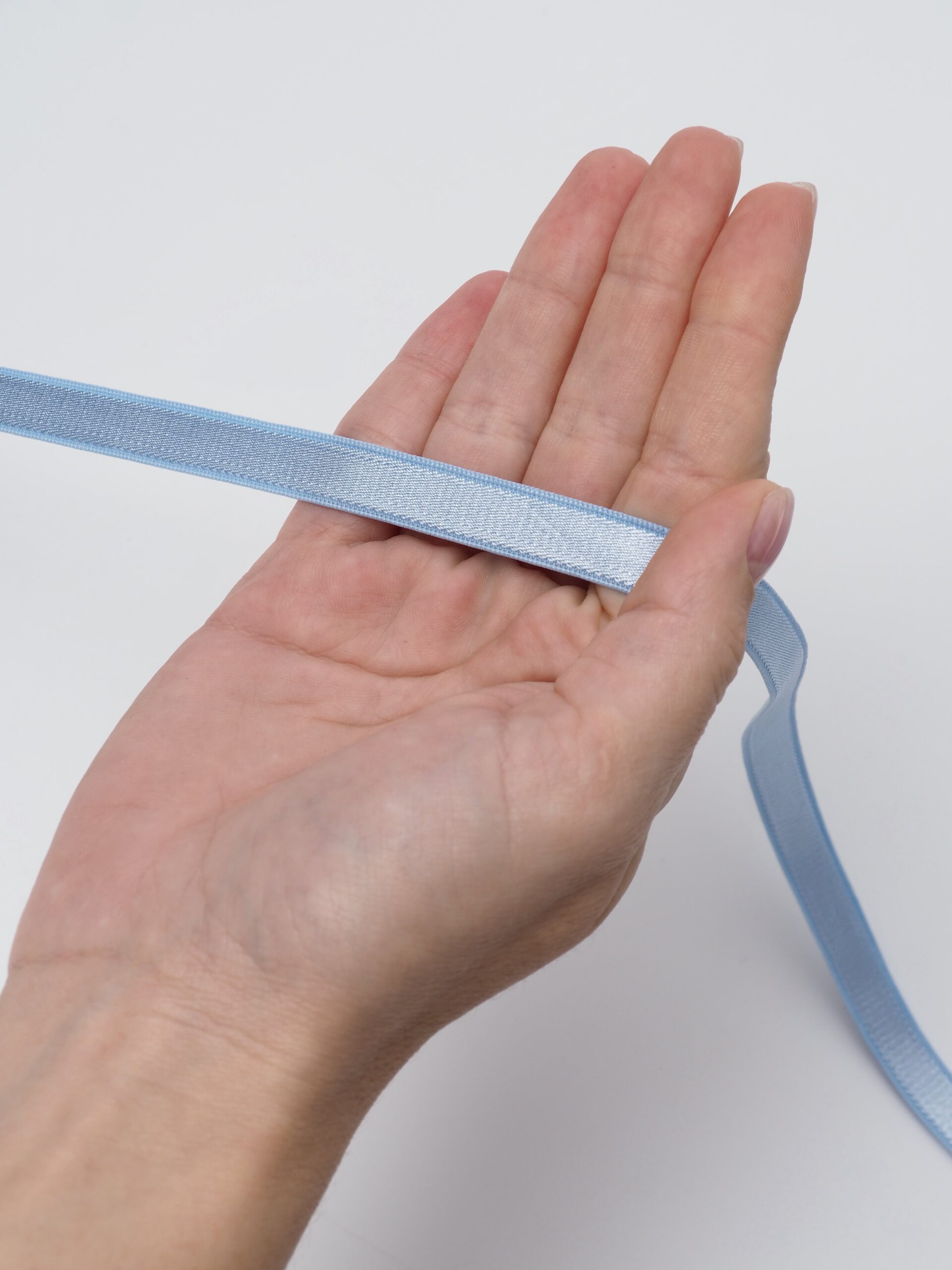 Резинка для бретелей бельевая без фестона. Тесьма бретельная эластичная голубого оттенка.