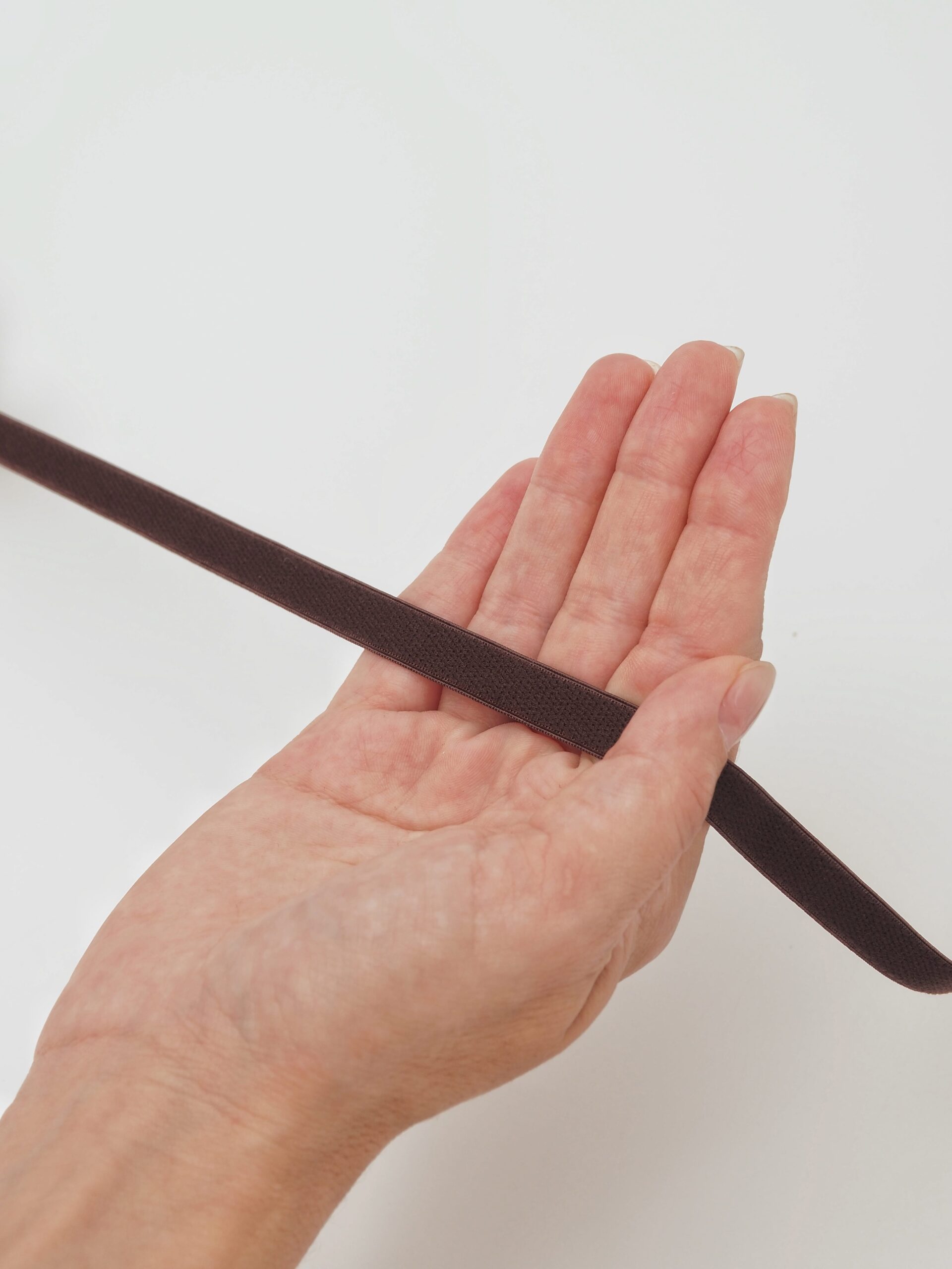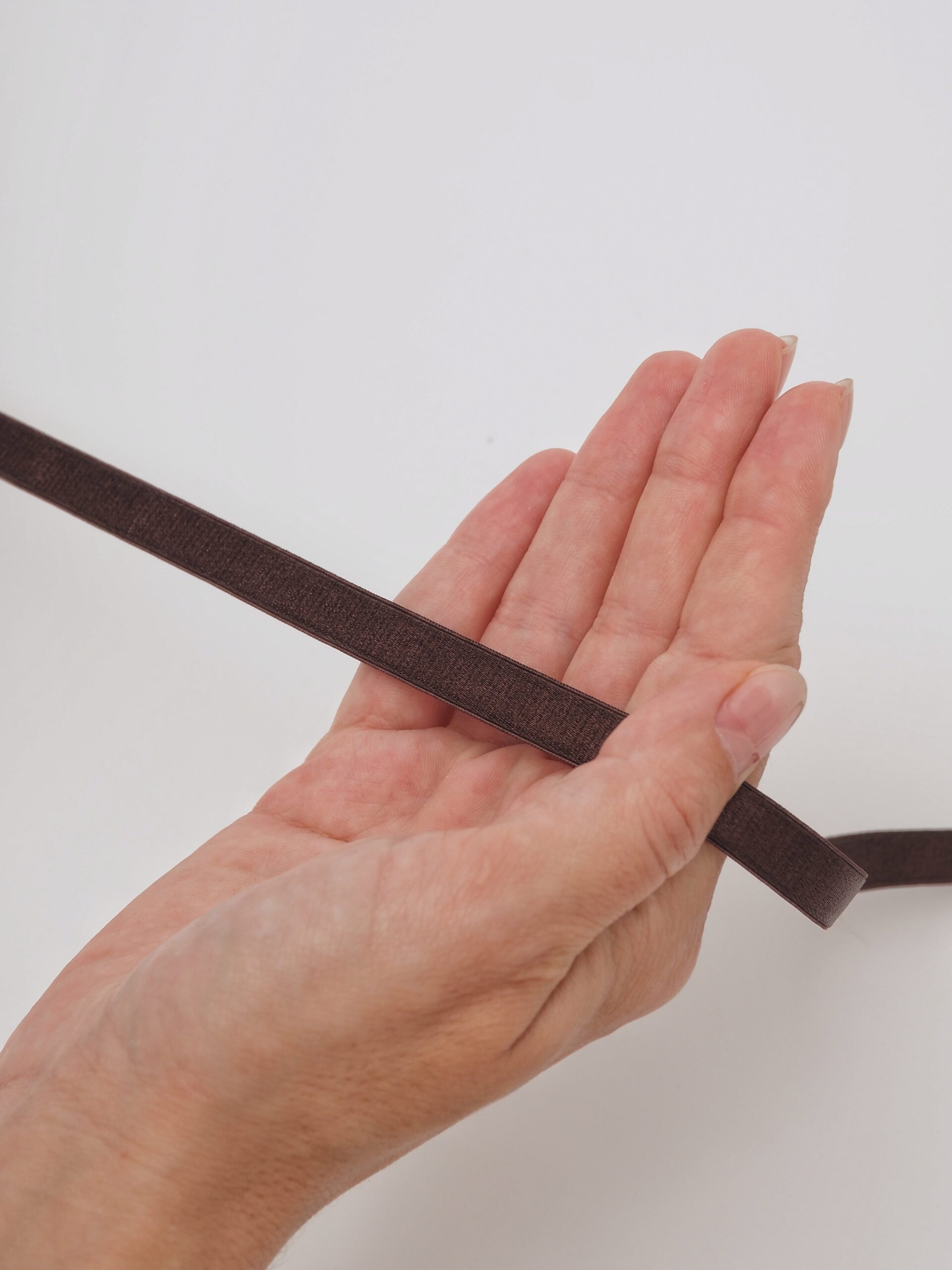 Резинка для бретелей бельевая без фестона. Тесьма бретельная эластичная коричневого оттенка.