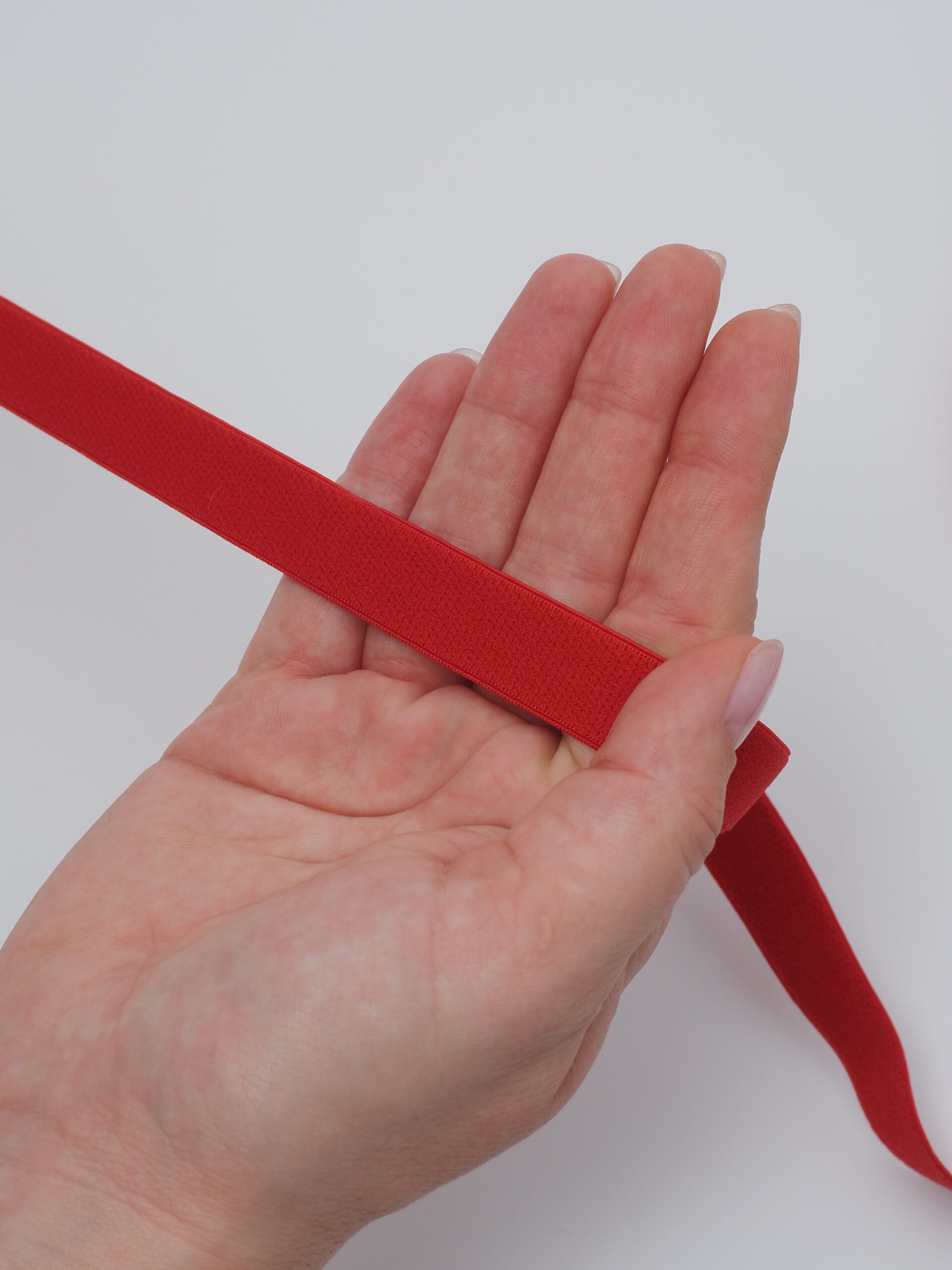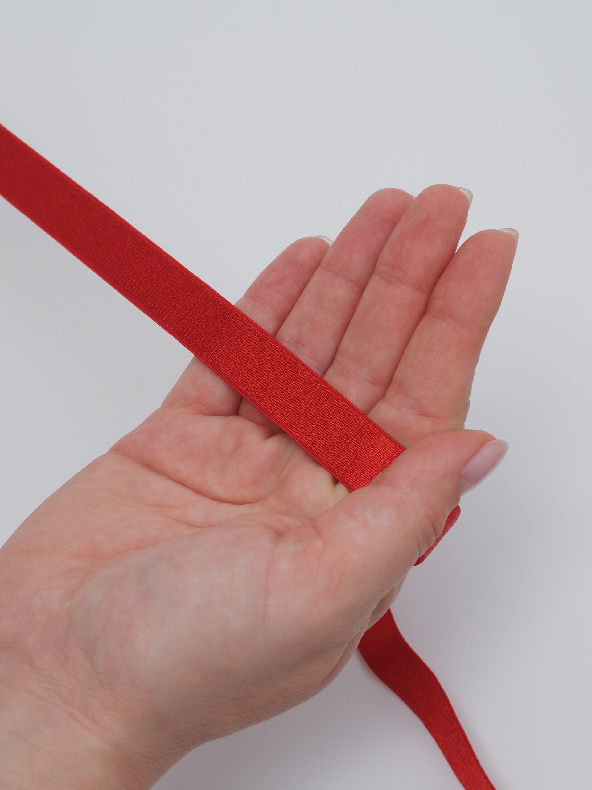 Резинка бельевая для бретелей глянцевая красного оттенка.