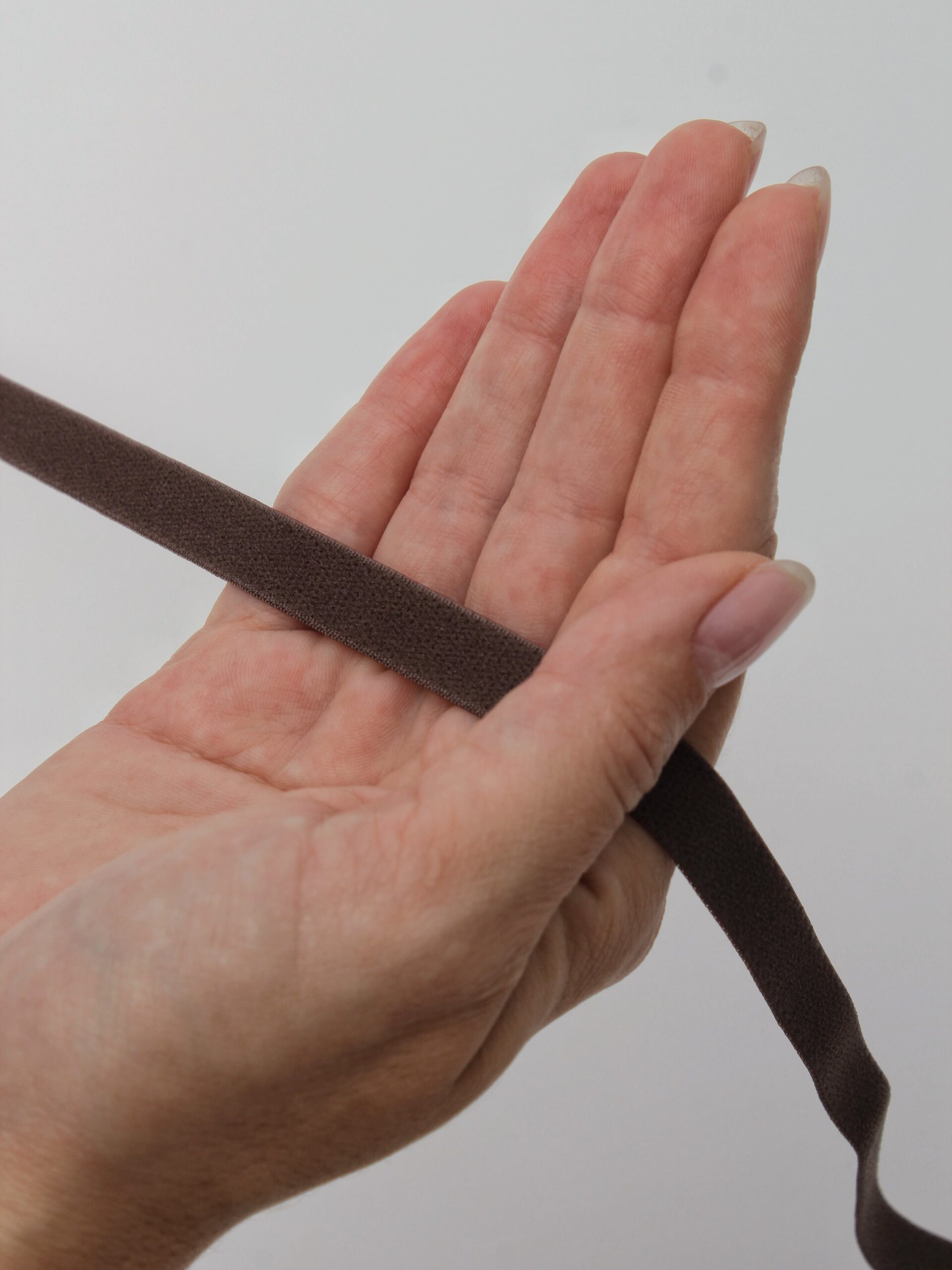 Резинка для бретелей бельевая без фестона. Тесьма бретельная эластичная коричневого оттенка.