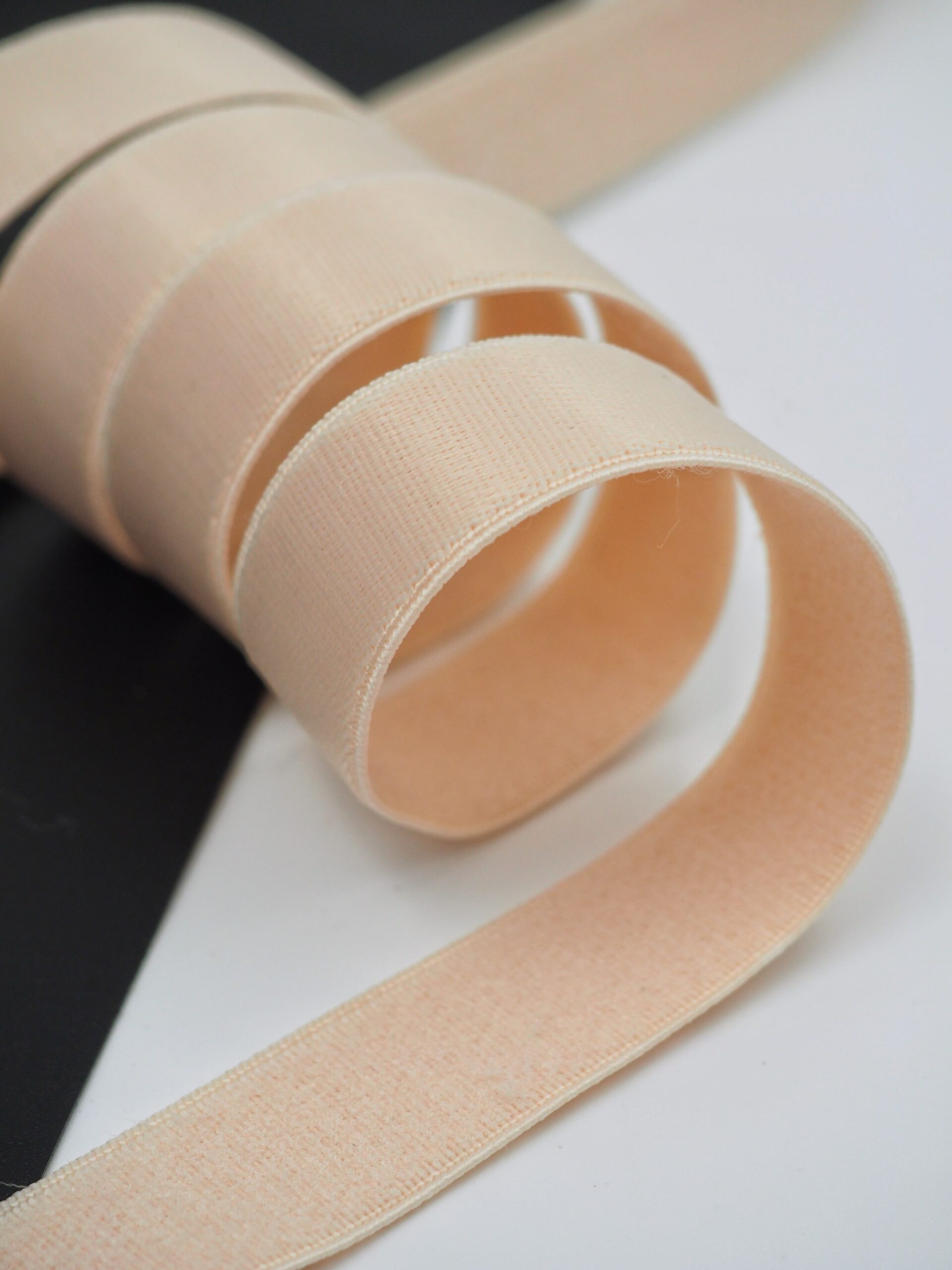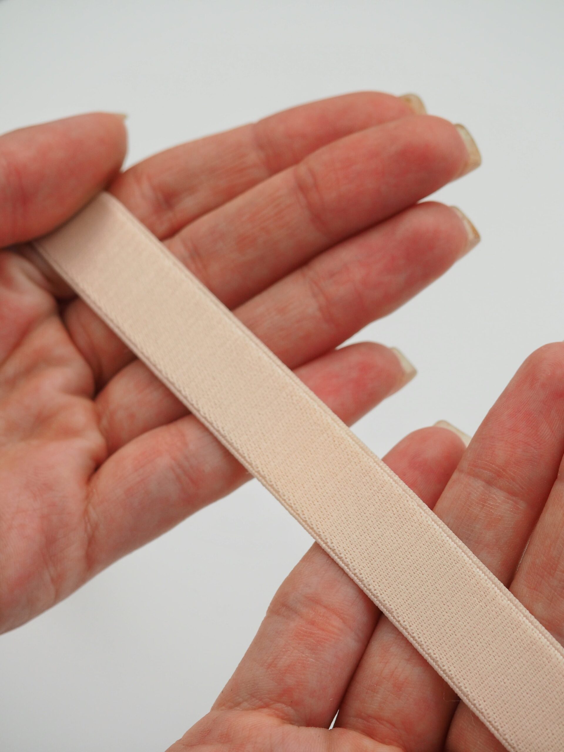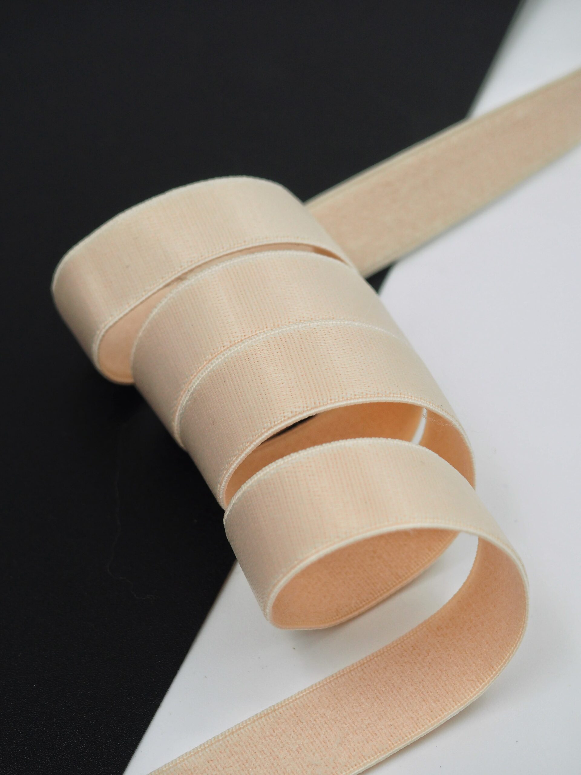 Резинка для бретелей бельевая без фестона. Тесьма бретельная эластичная бежевого оттенка.
