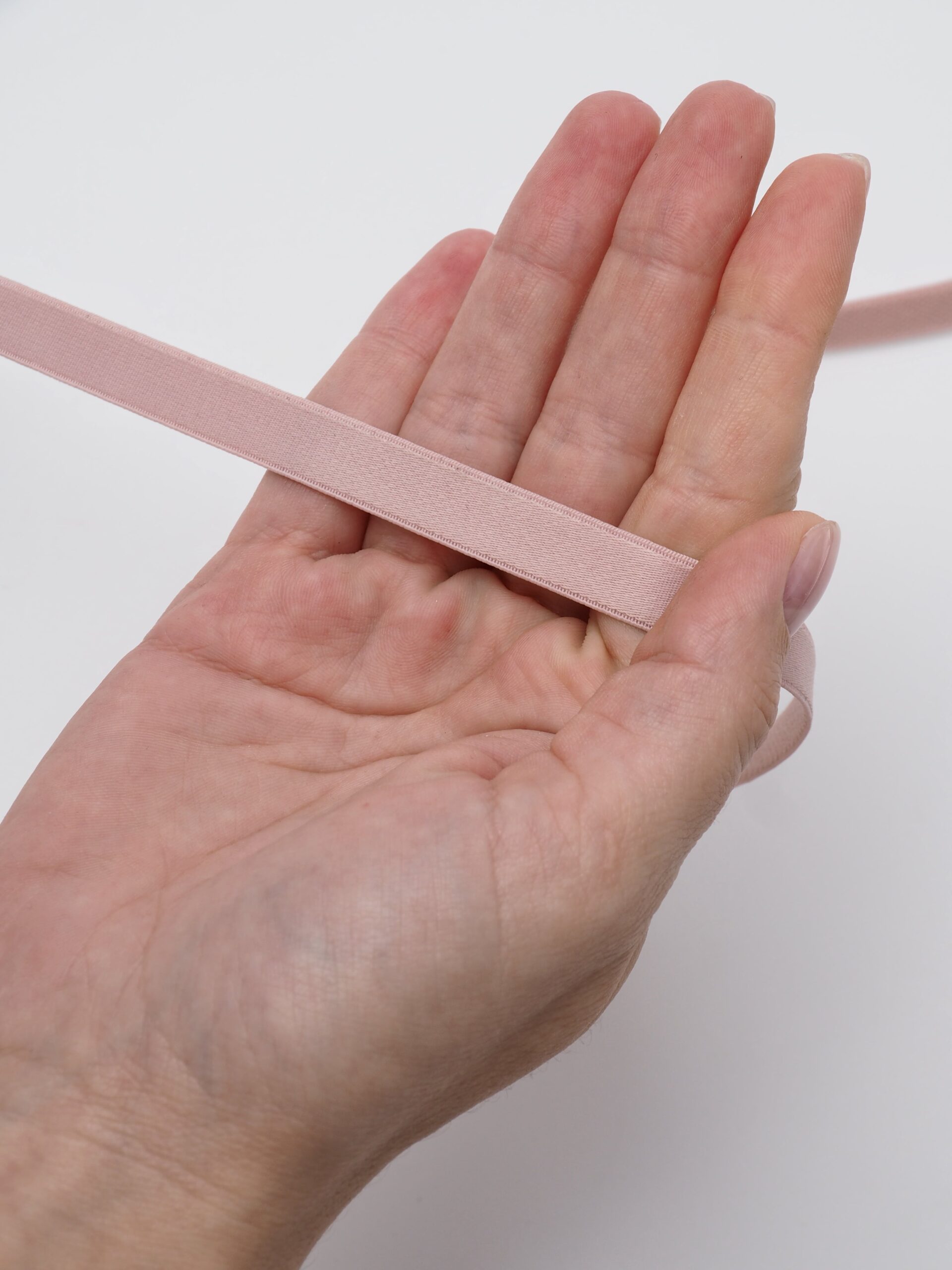Резинка бельевая для бретелей глянцевая пудрового оттенка.