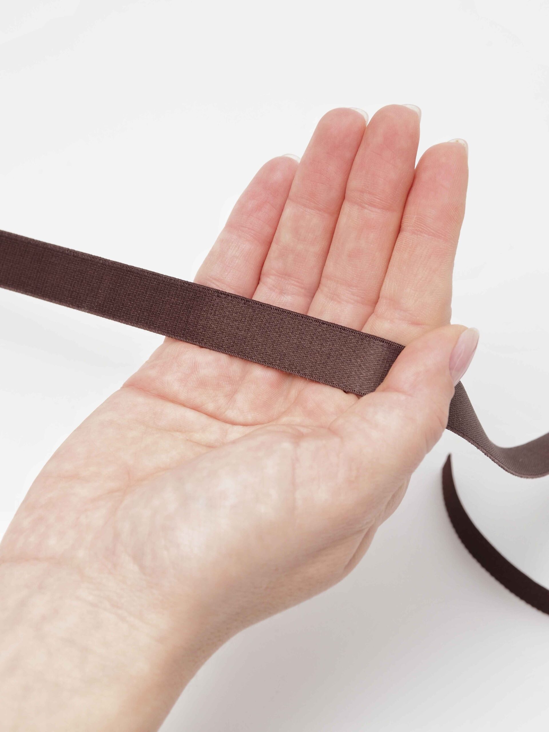 Резинка для бретелей бельевая без фестона. Тесьма бретельная эластичная коричневого оттенка.