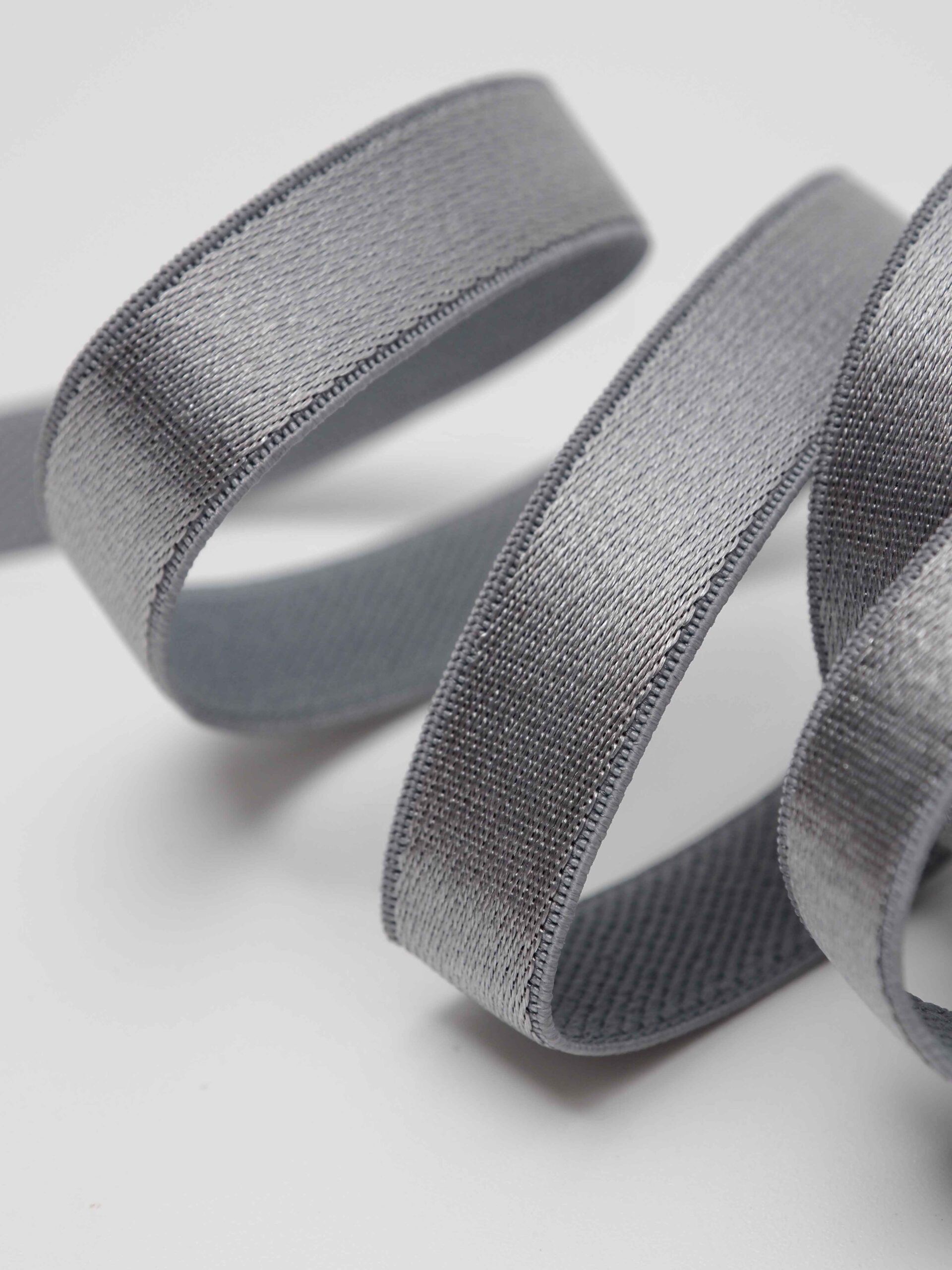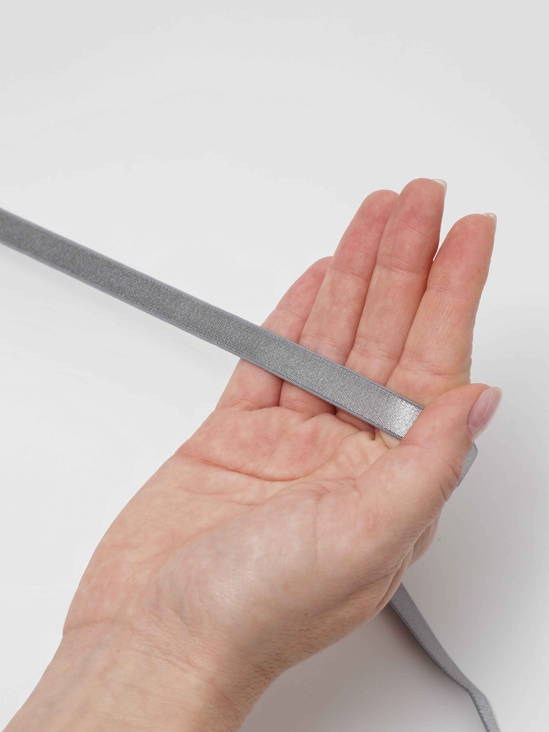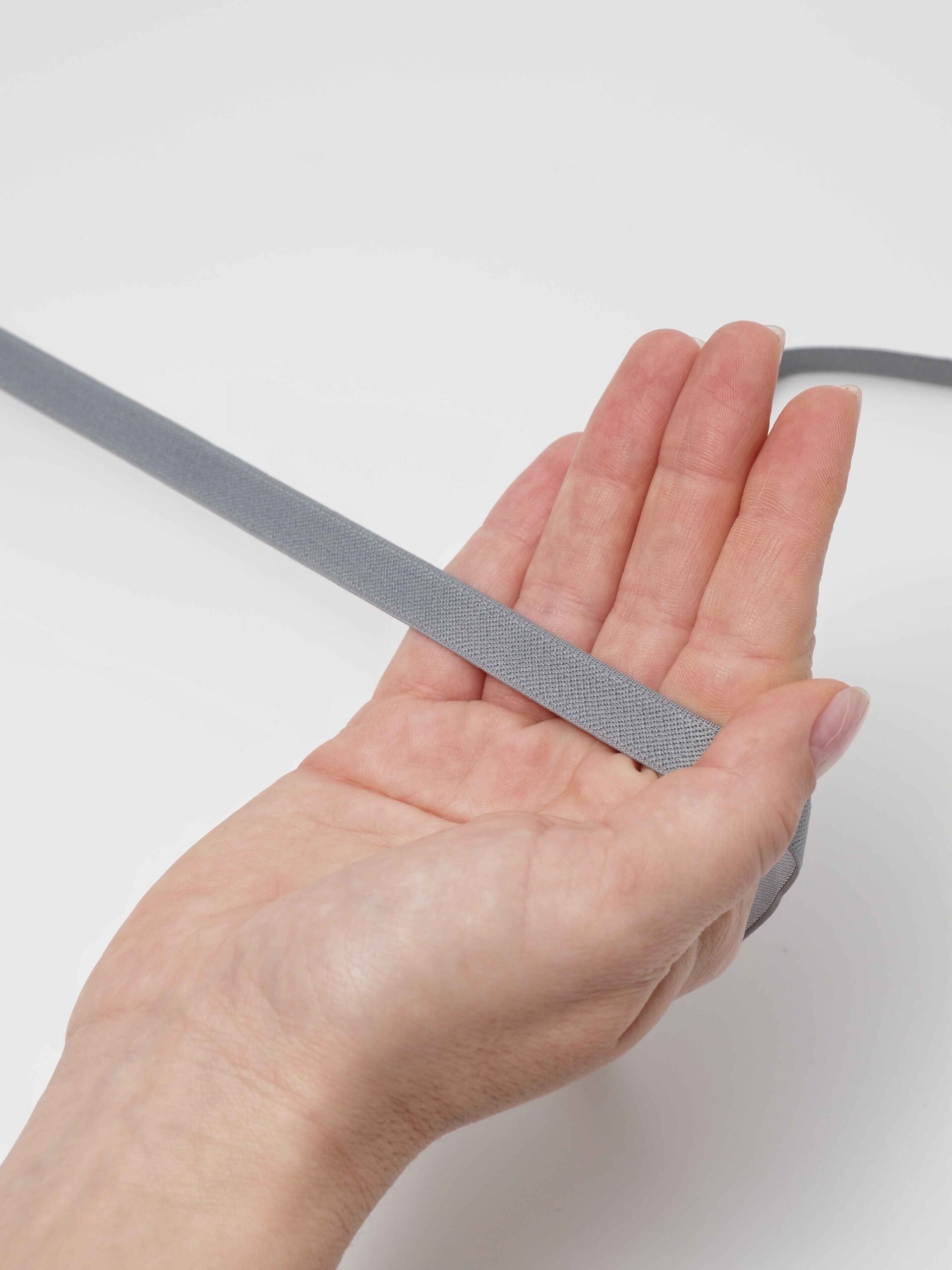 Резинка для бретелей бельевая без фестона. Тесьма бретельная эластичная серого оттенка.