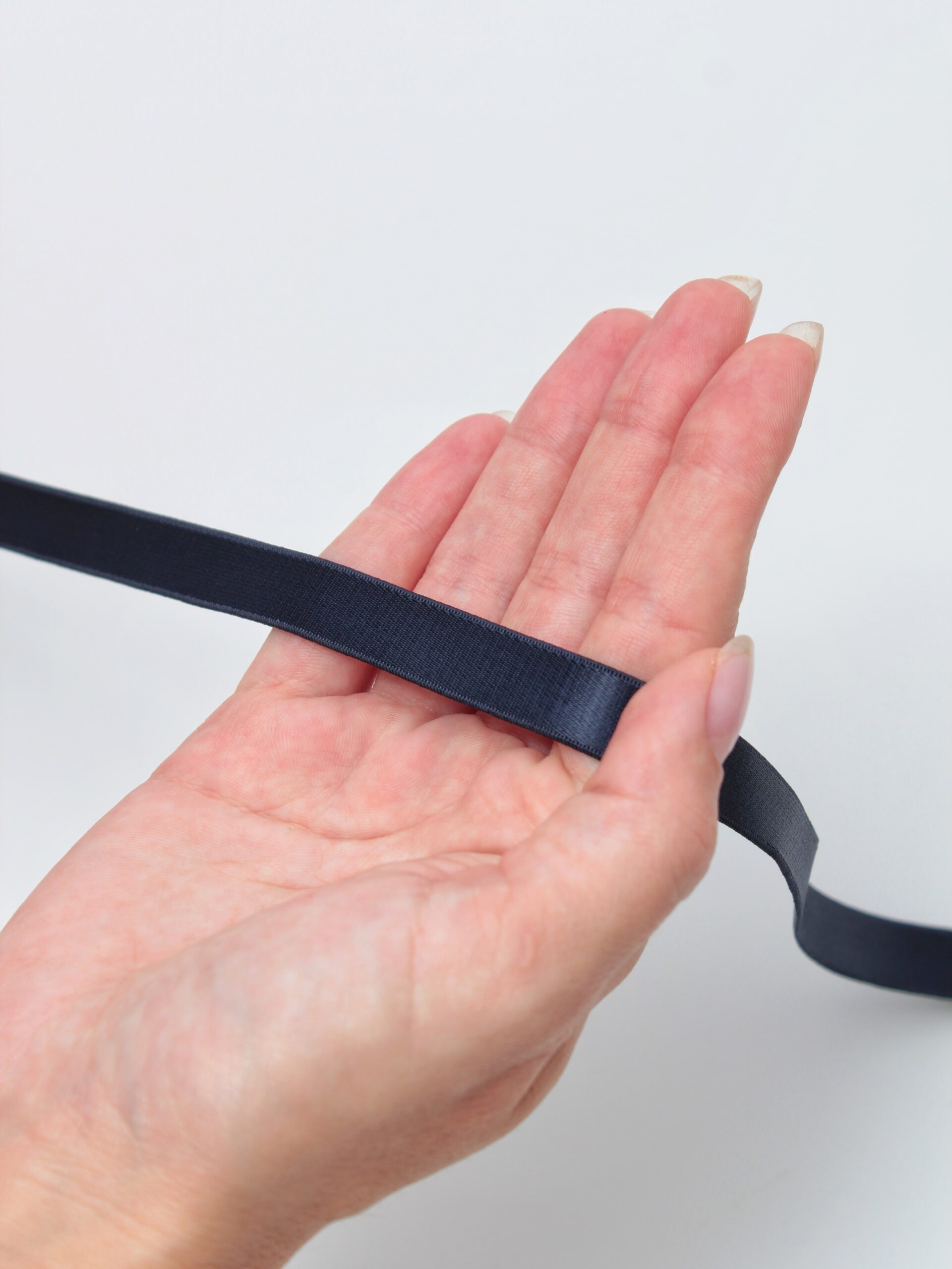 Резинка бретелечная темно-синяя используется при пошиве нижнего белья в качестве лямки бюстгальтера, стрепов и как декоративный элемент комплекта. Эта резинка для шитья нижнего белья может быть использована для различных целей, от создания бретелей до декорирования одежды. Она легко растягивается и гладко идет по коже, обеспечивая комфорт даже при длительной носке. Резинка для бретелей и лямок для бюстгальтера изготовлена из высококачественных материалов, обеспечивая долговечность и устойчивость к стирке. Она не рвется и не теряет форму, что делает ее идеальной для использования в бельевых изделиях.