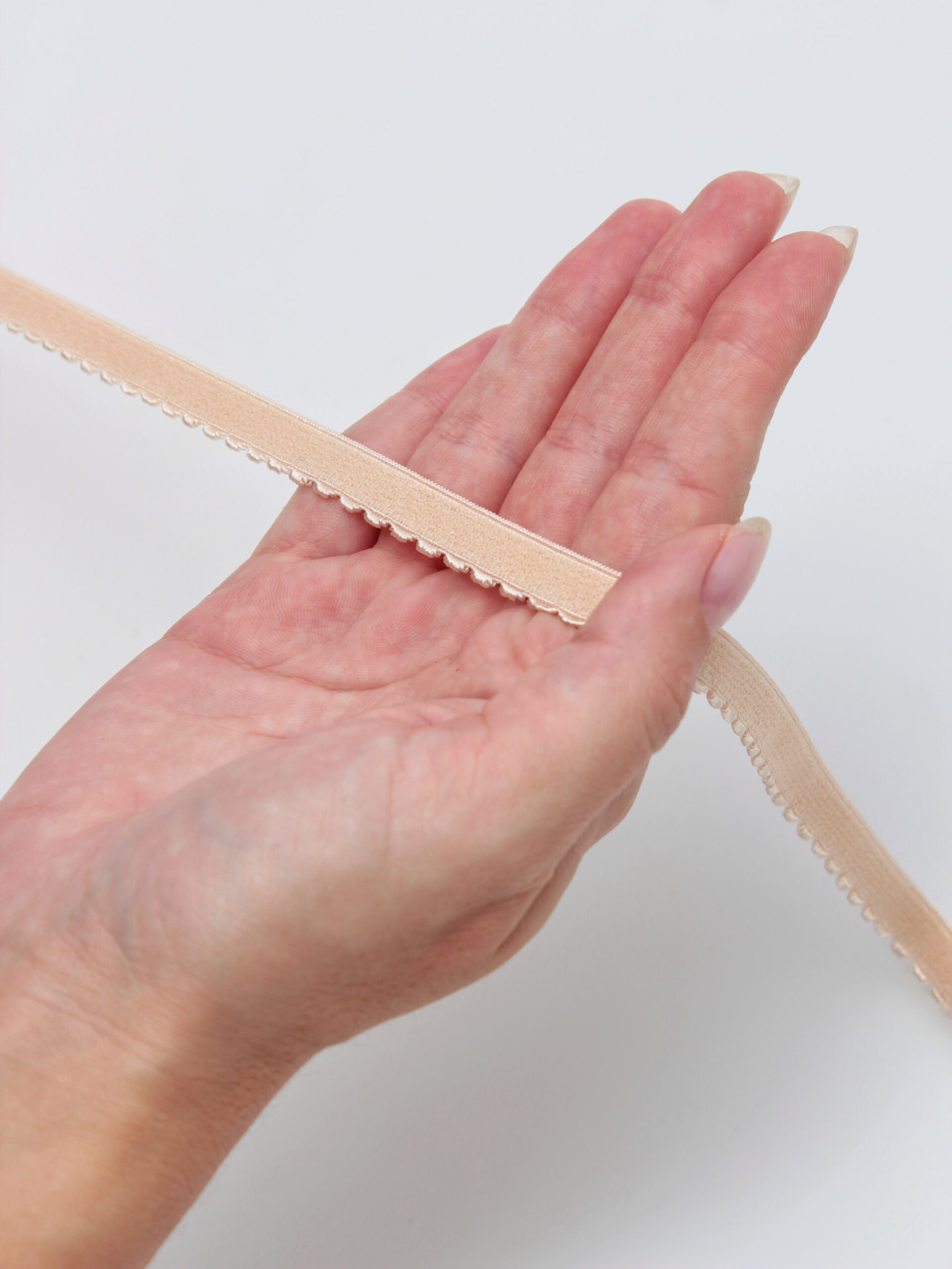 Резинка бельевая становая отделочная плотная, упругая, стабильная с дугообразной кромкой по фестону и мягкой стороной.
