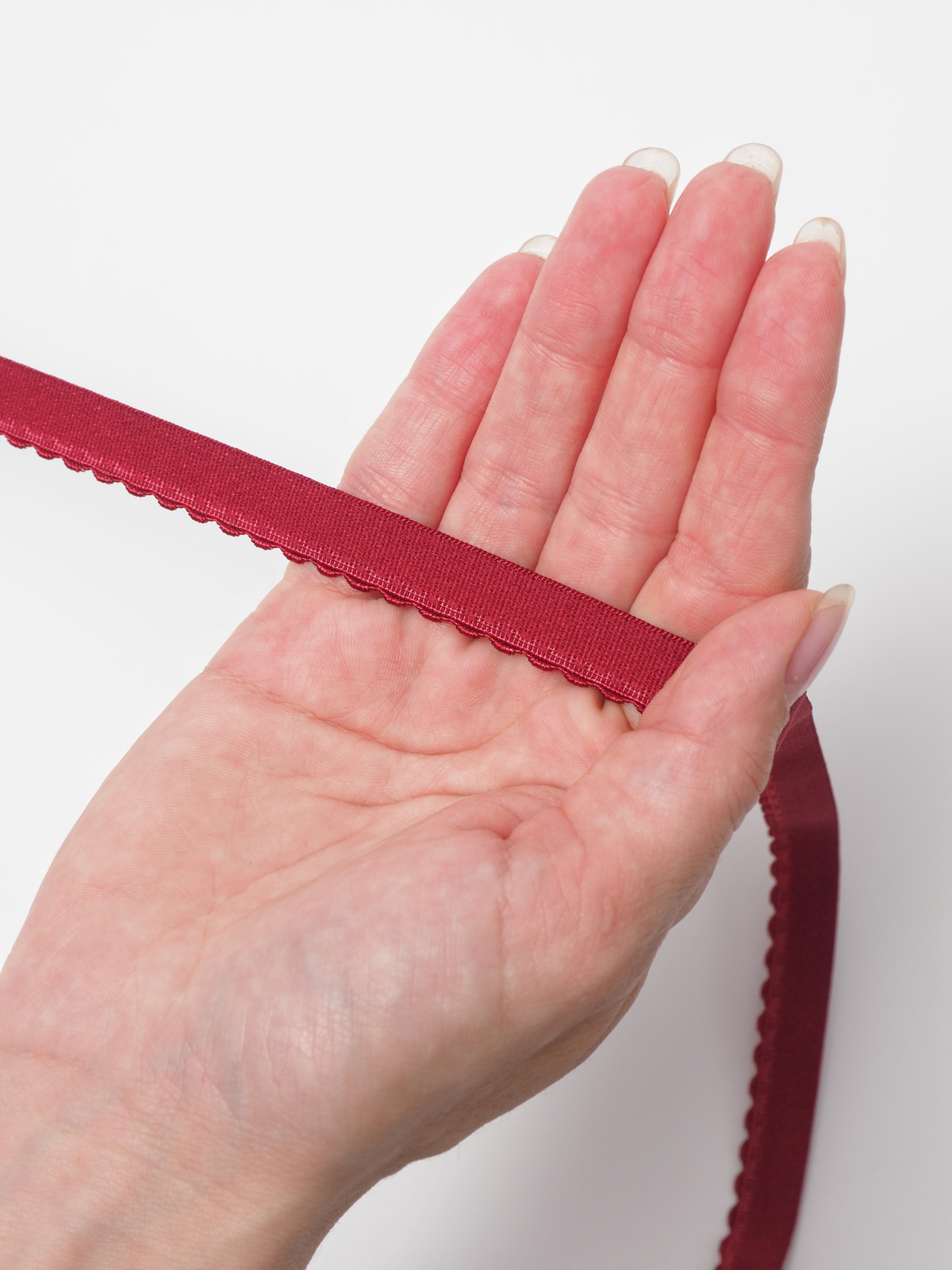 Становая резинка ажурная бордовая отделочная бельевая. Тесьма эластичная бордового оттенка.