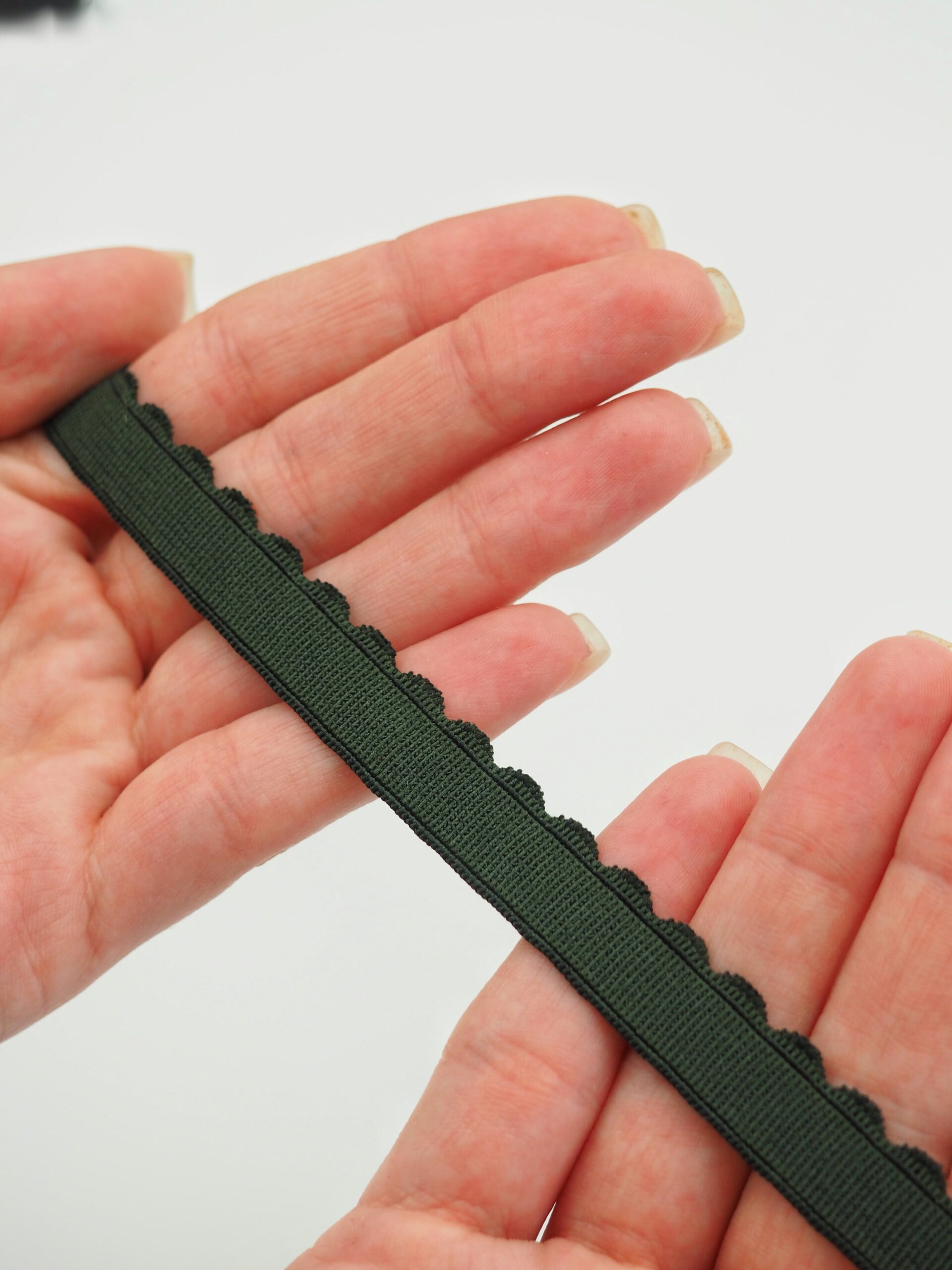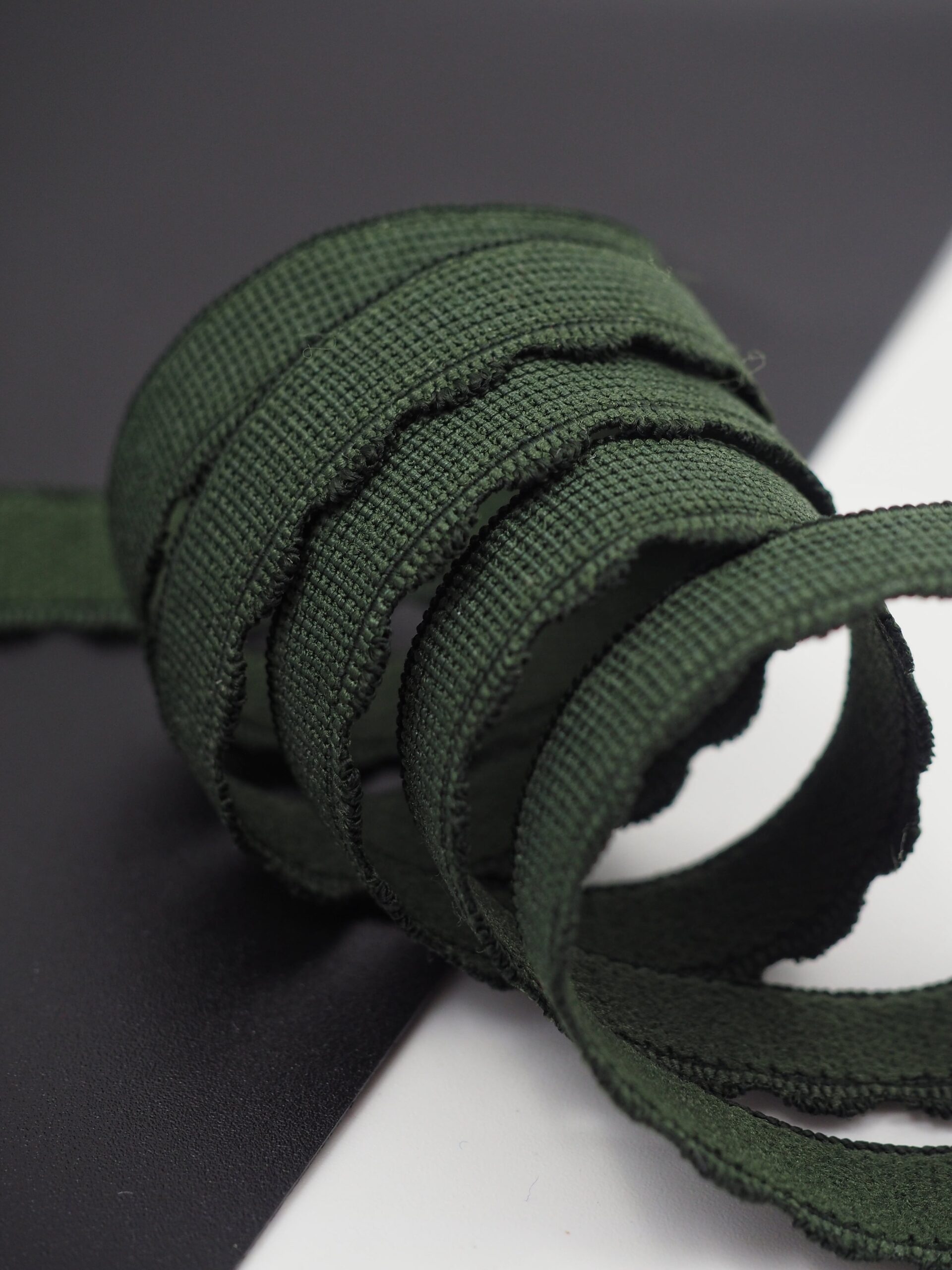 Становая резинка ажурная хаки отделочная бельевая. Тесьма эластичная зеленого оттенка.